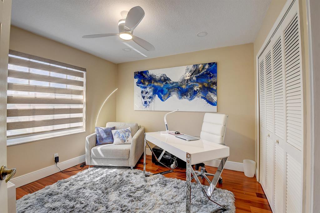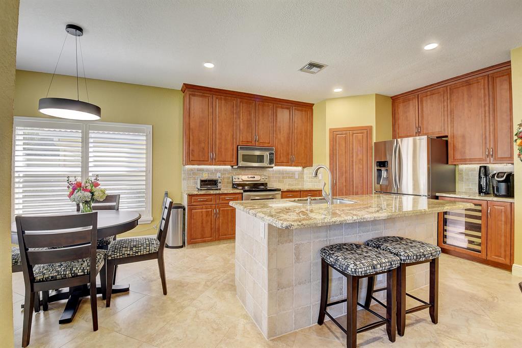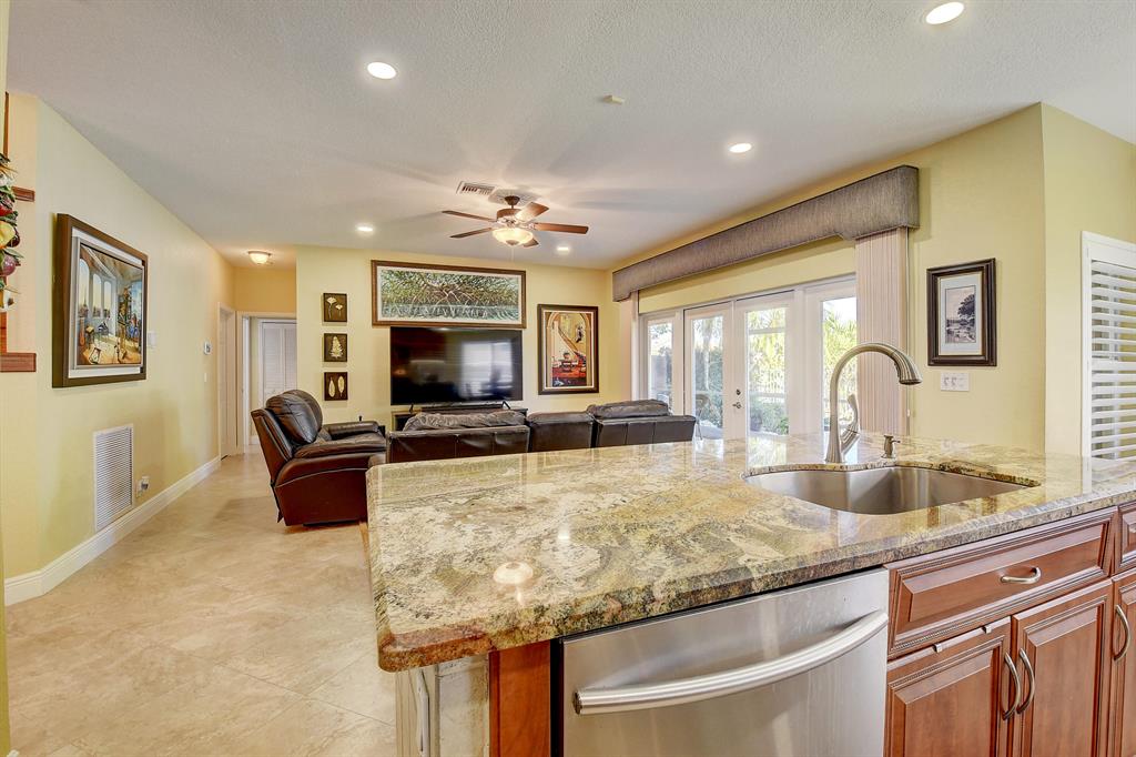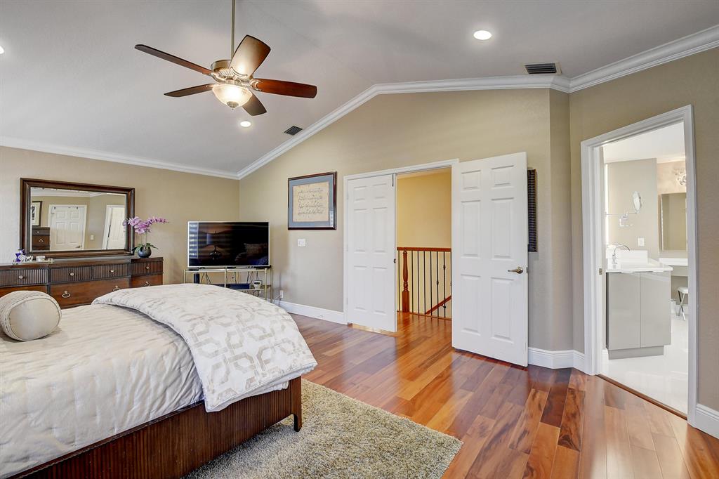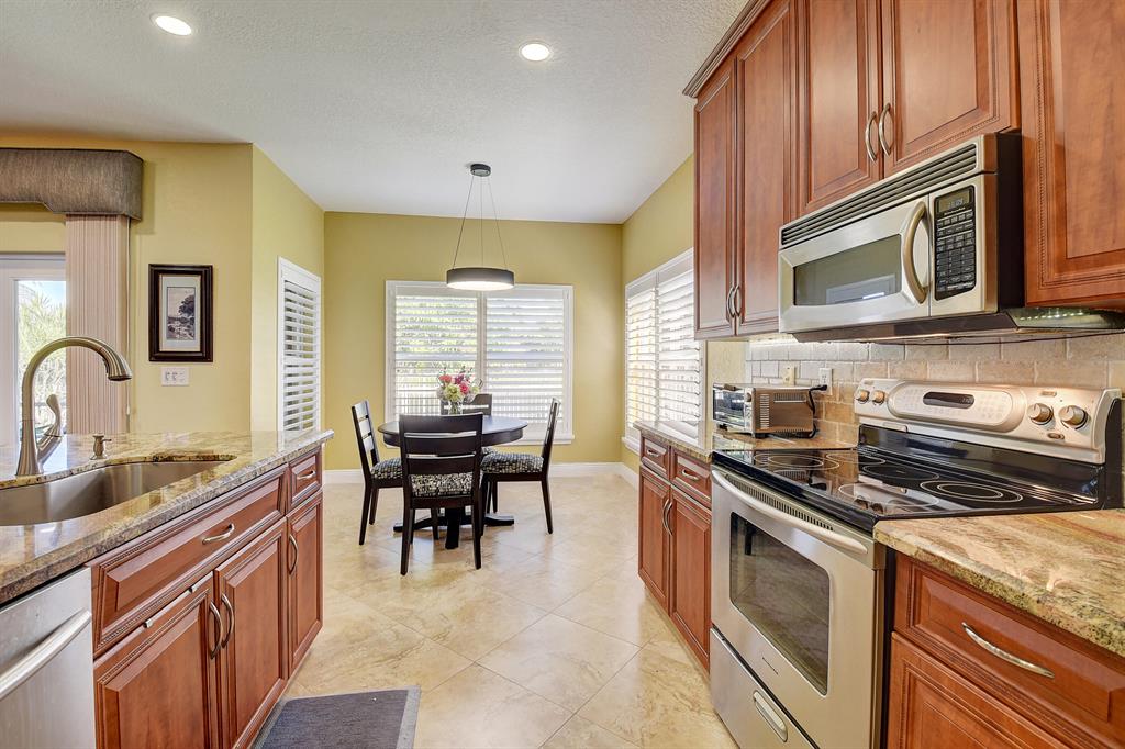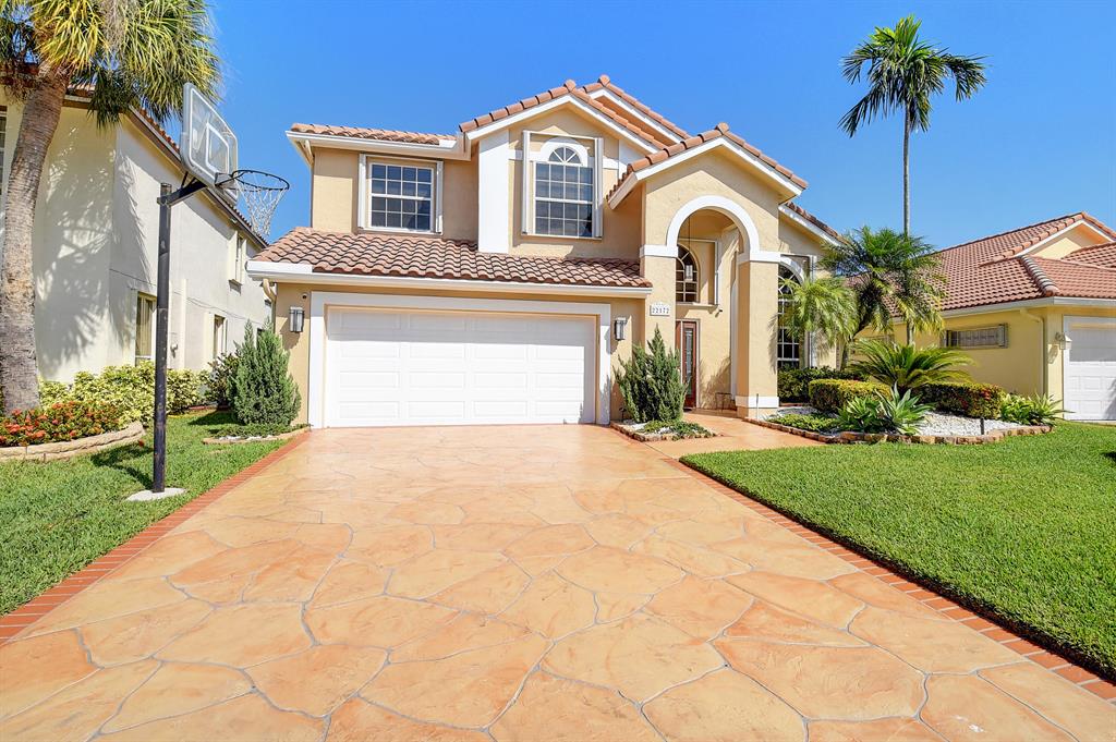 This is not a house, this is a home and a very special one. This 4 bed, 3 bath waterfront home has it all. From the moment you walk in you just want to live there. Upgraded details throughout from the neutral diagonal tile floors, the real wood and iron stair railing. Upgraded kitchen with granite, wine cooler, stainless steel appliances. Many features include high baseboards, crown molding French doors leading to screened patio overlooking a tranquil lake. One bedroom ground level and three upstairs (master). wood floors upstairs, huge master bedroom with double walk-in closets. Unbelievably beautiful upgraded master bathroom with freestanding tub, seamless shower and porcelain tile floors. Additional features include plantation shutters, generator hook up, hurricane shutters,