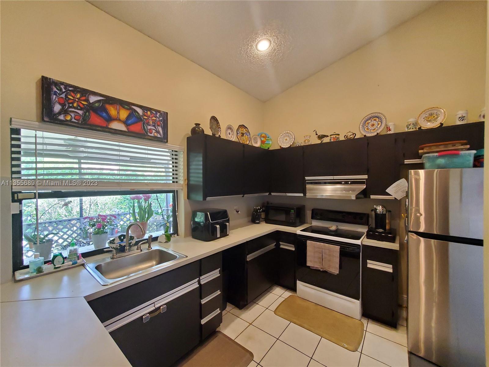 Rare to find, 4 Bedrooms, 2 Bathrooms, 2 Car Garage, One-Story Single-Family Home. Vaulted Ceilings. Open Kitchen. Very Spacious with over 2,200 SF. Accordion Shutters throughout. AC (2018). Large & Private Screened Patio. No Neighbors on the back. Lawn and tree trimming included in the HOA fee. Community Pool. Centrally Located. Minutes to Shopping, Restaurants, Supermarkets and much more. Don't Miss This Opportunity!!! Visits by appointment only, 24hr notice required.