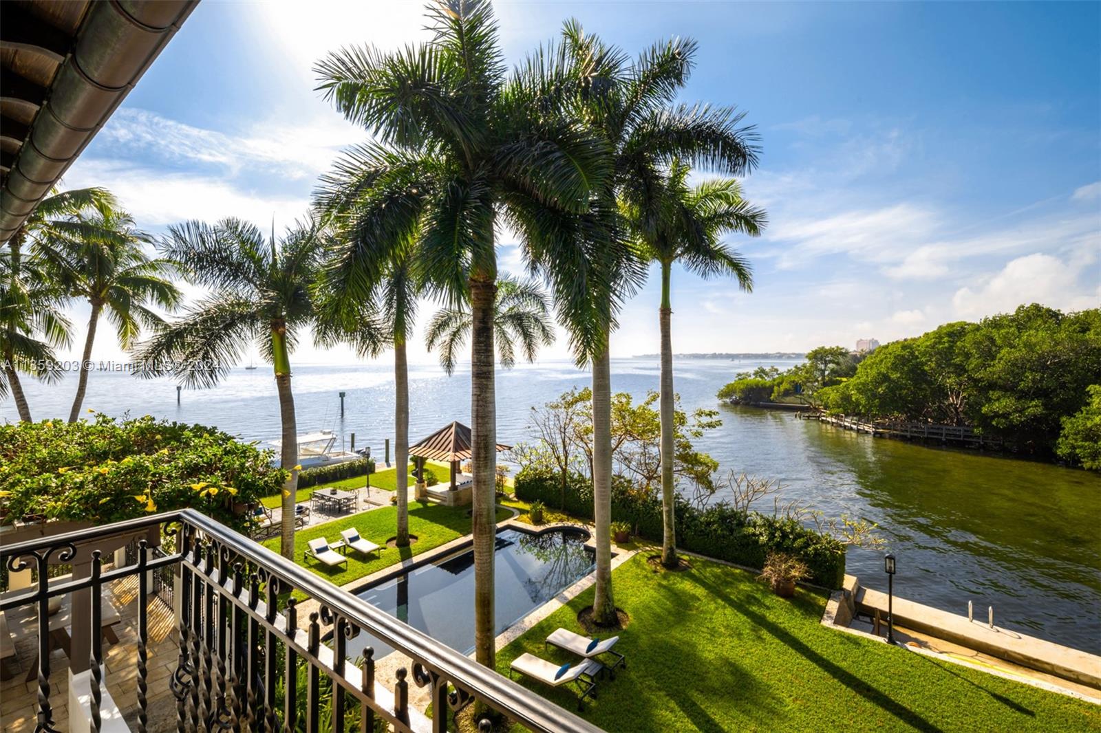 Perfectly set on a ½ acre +, bayfront estate, this 3-story Villa is the epitome of sophisticated Miami living. Step into the atrium boasting 30’ ceilings, Jerusalem stone staircase where you are greeted by unobstructed panoramic water views of the Miami skyline.From the mahogany floors to the 40’ dock, every attention to detail is reflected in this estate’s craftsmanship. Enjoy views of Biscayne Bay from the grand room or the open terrace, ideal for outdoor entertaining while overlooking the pool & 300’ of open bay. 8 beds & 8/1 baths are perfectly spread out over 10,100 sf of area. Located in private, guard-gated & historic community of Camp Biscayne, enjoy tranquility in this estate while being steps away from some of the country’s finest private schools, shops, restaurants, & marinas.