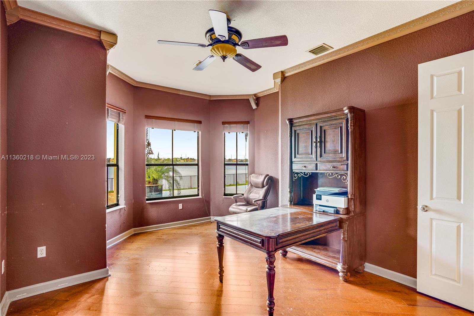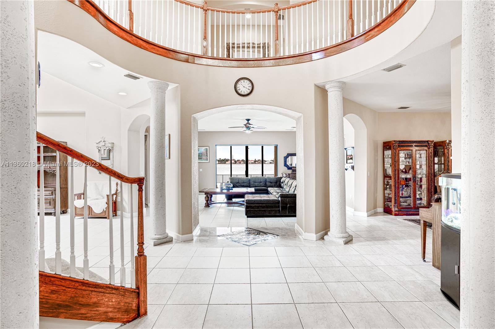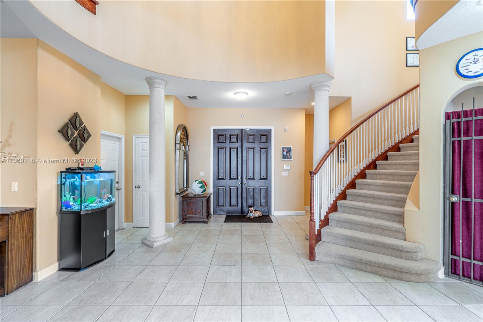 Beautiful 5bed/4bath home with breathtaking lake view. The home sits on a HUGE 11,050 Sqft LOT. The lake is over a square mile, you can barely see the properties across the lake. The home is one of the largest models within the community at 5,885 sqft. Once you go through the double door entrance, you can see the entire lake mimicking an ocean front property, Enter into the dramatic foyer which features large columns, Soaring Volume Ceilings, Spiral Staircase, Gorgeous Porcelain Floors, Huge Kitchen with Large Island equipped with all features a professional chef would need., Huge Balcony off of the Master Bedroom with AMAZING Panoramic, Views of the the Lake & Gorgeous Infinity Edge Pool. Located in West Miramar close to highways and within one of the best school districts in the area.