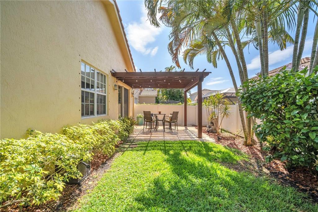 Well maintained 1 story home in sought after gated Wydham lakes community. Bright open floor plan w/ vaulted ceiling throughout dining, kitchen, & backyard perfect for hosting. Upgraded kitchen in 2012 w/ Granite counters, stainless steel appliances, & kitchen bar area. Master bath with dual sink & shaker cabinets, separate bathtub and shower stall. Large master w/ Walk-in closets, tile floors throughout. Relax under the shade of your pergola, enjoying a glass of wine while watching your pets run around in your fenced-in backyard. Laundry/utility room for extra space. Well taken care of on EVERY level by previous owners. Ac 2022. min to Sawgrass HWY, & minutes to Coral Springs major plazas, Parkland shopping centers, dining, and medical. Pet friendly w/ pool. Low Hoa & A rated high school.