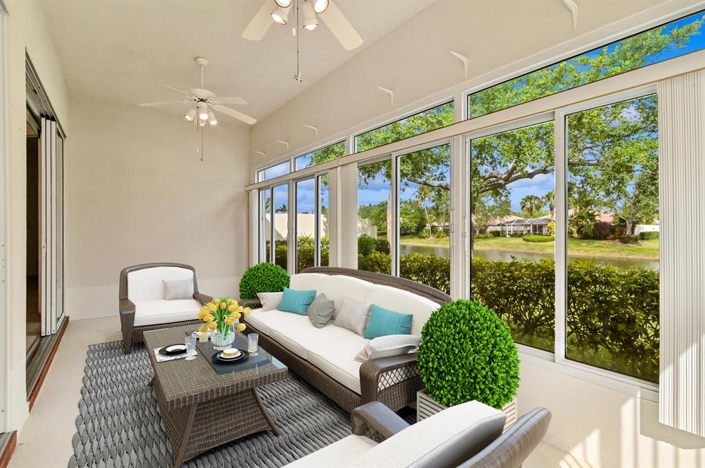 Spacious waterfront home in the exclusive community of Riverwalk. Come inside and be greeted by spacious living areas, along with an inviting kitchen. All of the bedrooms are spacious as well and offer ample closet space. The master bath has his/her bathroom connected. Outside you will enjoy a lovely enclosed patio/Florida room built as an extra room and beautiful backyard with views of the lake. The property is located just minutes to the Turnpike, I-95, Wellington, Boynton Beach, Downtown West Palm Beach, gorgeous area beaches and 3 international airports. Community is a well maintained community which offers its residents many resort style amenities.