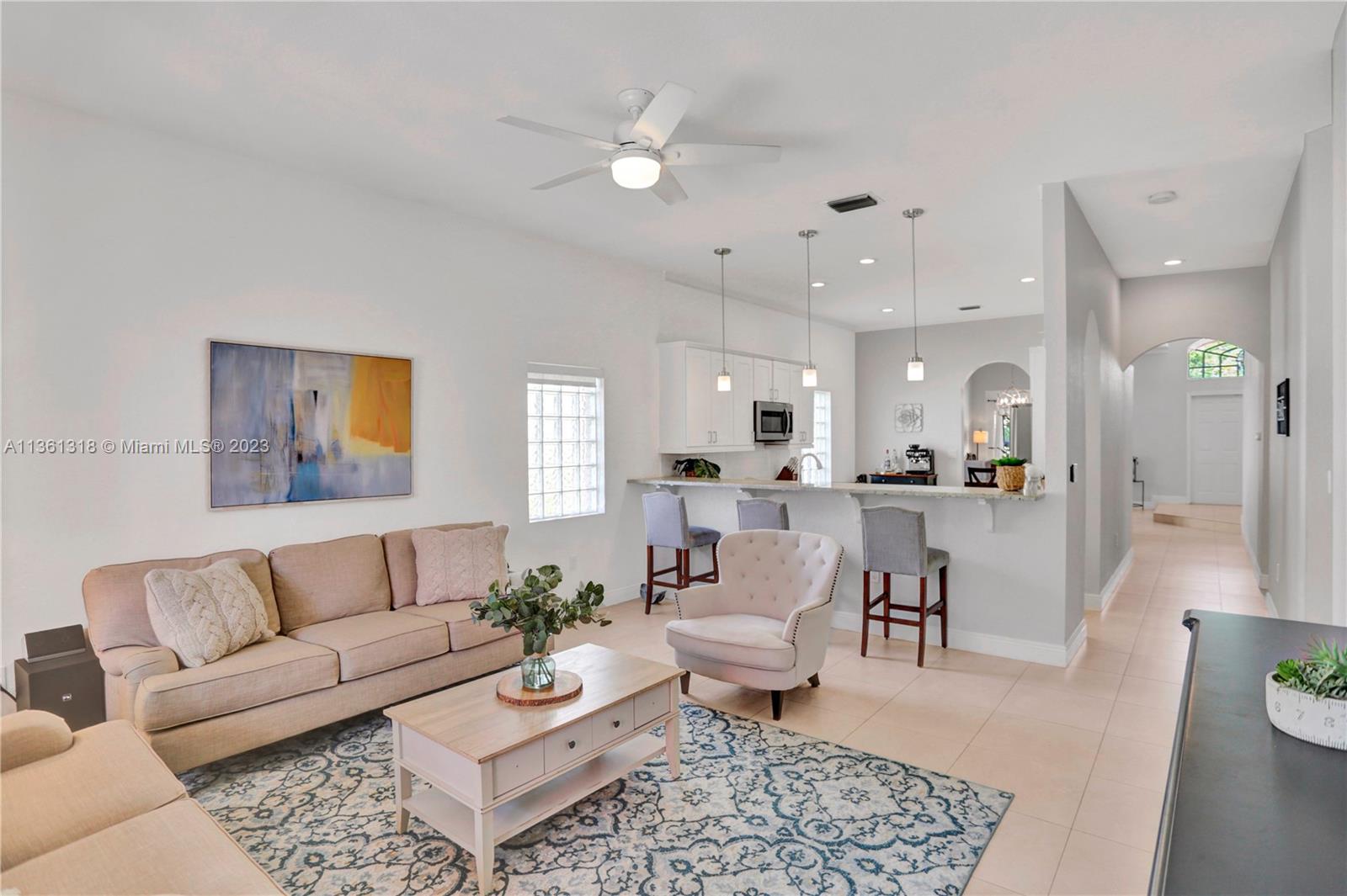 This beautiful turnkey one-story home has 4 bedrooms, 2 bathrooms & a 2 car garage. This home is in The Cove in the highly desirable Pembroke Isles, perfect for a young family. The property features an open layout with ceramic tile throughout, bamboo wood flooring in the Master Bedroom, a completely renovated kitchen with soft close cabinets, Samsung appliances throughout, smart home wi-fi technology. This property has a screened in porch with a backyard, big enough to entertain all your guests. Pembroke Isles features resort-style amenities, 3 pools, tennis, basketball, gym, sauna, beach volleyball, fishing pier, 2 playgrounds and much more. HOA includes: cable, ATT Wi-Fi and basic cable, lawn maintenance, front & back, ADT alarm, 24 Hour Roaming Patrol & more. A+ Schools in the area.