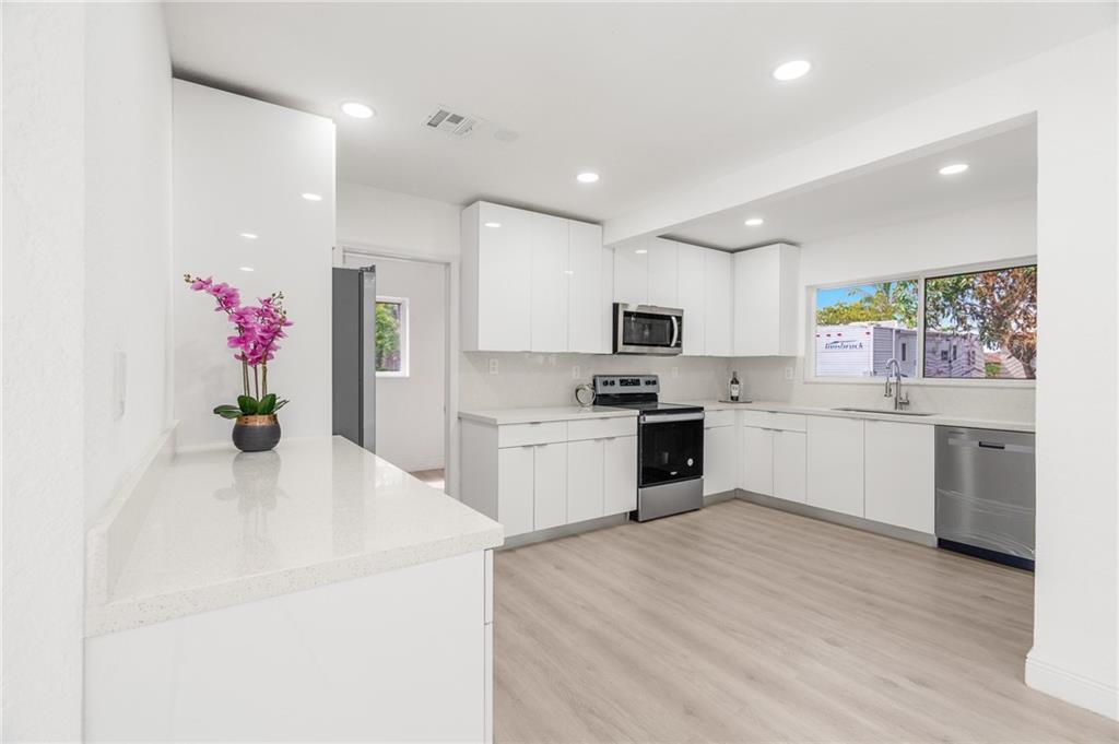 Welcome to this beautifully updated 3 bedroom, 2 bathroom home with an open concept living space & a brand new roof. The kitchen is truly the heart of this home, featuring stunning stainless steel appliances, elegant quartz countertops, & plenty of storage for all of your culinary needs. The primary bedroom is a tranquil retreat with its own En-suite bathroom, & a double vanity for added convenience. Step outside to an expansive fenced-in yard & enjoy your own private oasis with a screened-in patio, perfect for outdoor entertaining or simply relaxing in the sun. This home is move-in ready, allowing you to settle in quickly & comfortably. With its modern updates & inviting charm, this property is truly a gem. Don't miss your chance to call it your forever home! Schedule a viewing today.