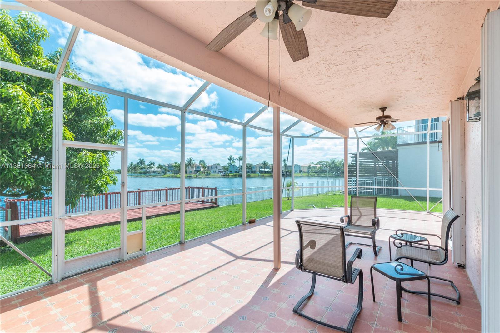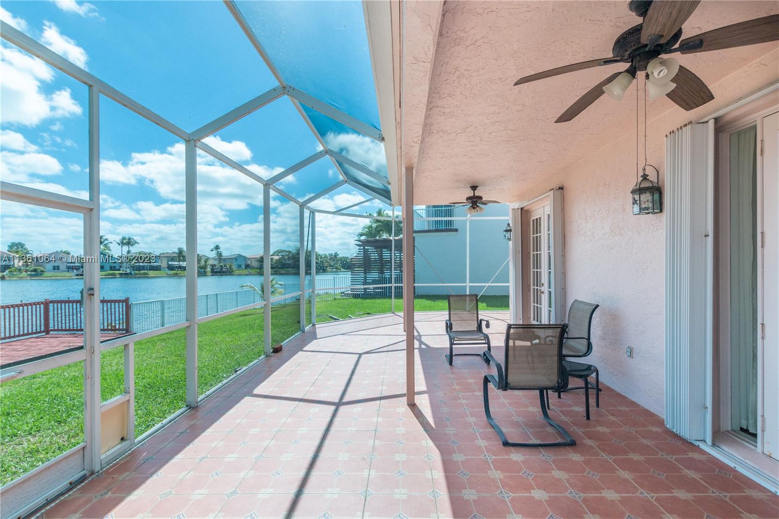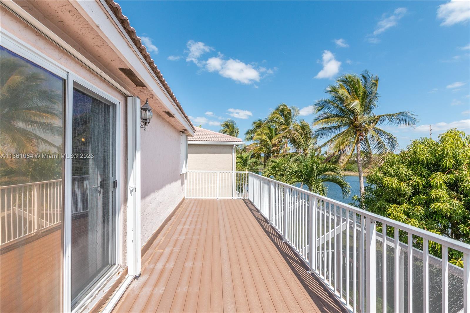 You won't find a better view than this house on the lake. Beautiful 2 story corner lot home with the biggest backyards in the neighborhood. Screened in patio, wooden dock, and more than enough space for a pool. Large primary bedroom with walk in closet, updated bathroom and massive private balcony. overlooking the lake. Impact window plus accordion shutters, recently changed A/C, sprinklers that pump water from the lake so low water bill, and a mango tree that can feed an army. House is in great shape and well taken care of. Separate fridge and freezer in garage do not convey.