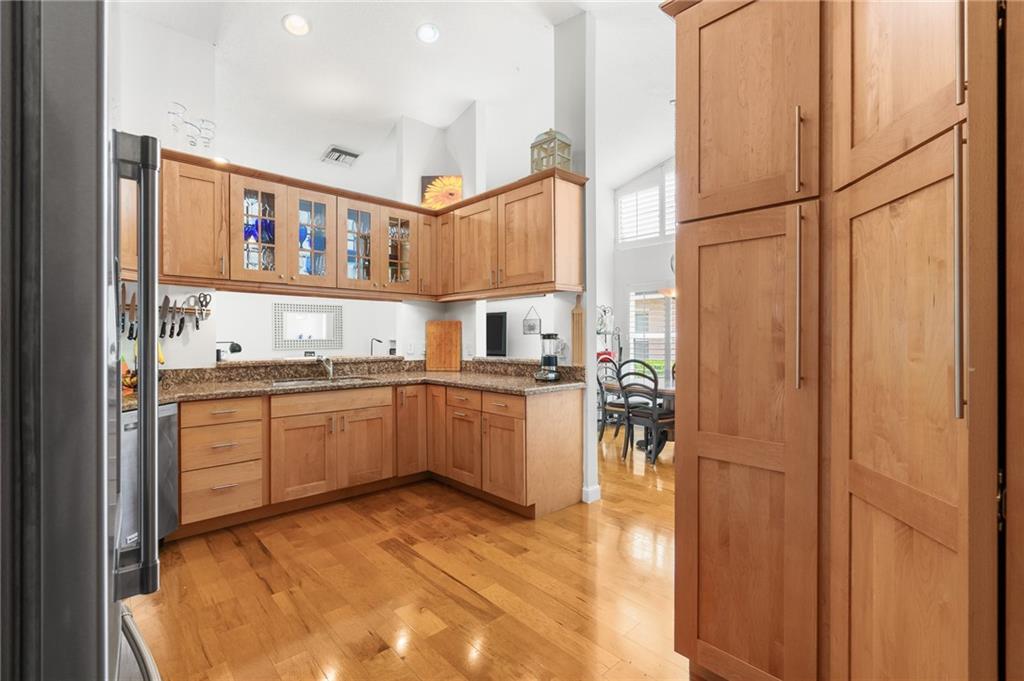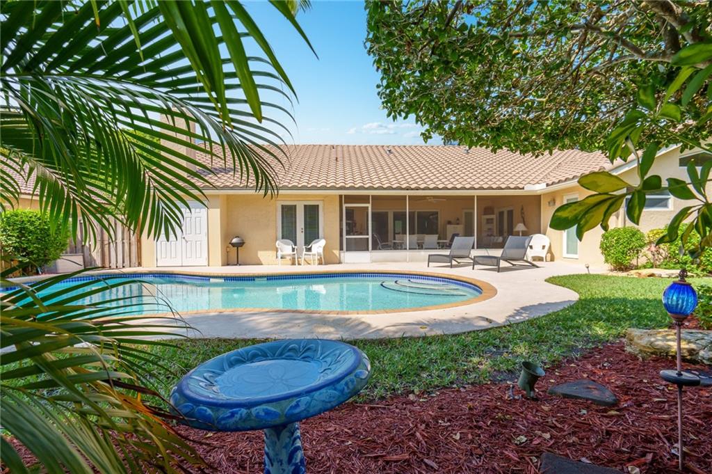 With just one owner, this beautiful 4 bedroom home has been loving updated through the years. You will appreciate the striking updates in the kitchen with Artisan Maple cabinets, granite countertops and top end appliances. Throughout the living area you will appreciate the vaulted ceilings offering a sense of open space, be it in the living room or in the sun drenched breakfast area. The master suit has a beautiful updated bathroom with both a tub and separate shower and a door leading directly to the pool area, as well as French doors that step into the screen enclosed lanai. Guest bedrooms will welcome family and friends or serve as an office or hobby room. Owner installed high impact windows and doors and replaced the barrel tiled roof.