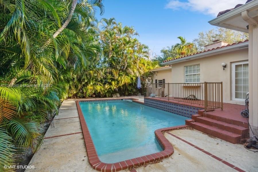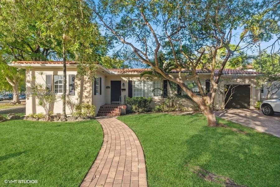 Beautifully updated Coral Gables home on very peaceful street. Light and bright with hard wood and saturnia marble floors. Impact windows bringing in natural light. White wood cabinets in kitchen with granite counters and stainless steel appliances. Great space for cooking. All bathrooms remodeled. Gorgeous new Chicago brick walkway and driveway. Inground pool with quite fenced backyard. 3 bedrooms, 2 bathrooms. 1 Car-garage. New Barrel tile roof in 2019.