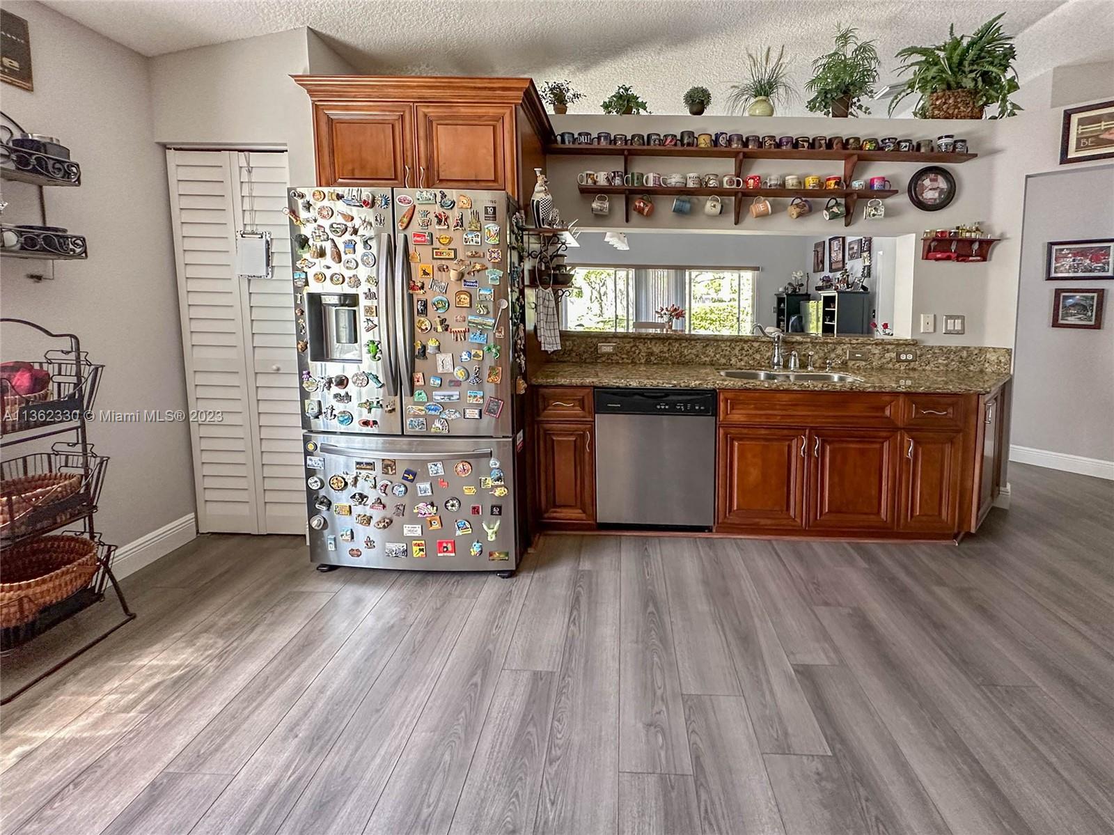 BEAUTIFUL CORNER 3/2 single-story home located in the highly desirable guard gated community of Parkside at Spring Valley located in West Pembroke Pines. Very well-maintained home. The complete new roof year is 2022. The ceiling popcorn was removed and replace for knockdown texture. Laminate flooring throughout the whole house. Spacious and open kitchen with all stainless steel appliances and granite countertops. All Appliances less than 3 years old. Electric tankless water heater. The master suite has sliding doors to enjoy the patio, vaulted ceiling, walk-in closet, large bathroom with double sinks granite vanity, soaking tub, and separate glass encased shower. Accordion shutters. Fence. Canal in the backyard.