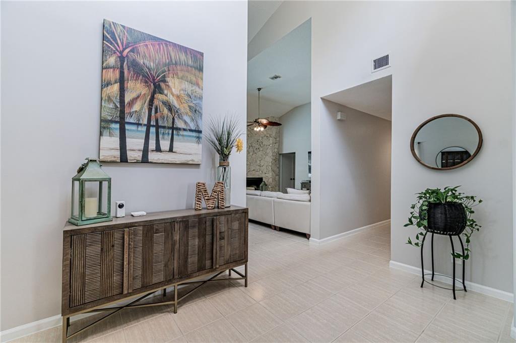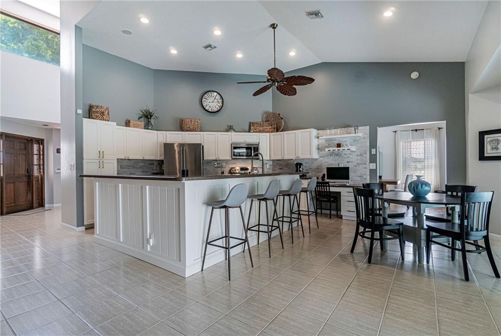 Don't miss this immaculate home in the heart of Pine Ridge; a verdant community that will allow you to Relax, Enjoy & Love where you Live! This crisp 4 bed 2 1/2 bath home, with its striking vaulted ceilings will undoubtedly impress you! Large & unique floorplan, split bedrooms, enormous master suite, master bath & walk-in closets! Open kitchen with white cabinets, elegant backsplash, stainless appliances & a large counter bar area. It is simply the perfect place to entertain! Snug family room with working fireplace. The stackable patio slide doors invite you to the screened pool area, where you can enjoy the long water views & soak in nature. Freshly painted outside & full impact coverage. Fenced in yard on a desirable over 12,000 sqft lot. It simply has it all, come see! Open the 1st