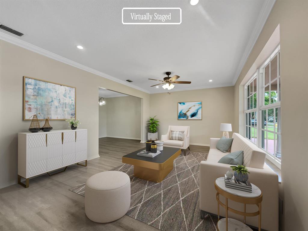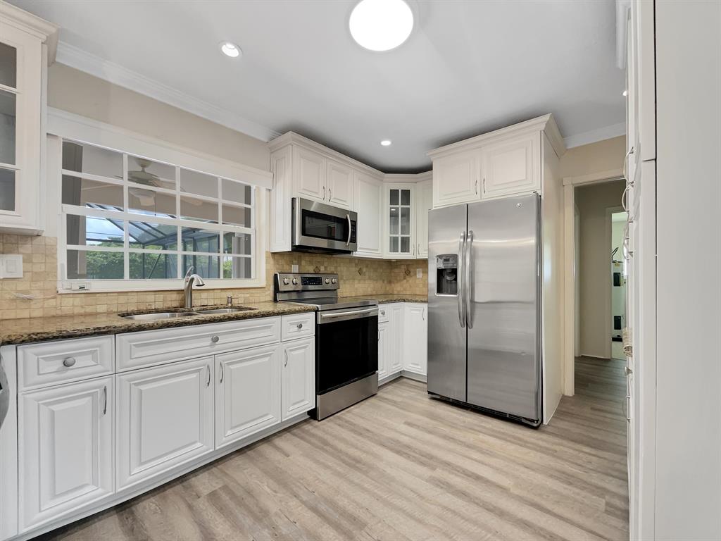 Check out this stunner! This home has fresh interior paint, fresh exterior paint and new flooring throughout the home. Windows create a light filled interior with well placed neutral accents. Step into the kitchen, complete with an eye catching stylish backsplash. Relax in your primary suite with a walk in closet included. Extra bedrooms add nice flex space for your everyday needs. The primary bathroom features plenty of under sink storage waiting for your home organization needs. Step outside to the pristinely maintained fenced in backyard with pool, great for entertaining. If the shade is more your style, hang out under the covered sitting area. Hurry, this won't last long!
