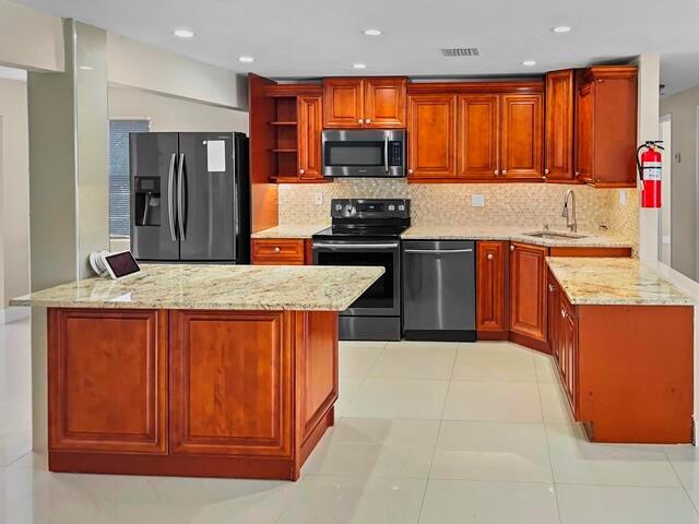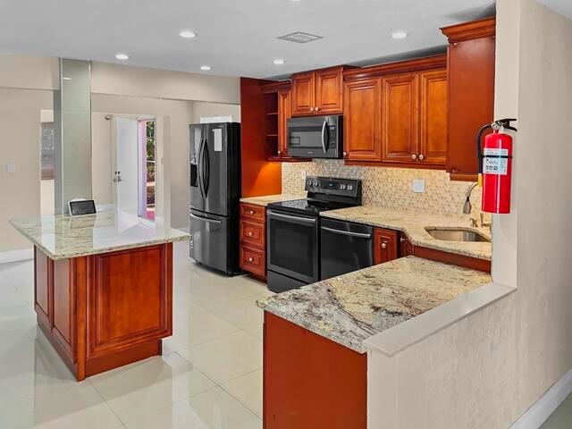 Huge 5-bedroom renovated house with beautiful kitchen and lots of room for living large. Move in right away and enjoy huge spacious rooms, big backyard for barbecue and outdoor living, gorgeous renovated kitchen, separate laundry room, big bedrooms, an empty palate outside for landscaping and grounds. Off-street parking available, close to shopping & beaches, easy trip to Ball Park of the Palm Beaches, close to I-95, all of South Florida is at your doorstep!