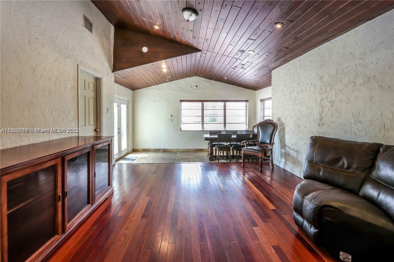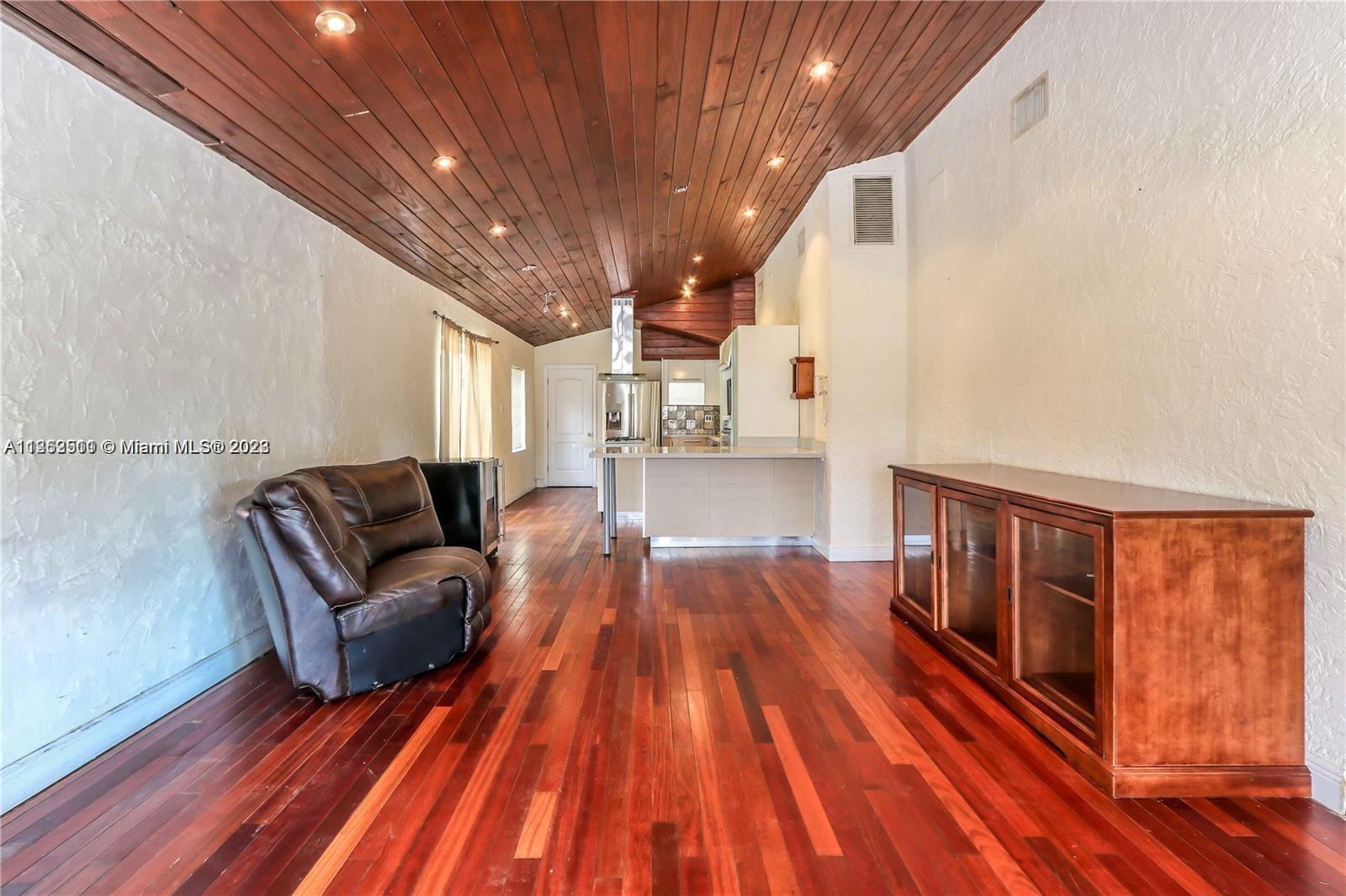 This 4 bed 3 bath home is on a double lot in a quiet neighborhood. It features exposed wood ceilings with recessed lighting. The kitchen is equipped with a hooded counter top gas stove and stainless steel appliances. Large bedrooms with updated bathrooms. The yard is fenced in with a pool and outdoor kitchen. There is plenty of room to park an RV or Boat. Please see Broker’s remarks for showing instructions