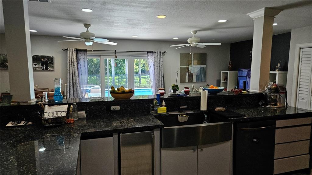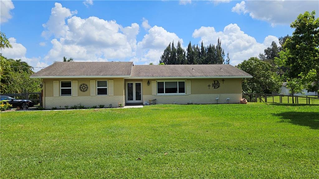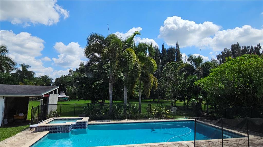 Welcome to Southwest Ranches. Wonderful 4/2, pool home, fully fenced, over an acre. Roof 7yrs, Impact windows and doors 2019, 400 ft deep well for crystal clear water. 1yr pump. 2 central AC units. 5 ton 2017 and 2 ton 2021. Huge kitchen w custom cabinets, granite counter tops, open to dining area, family room, overlooking pool. Formal LR w new carpet. Split bedroom plan. Master bedroom w bonus room, leading to pool, master bath w updated countertop, double sinks, walk-in shower, 2 closets. Three bedrooms w second bath on the other side, one Bed Room off the laundry room. Bath#2 updated 2019. Laundry Room, w door to outside, stackable W/D, laundry tub, cabinets, loads of storage space. Bring your horses, ride your 4-wheeler, enjoy Avocados, Mangoes, Guava, and more. Great Schools Included!