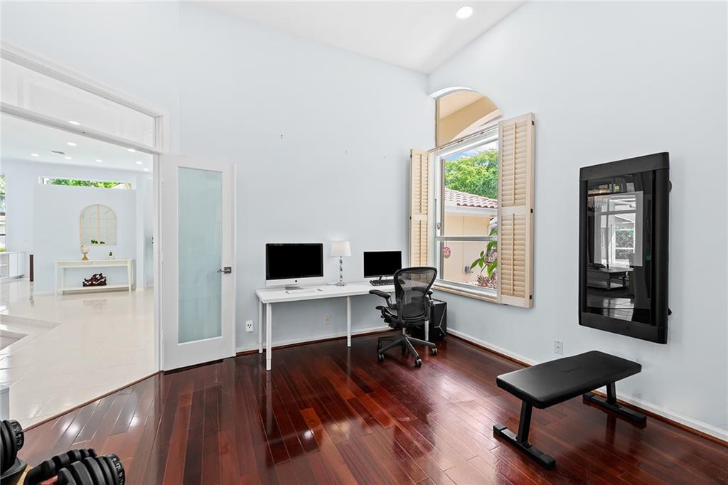 Stunning, one story home, situated on a large lot, on cul-de-sac with ample parking. Located in the guard gated, golf & tennis comm, Eagle Trace. 3 way split floor plan, perfect for (in-law, au pair or game room), 12' ceilings & tons of natural light. Wood kit cabinets, quartz counters, double oven & walk in pantry. Main bdrm w/sitting area, custom closets, ensuite w/ double vanities, separate shwr & jetted tub. 2 new A/C (handlers, compressors & ducts.) New LED recessed lighting, ceiling fans, rocker switches, outlets & interior doors. Laundry rm w/storage & sink. Screen enclosure, great for in/outdoor living w/salt water heated pool & spa. New pool pump & heater. Outdoor kit connections - electric, plumbing & exhaust. Privacy hedge, manicured landscape & irrigation system. And much more