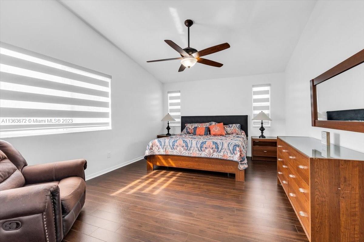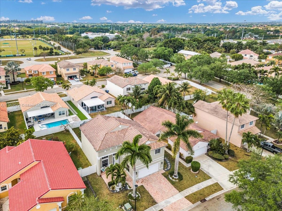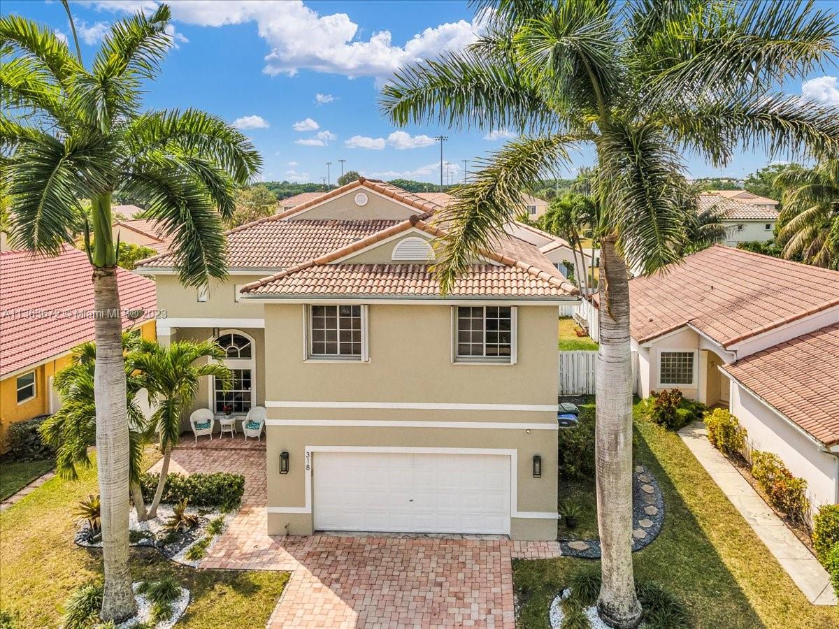A beautiful 2-story home with 4 bedrooms, 2.5 baths and over 2400 sf in one of Pembroke Pines most sought-after neighborhoods - Estancia! Additional loft space added for bonus room/office or could be a 5th bedroom. This home features tile floors downstairs & dark wood upstairs, vaulted ceilings and updated baths. The beautiful and open kitchen area has many cabinets, pantry, plus eat-in area and exits out to the backyard. Main bedroom is located upstairs with updated modern bathroom with large shower. Separate living and family room area. Spacious, fenced backyard with plenty of room for a pool. The garage has a full-size drop-down screen door. Close to pool and amenities. Estancia offers a gated community with 24-hour guard, pool, playground, bike/jogging trails & plenty of green space.