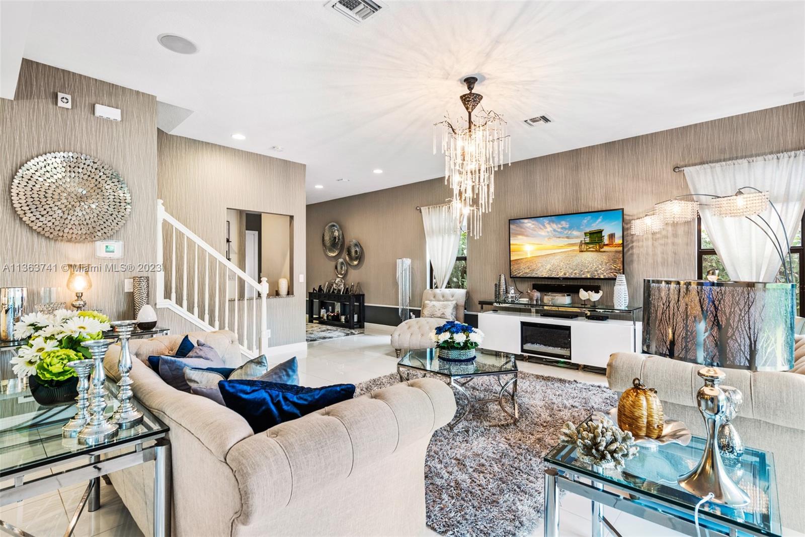 Absolutely stunning and immaculate 5 bedroom 4 bath 2-story house in a gated community. This home has the perfect amount of detail, class, and elegance that flows gracefully from the second you walk in to upstairs. The kitchen has a gracious marble island with an open concept dining room and adjoining living room. Built in 2018, this home is fairly brand new including AC, Barrell Tile Roof, Stainless steel appliances, Washer/Dryer, and more. Very spacious with walk-in closets, pantry, family room area, and private den/office. Coral Lago is a gated community with a relaxing pool, clubhouse, gym, and more. The modern high end furniture including the chandelier is available additional for sale. This home is turnkey ready for any family.