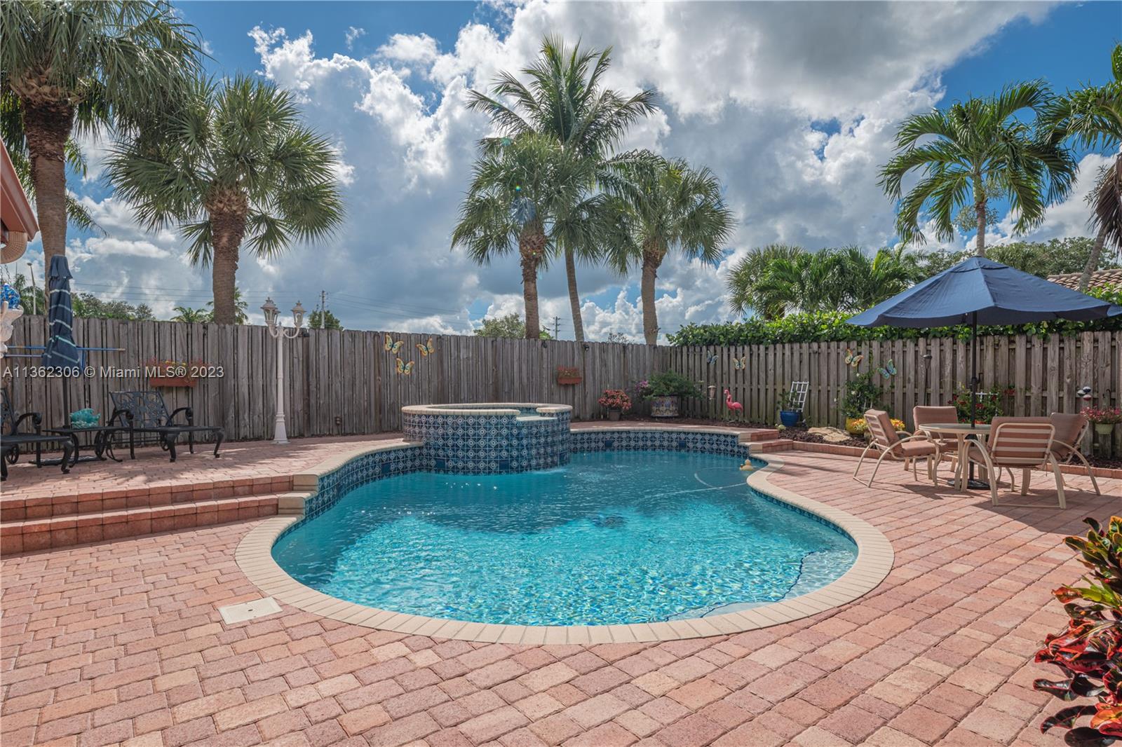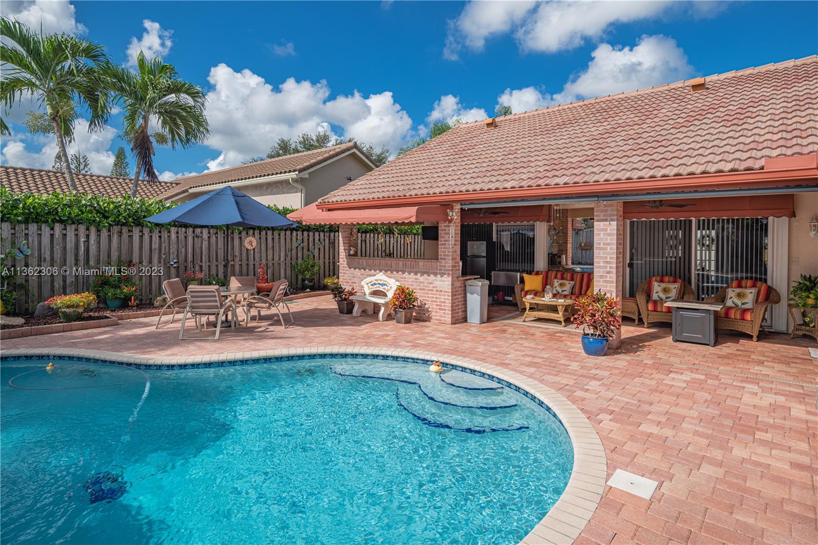 Location, Location, Location!! A must see!! Gorgeous 4/2.5 home. Enter through the double glass doors into a bright & spacious living/dining area w/high ceiling, crown molding & view of your resort-style pool area w/outdoor kitchen. Large family room & kitchen, wood cabinets w/lots of storage, granite countertops, & eat-in area. Split bedroom plan. Spacious master bedroom., updated bathroom w/shower, & his/hers closet. Three large bedrooms & 1.5 baths down the hall from the family rm. The 1/2 bath has an exit to the pool area. Laundry rm w/newer washer & dryer, 2021. Roof-2013. AC-2019. WH-2020. Exterior painted, 2020. Pavers throughout the outside, including the garage. And much, much more to offer. A+ schools. Close to major highways, shopping, entertainment, & house of worship.