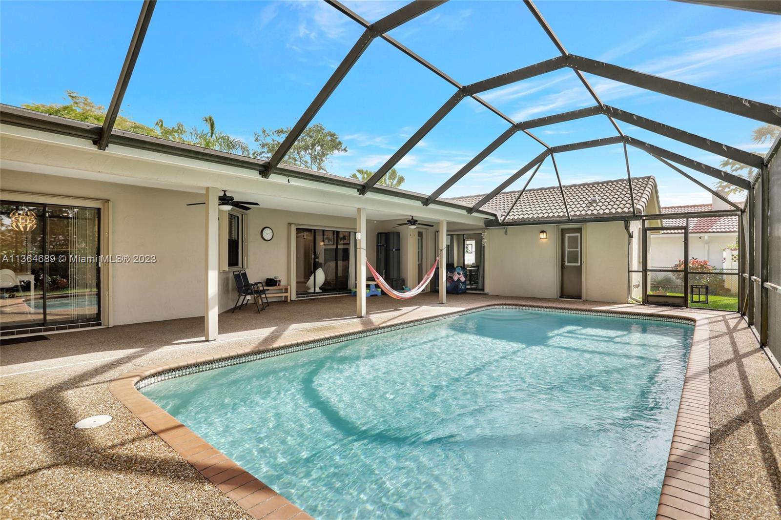 Welcome home to this spacious, meticulously maintained 4 bed, 2 bath pool home in the much desired community of Pine Ridge. Situated on an oversized fenced lot with pool & screen enclosure, 2 cabana bathrooms, open floor plan with large eat-in kitchen that overlooks the pool this home is great for entertaining. The exterior features a large paver patio at the front entrance that is wheelchair friendly, accordion shutters on all openings, a hurricane proof garage door and a solar pool water heater. The interior has been freshly painted in a neutral color, all ceilings have been refinished to remove popcorn and all new AC ducts were installed in 2016. 2021 Stainless refrigerator and dishwasher and an in-home water filtration system installed. Low HOA, A rated Elementary School!