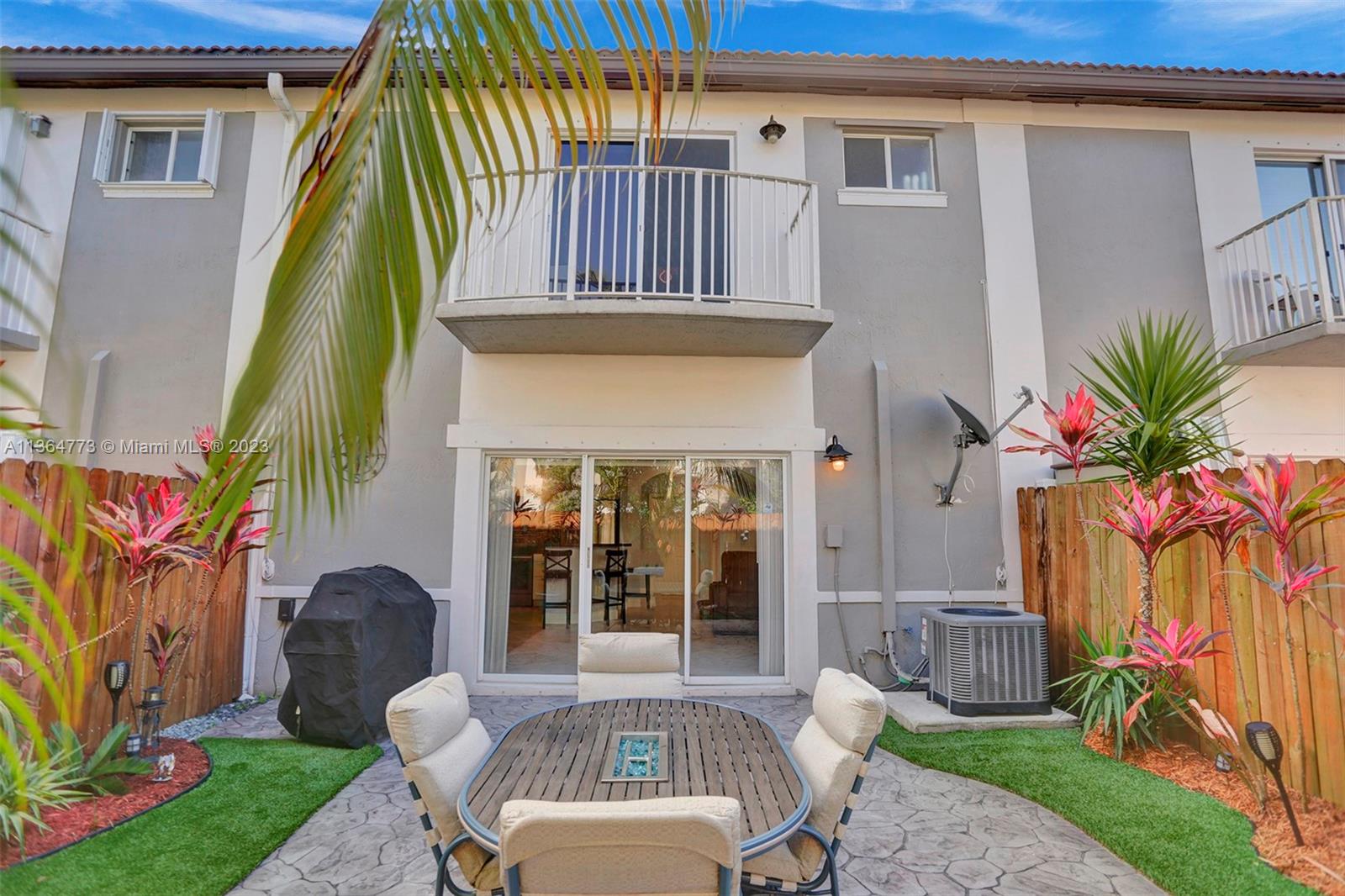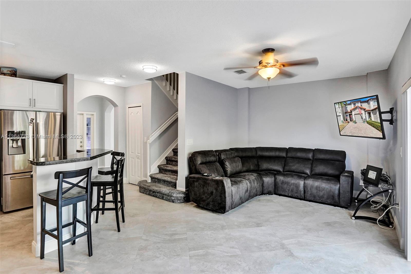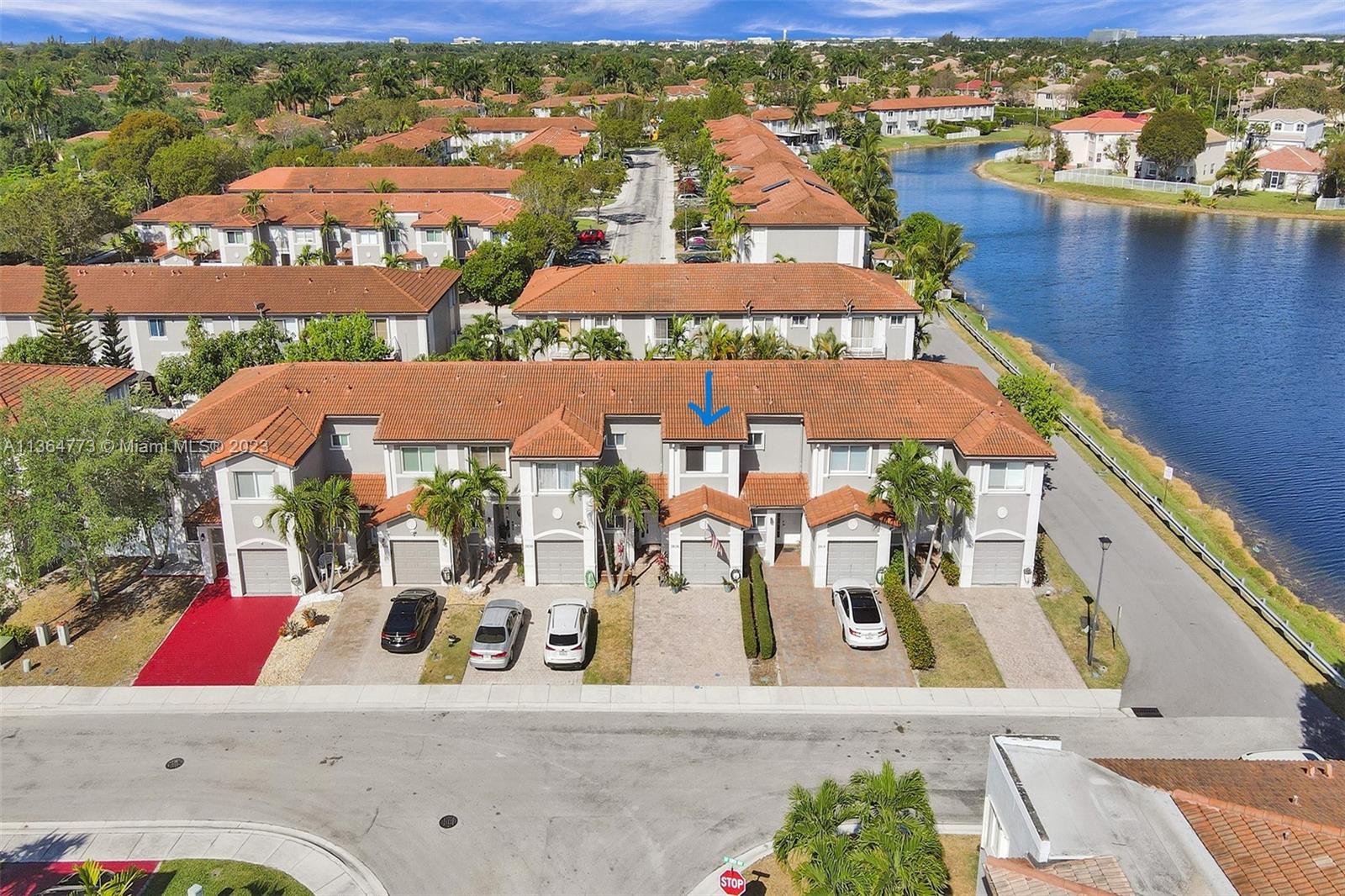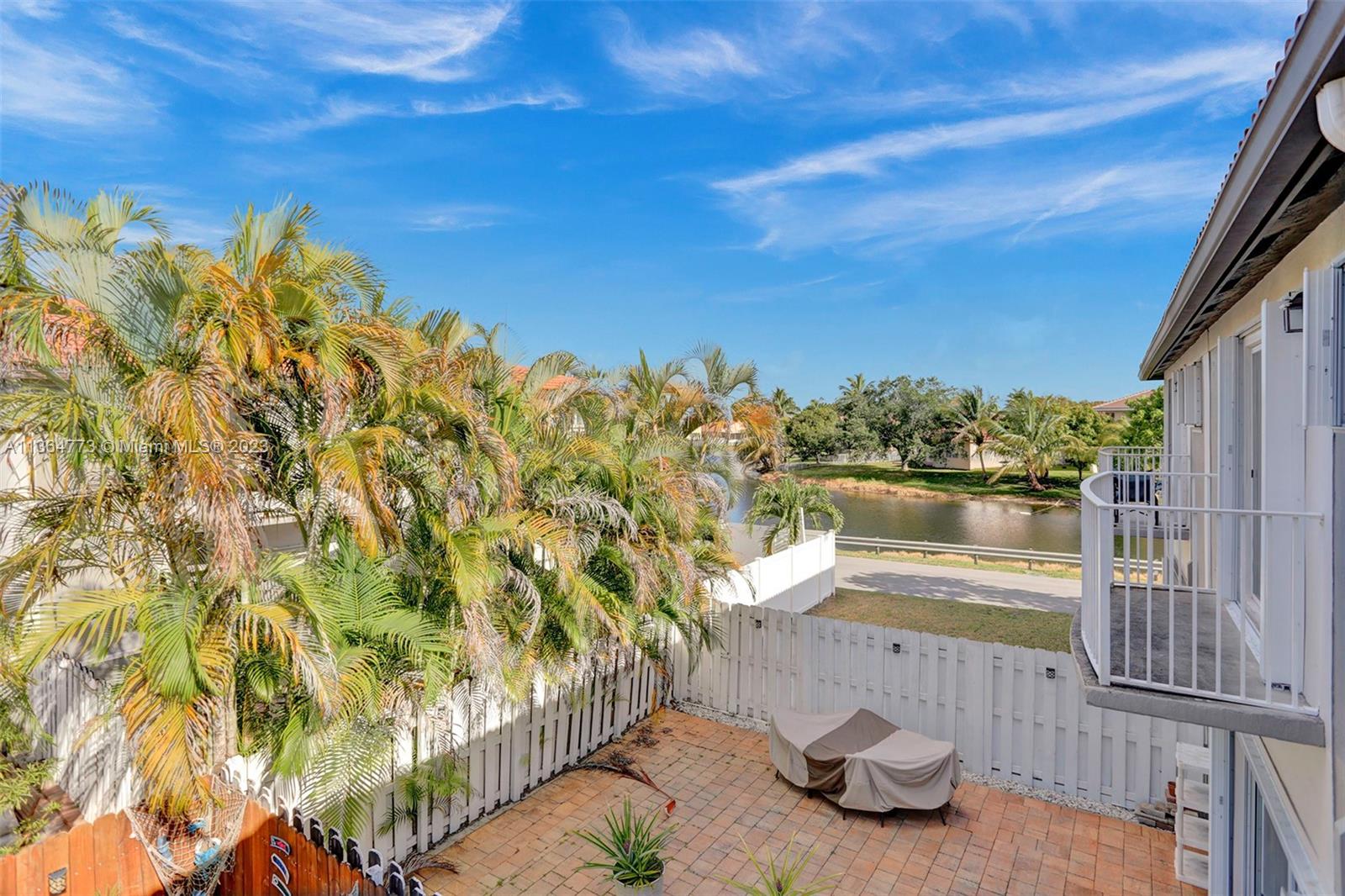 Harbour Lake Townhomes in MONARCH LAKES. Great west Miramar location! This beautifully updated 2 BR/2.5 BA is light & bright with east/west exposure! Open & updated kitchen w/granite countertops, wood cabinetry, SS appliances. Ceramic tile downstairs, wood laminate upstairs. Split BR plan. Spacious primary suite w/walk in closet. Balcony off primary BR w/view of lake. New A/C 2018, newer hot water heater, stamped concrete driveway, 1-car garage. Updated bathrooms! Plenty of room to entertain in your fenced & private back patio! Secure gate w/virtual guard. Many amenities: Tot lot, community swimming pool, tennis courts, basketball. Fabulous location just minutes to I-75, shopping, restaurants! Rentals permitted after 2 years ownership. Pets o.k. CREDIT SCORE MIN 650! 30 day approval.