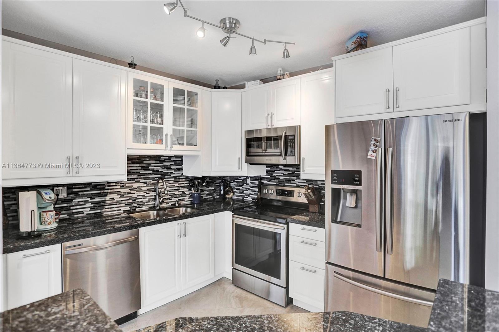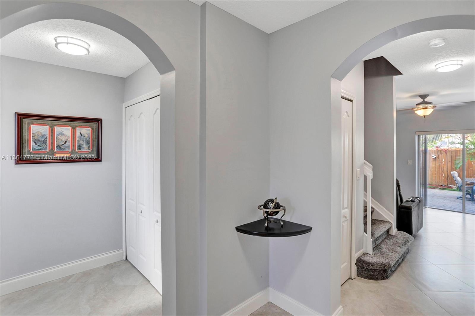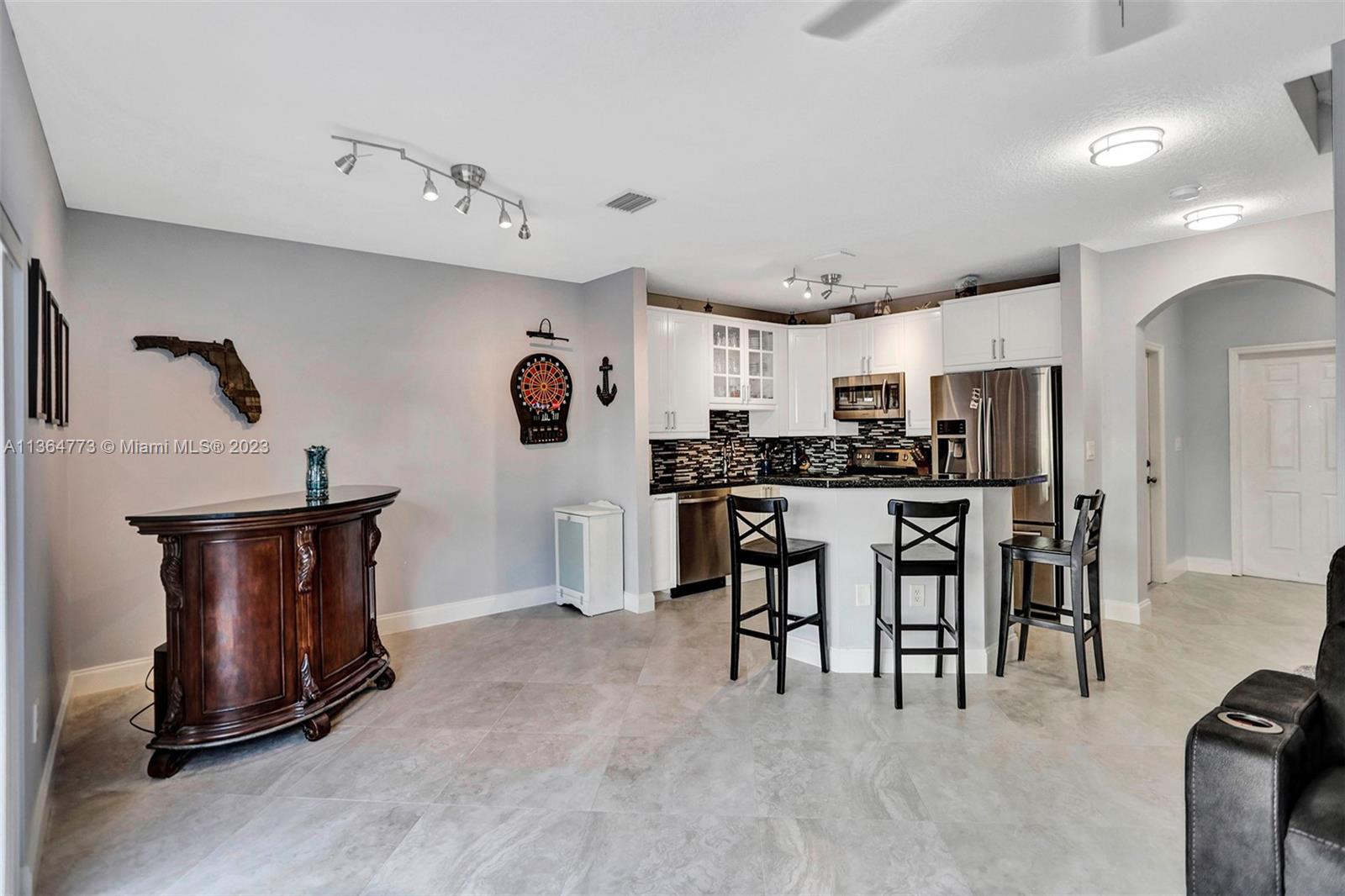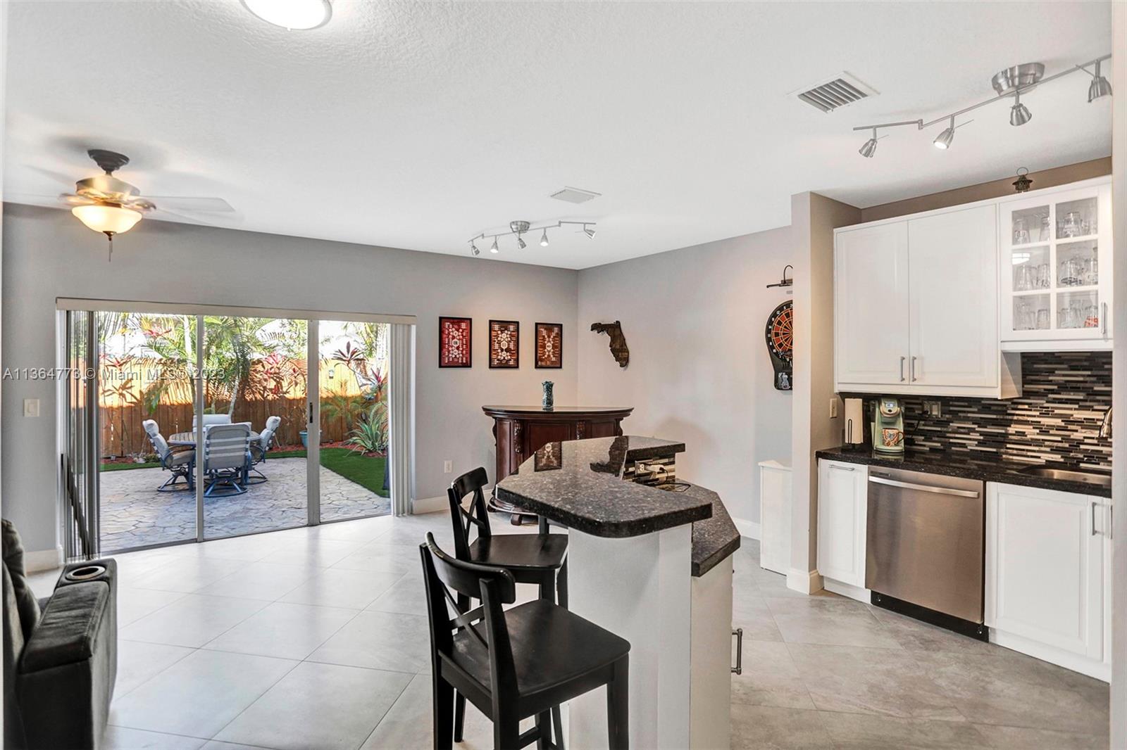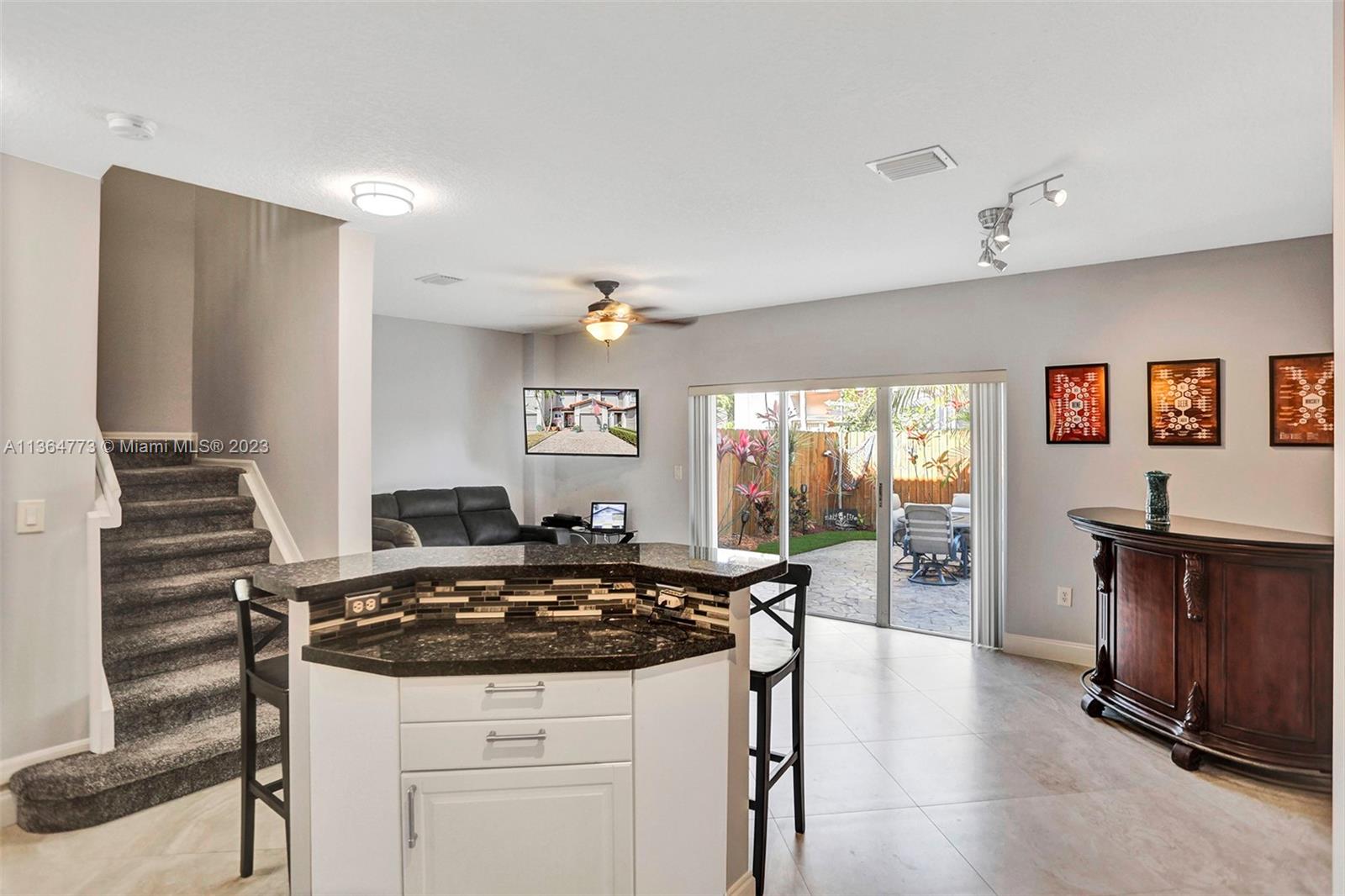 Harbour Lake Townhomes in MONARCH LAKES. Great west Miramar location! This beautifully updated 2 BR/2.5 BA is light & bright with east/west exposure! Open & updated kitchen w/granite countertops, wood cabinetry, SS appliances. Ceramic tile downstairs, wood laminate upstairs. Split BR plan. Spacious primary suite w/walk in closet. Balcony off primary BR w/view of lake. New A/C 2018, newer hot water heater, stamped concrete driveway, 1-car garage. Updated bathrooms! Plenty of room to entertain in your fenced & private back patio! Secure gate w/virtual guard. Many amenities: Tot lot, community swimming pool, tennis courts, basketball. Fabulous location just minutes to I-75, shopping, restaurants! Rentals permitted after 2 years ownership. Pets o.k. CREDIT SCORE MIN 650! 30 day approval.