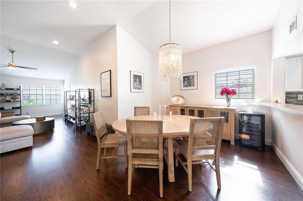 Amazing 3 bedroom-2 Full bathroom carriage home with attached garage. All living spaces are on the second level. Vaulted ceiling with lots of natural light and open floor plan. Garden view from the primary bedroom, living room, covered patio off living room and kitchen. Laminate flooring and ceramic tile, no carpet. 3rd Bedroom is currently being used as an office, has a window and a door, but no closet. Full size washer and dryer located in hallway closet next to 2nd Bedroom. Gated and 24 hour manned community, with walking trails, two pools, hot tubs, clubhouse, and lushly manicured landscaping. Walk to Boca town Center, shops & restaurants. One pet permitted must be under 50 pounds. Can rent immediately for a minimum and maximum of 12 months. One rental per year.