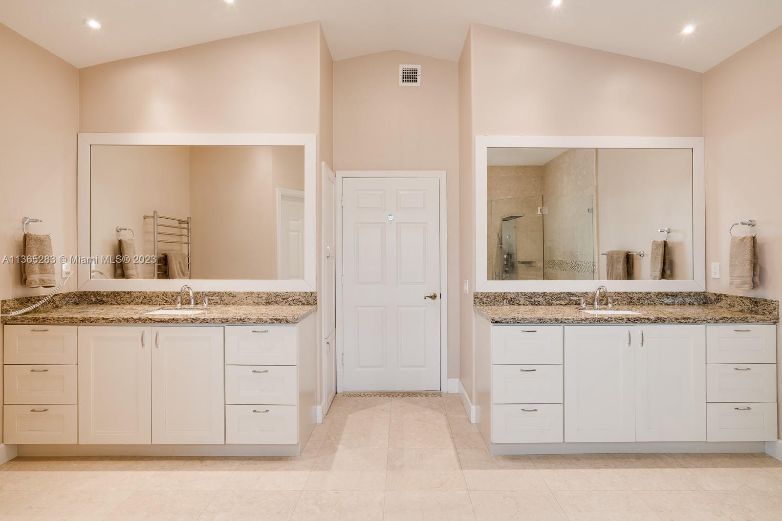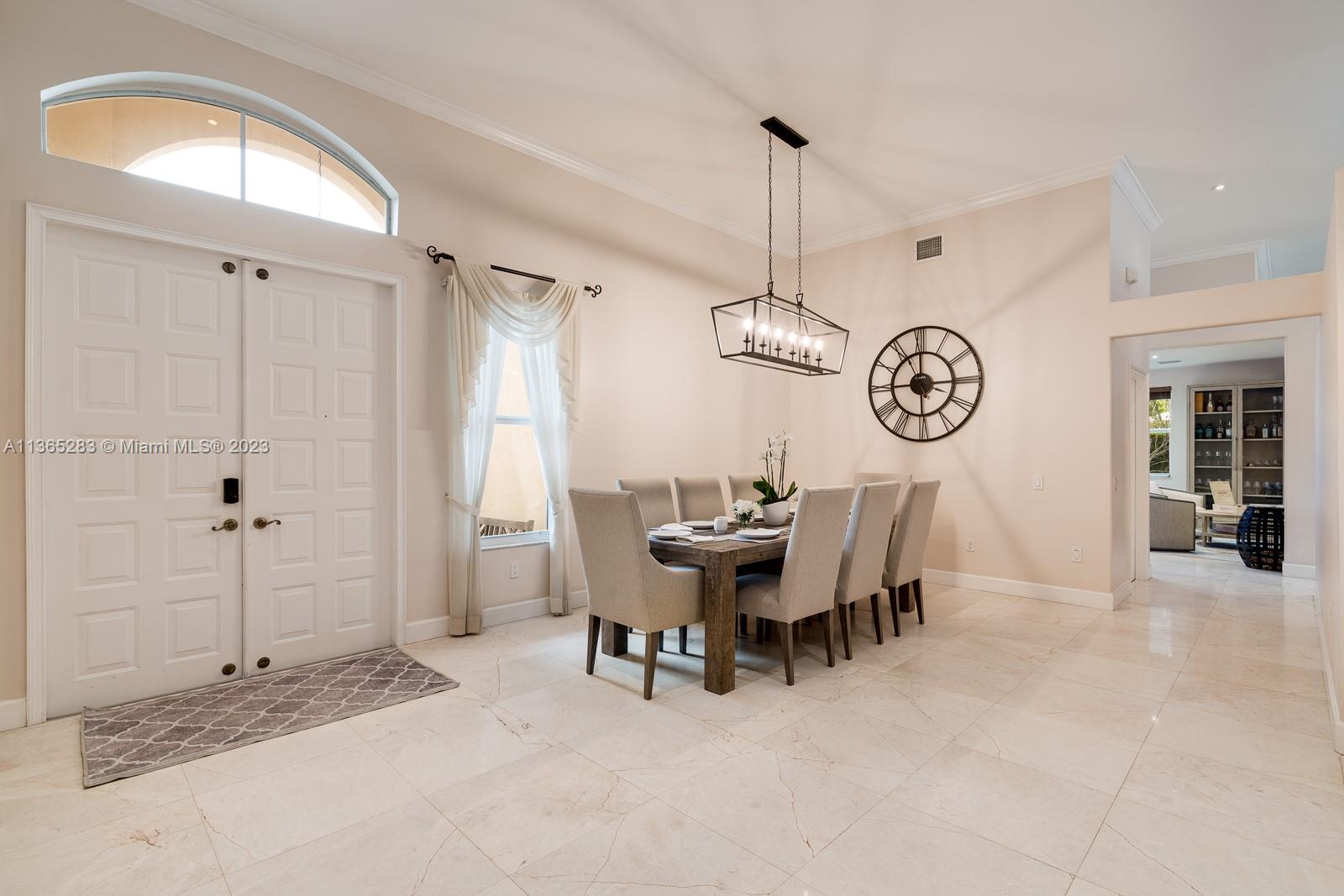 Modern 4 bdrm/ 3 bath remodeled beauty. Soaring volume ceilings & fantastic natural light. Grand formal living rm & dining rm. Stunning, glass enclosed wine storage is an art piece while also offering functionality for your wine collection. Spacious family rm opens to a true gourmet kitchen, featuring Turkish marble floors, eat in island seating, white cabinetry, quartz countertops & breakfast area. Lovely primary suite w/ spa-like bath, double vanities, shower, jetted tub. Impact windows/doors. Fantastic summer kitchen w/BBQ & expansive covered patio, pool w/ water feature, lovely yard has privacy hedge & plenty of seating space, all perfect for summer afternoons entertaining family & friends. Indoor laundry room. New AC, security system. 2 car garage.