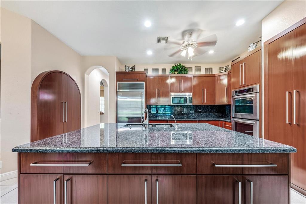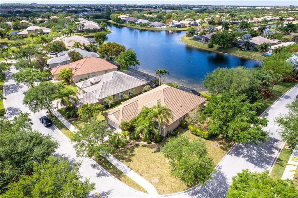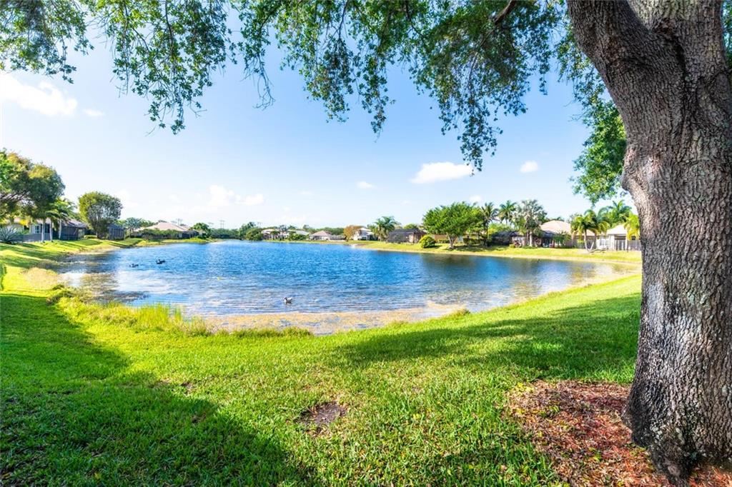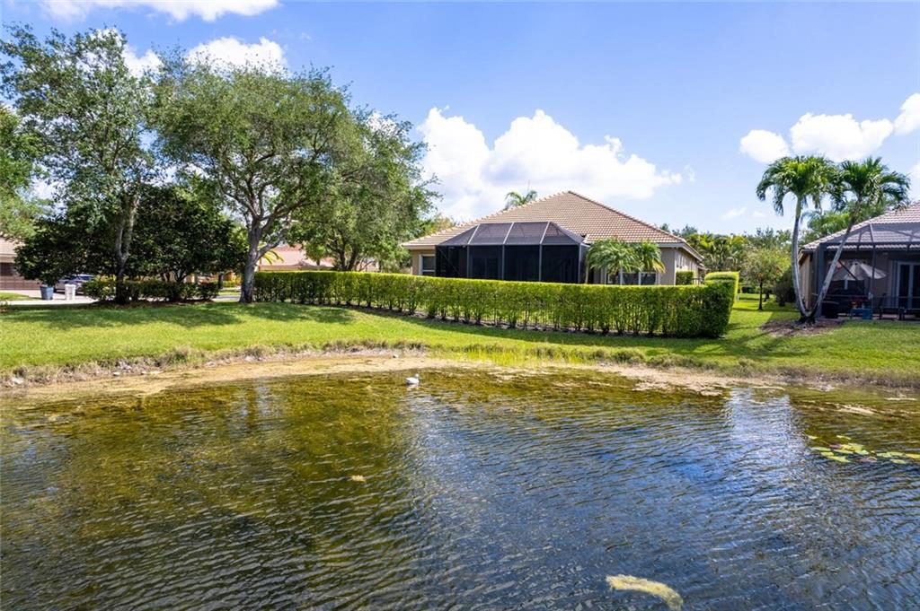 Boasting a .26 acre, corner, lakefront location, this lovely home includes numerous desirable upgrades & amenities. The stunning, updated kitchen features gorgeous wood cabinets, granite counter tops, huge center island, high-quality built-in appliances (dbl. ovens), and an amazing, custom pantry. The split bedroom--master bedroom & bath adjacent to 2nd bedroom with full bath and 3rd & 4th bedroom w/jack & jill bath on opposite side offers perfect design. Additional outstanding features include: custom built-in library/office in 2nd bedroom; tile floors in main living area & wood-look laminate in bedrooms; screen-enclosed, paver patio; fenced backyard, and 2019 roof, plus accordion hurricane shutters! Community pool, clubhouse, fitness center, tennis, 24-hour guard and more!