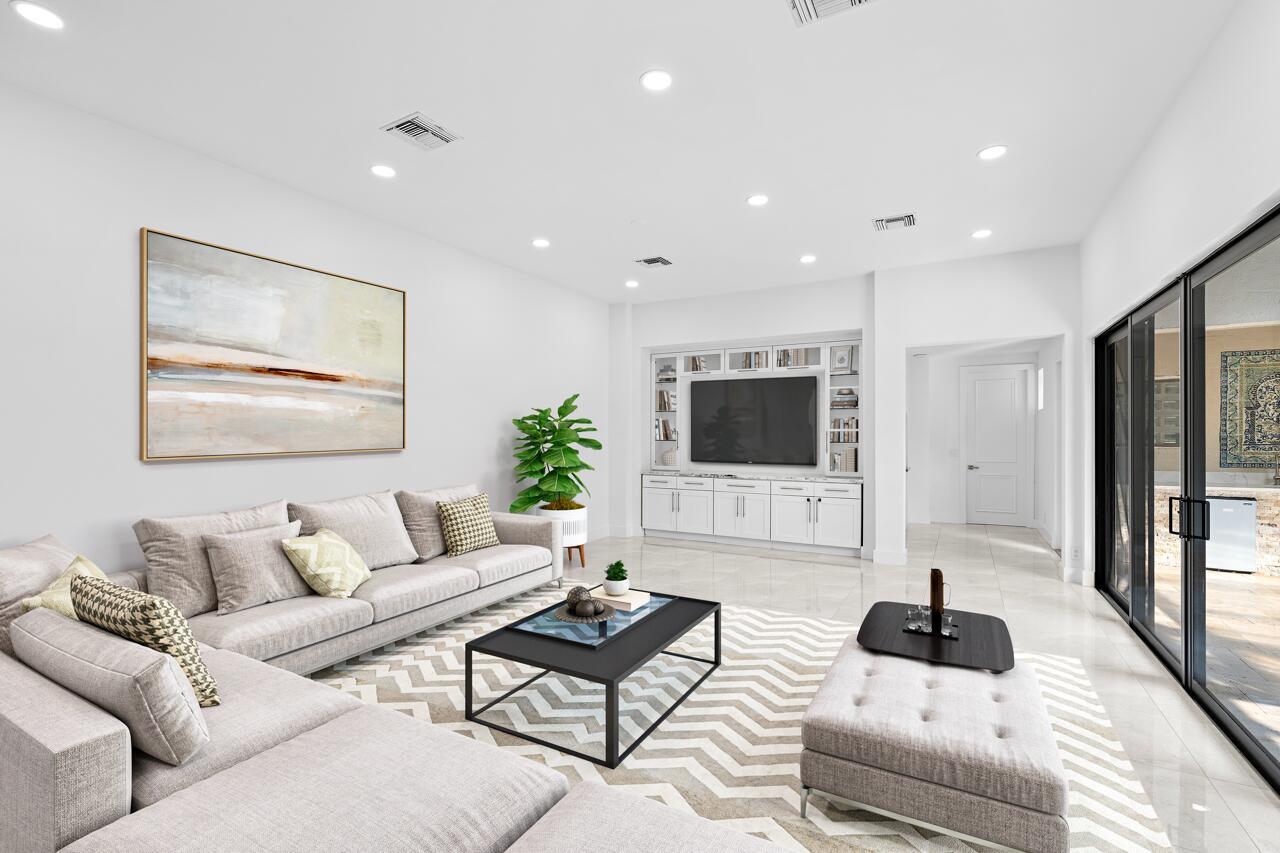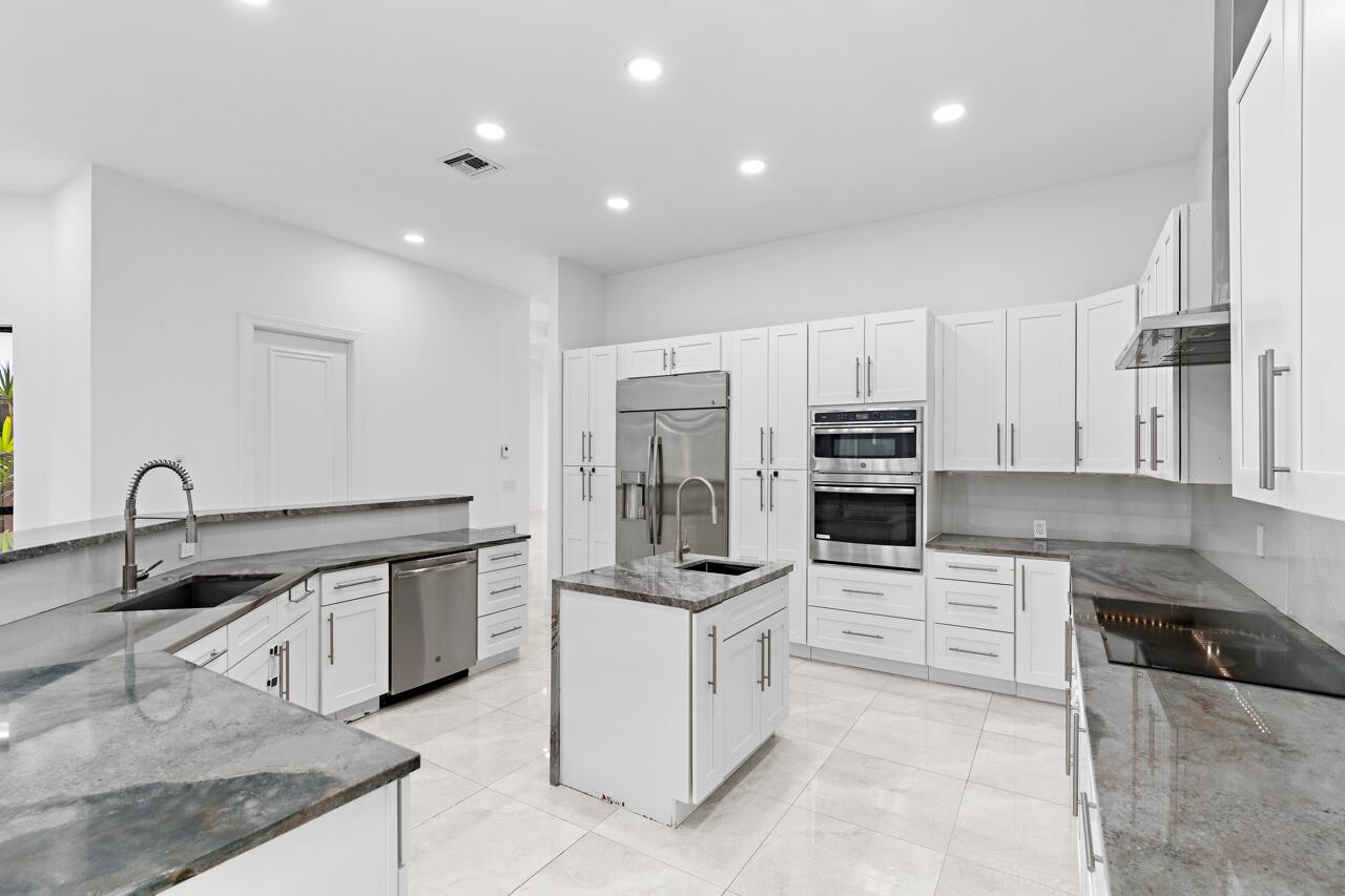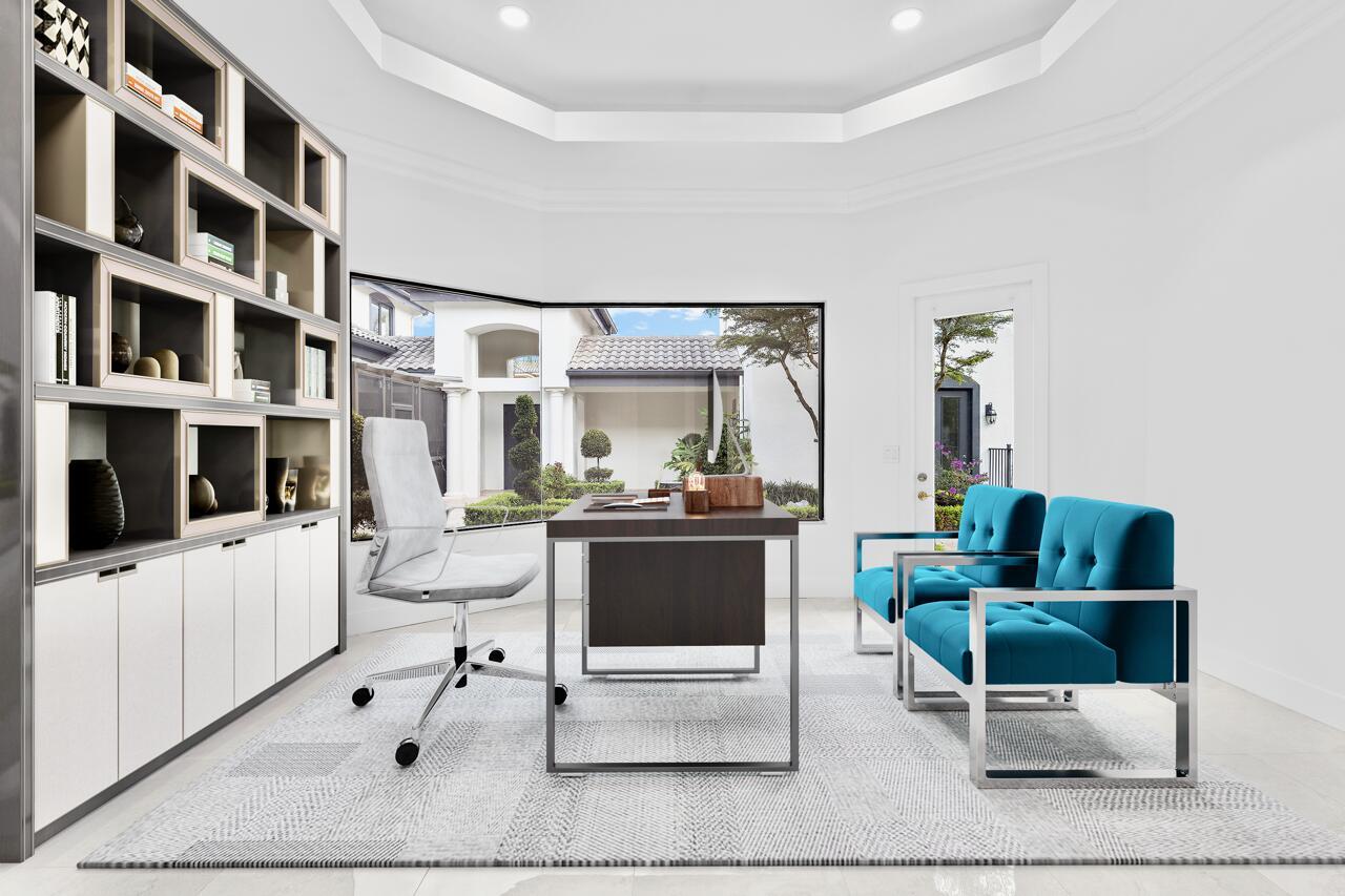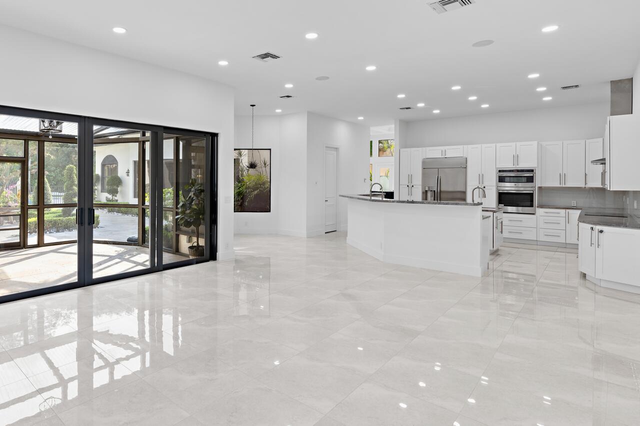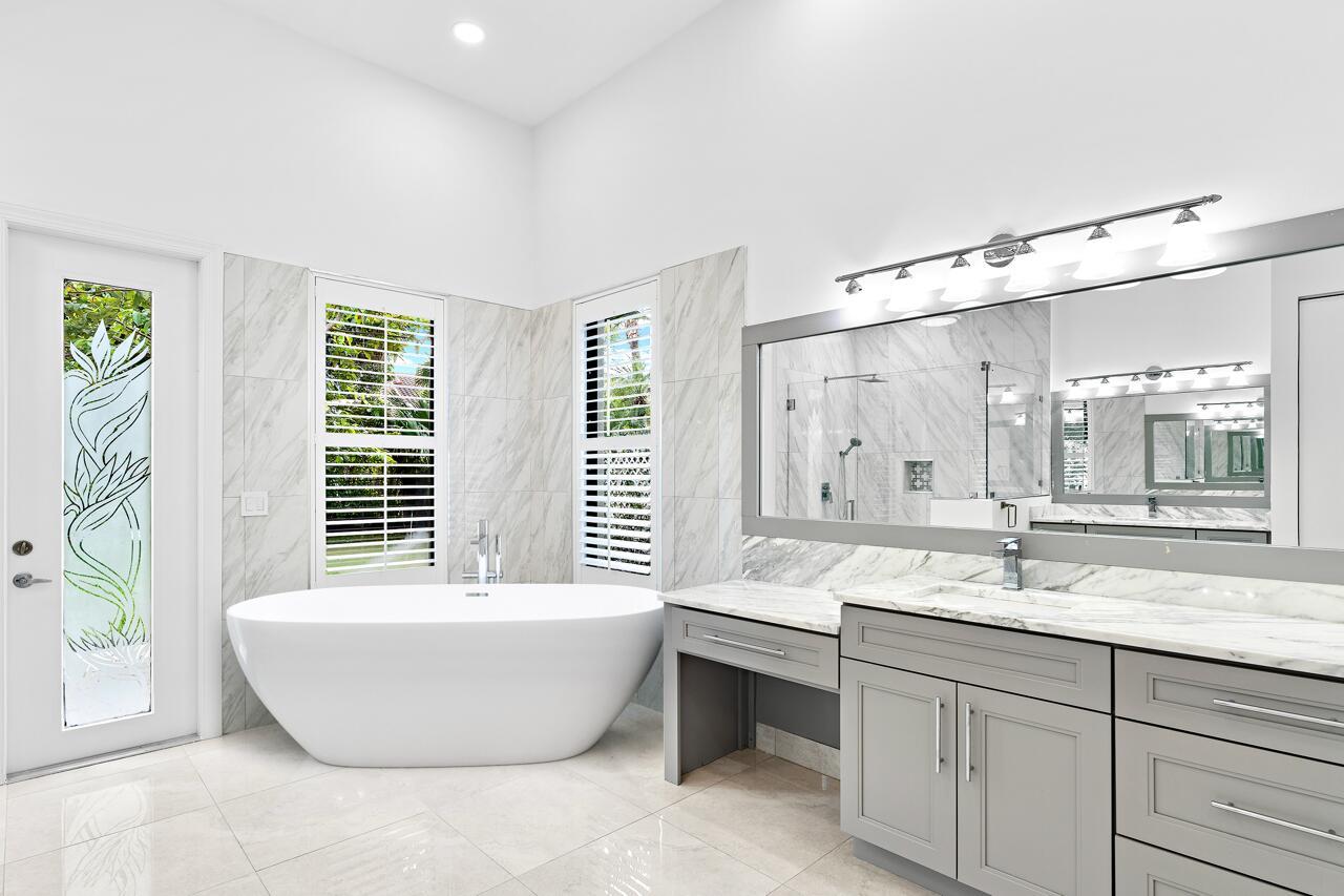 This exquisite home is located in the Boca Pointe Country Club estate section of El Dorado. The property is in pristine condition and ready for immediate occupancy. It is located in the heart of Boca Raton, within one of Palm Beach County's top-rated school districts. The home is situated on a double lot, providing a resort-style living experience. The open floor plan features a first-floor primary suite with a sprawling master bathroom and oversized dual walk in closets. The main house has three bedrooms and three-and-a-half baths, an office and a spacious formal living room with 20 foot ceilings allowing ample ambient light to stream in through every window. The generous guest house includes two bedrooms, three baths, a kitchen, and a family room. This home is perfect for entertaining...
