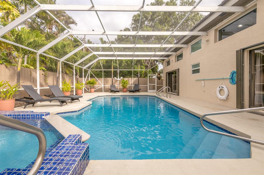 Stunning Boca Raton Beach property. This is an opportunity to own the perfect paradise or own an income-producing property with tremendous upside. This renovated spacious pool home boasts 10ft ceilings, screened patio and detached lanai, and steps to the beach. Enjoy entertaining & cooking in this beautiful open kitchen with lots of storage, granite countertops & stainless steel appliances overlooking relaxing heated pool & patio. All bedrooms are very spacious and each has its own updated bathroom. Very elegant wood look floors throughout most of the home. You will know you are home instantly as you walk the grounds listening to the waves in the background and breathing in the fresh ionized air delivered by Mother Nature herself. Private gates, stately grounds, and a warm flow throughout