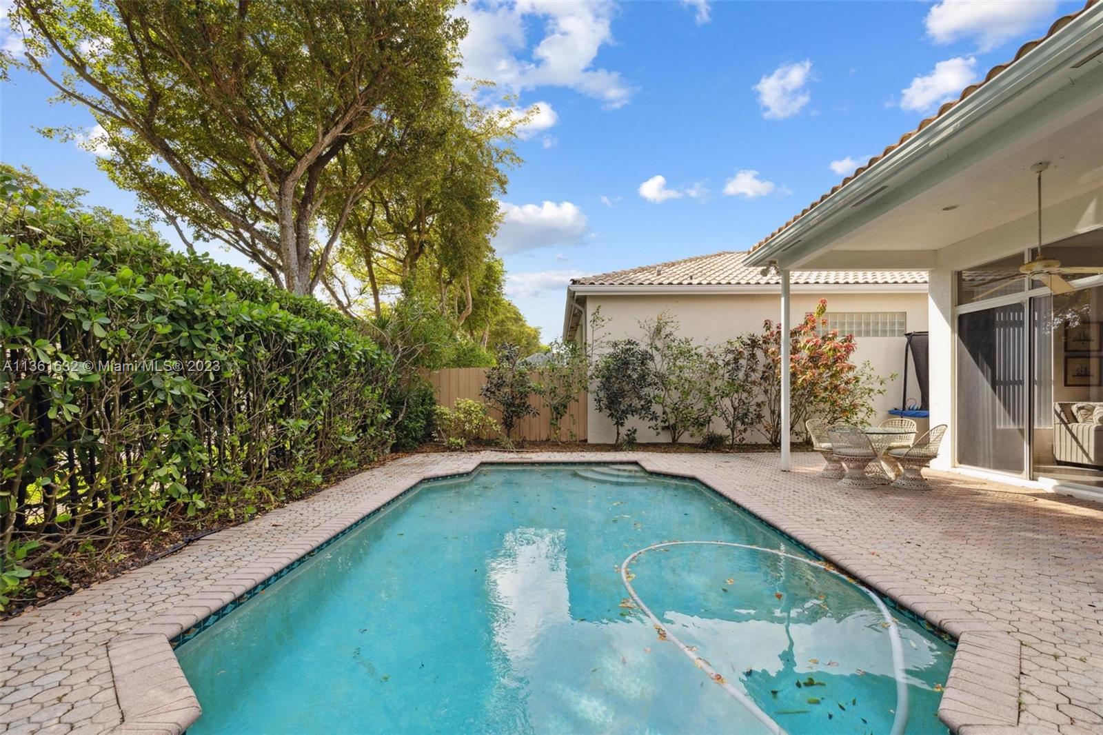 The Banyans is a priv, guard-gated enclave of single family houses within Broken Sound C.C~ This immaculate, open 2,393 SF home has 3 spacious bdrms + 3 full bathrs~ Volume ceilings thru-out + x-large windows lend a sunny ambiance to the home~Large neutral ceramic tiles on the diag, cover the living areas~ BRAND NEW ROOF with 30 Yr Warranty~ The Kitch has stainless appli + granite cntrs~ There is a cntr island + all bottom Cabinet drawers are pull-out~The pool is adjacent to a shaded Lanai+ is surrounded by thick greenery for privacy~ This pet friendly, treelined neighborhood welcomes you to walk + mingle with your neighbors~ There is a large community pool + tot lot exclusively for the Banyans~The home is totally wired for ADT Security + has central vac system~ Membership Fee is $90,000.