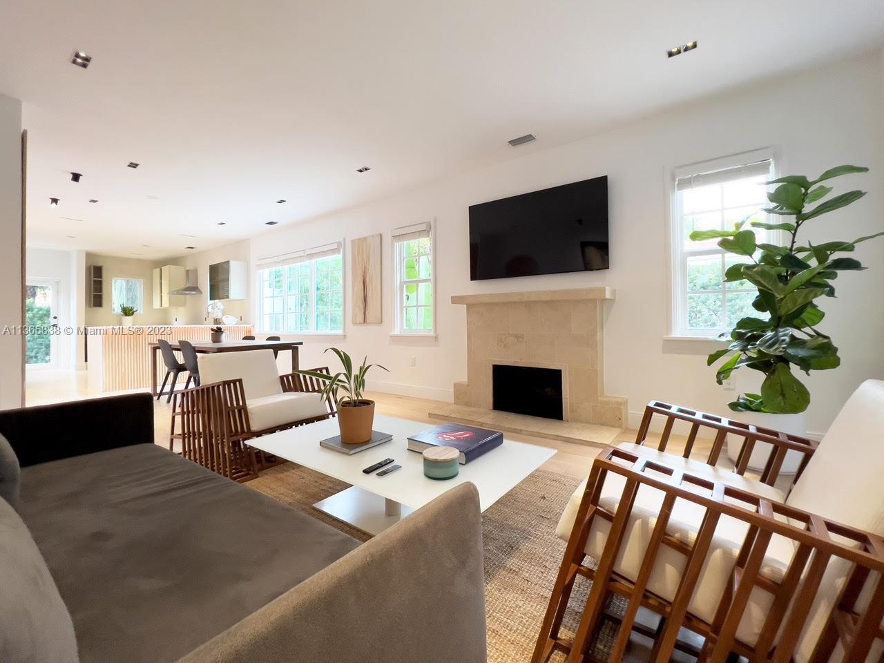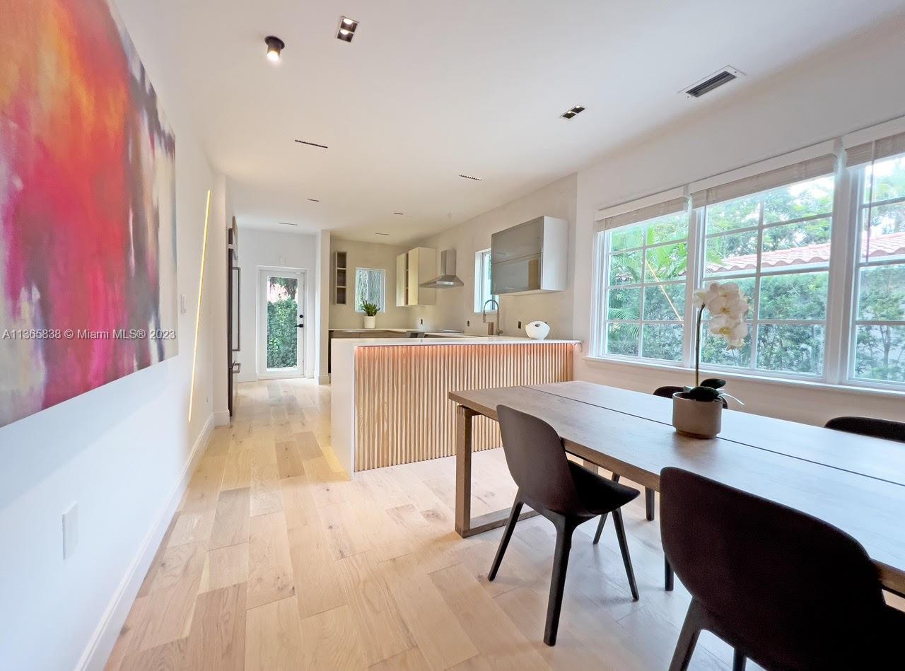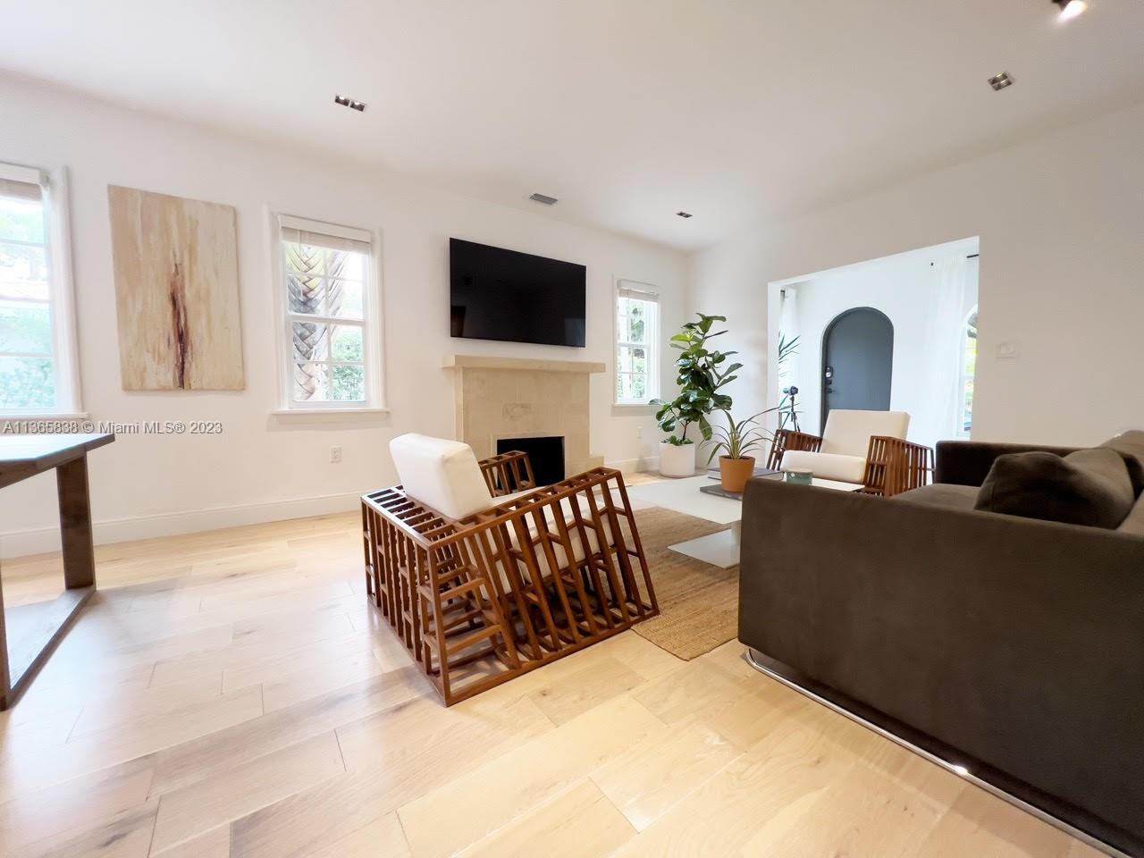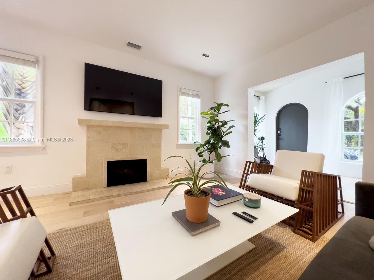 A beautifully updated Old Spanish charmer moments from Granada Golf Course and downtown Coral Gables. With 3 bedrooms, 2 bathrooms in the main house, third room perfect for office with garden view plus a spacious 1 bedroom/1 bathroom guest cottage. Features a large Foyer with wood ceiling beams, natural lighting throughout the home, open floor plan, large living room with fireplace, dining room, that connects to a beautiful Italian kitchen with quartz waterfall counter, high end appliances and gallery lighting. New engineered solid wood flooring throughout the home. An ample backyard for family entertainment. Tesla charging station. Home furnished or unfurnished. New Barrel Roof (March 2023).This gem is move-in Ready, schedule a private tour today! Seller motivated!