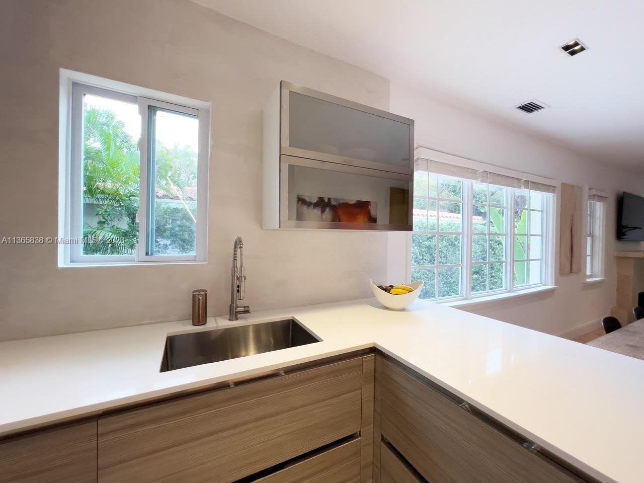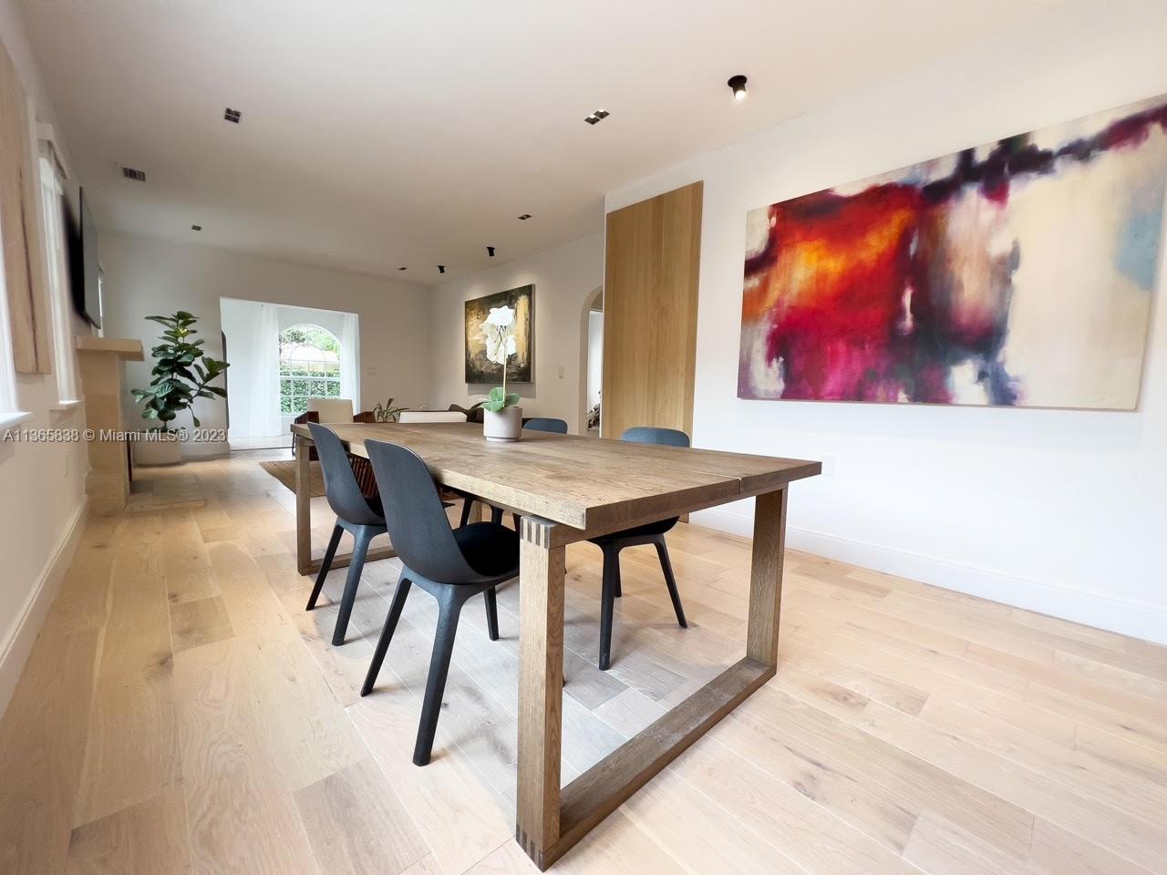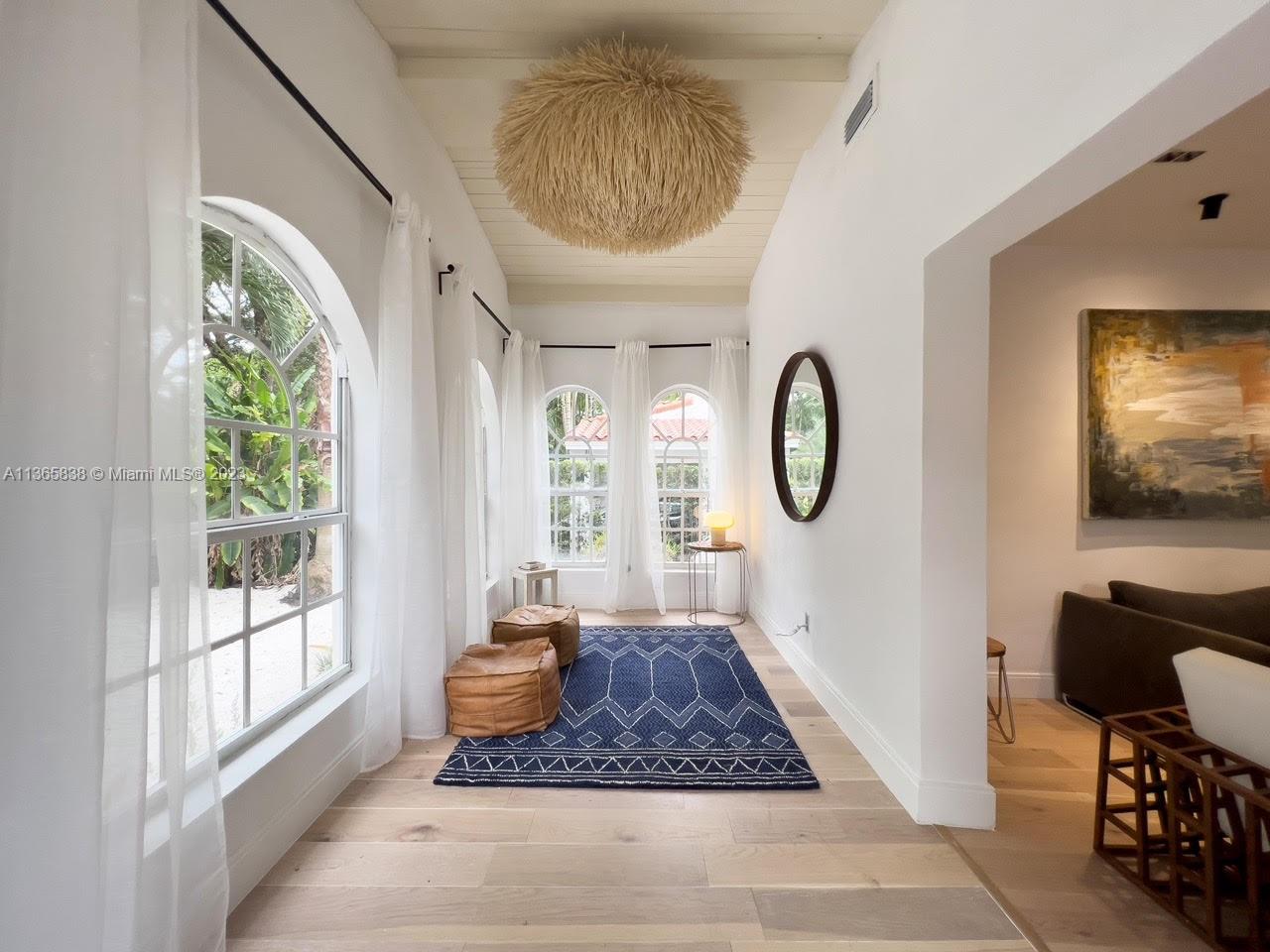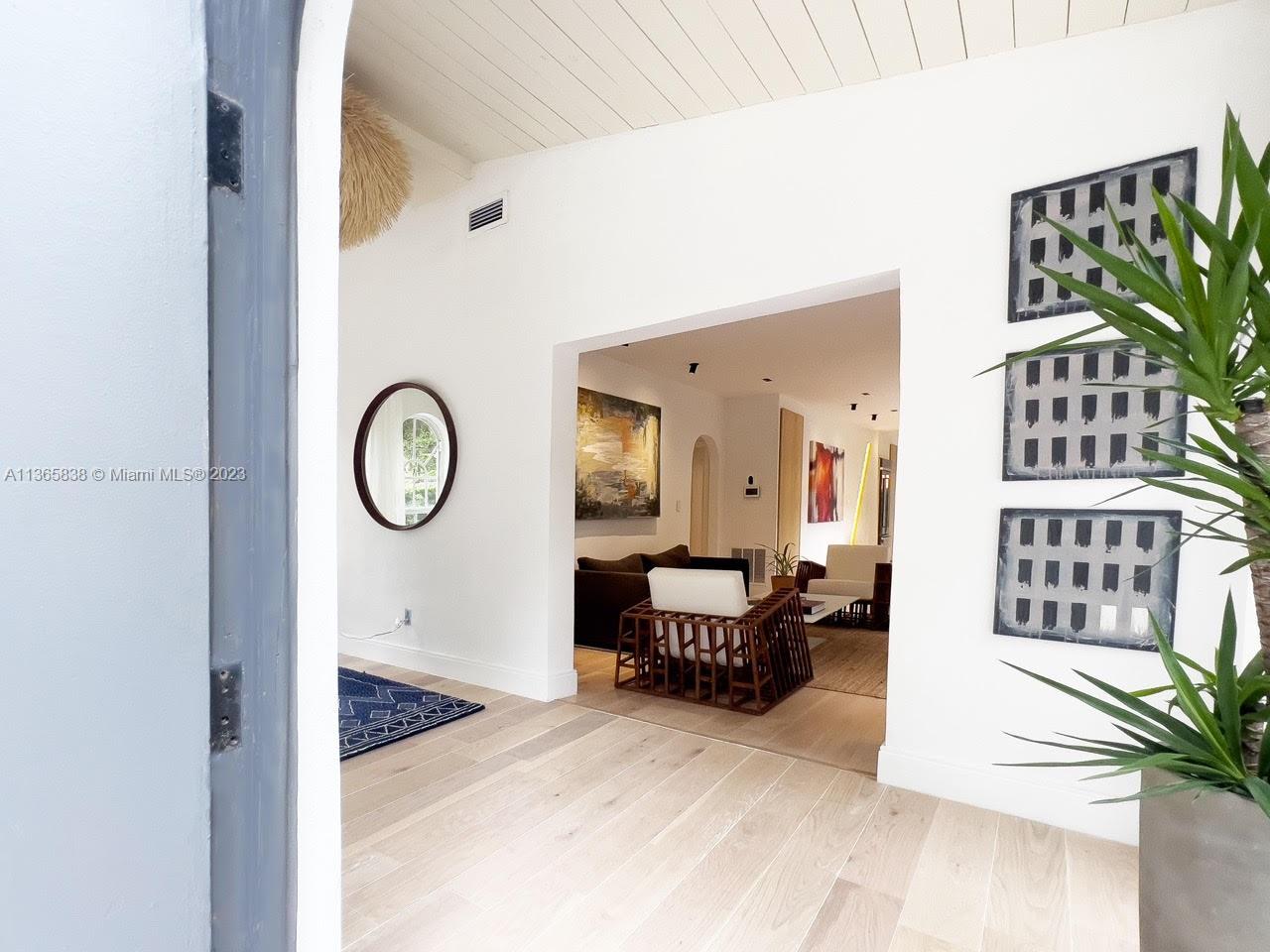A beautifully updated Old Spanish charmer moments from Granada Golf Course and downtown Coral Gables. With 3 bedrooms, 2 bathrooms in the main house, third room perfect for office with garden view plus a spacious 1 bedroom/1 bathroom guest cottage. Features a large Foyer with wood ceiling beams, natural lighting throughout the home, open floor plan, large living room with fireplace, dining room, that connects to a beautiful Italian kitchen with quartz waterfall counter, high end appliances and gallery lighting. New engineered solid wood flooring throughout the home. An ample backyard for family entertainment. Tesla charging station. Home furnished or unfurnished. New Barrel Roof (March 2023).This gem is move-in Ready, schedule a private tour today! Seller motivated!