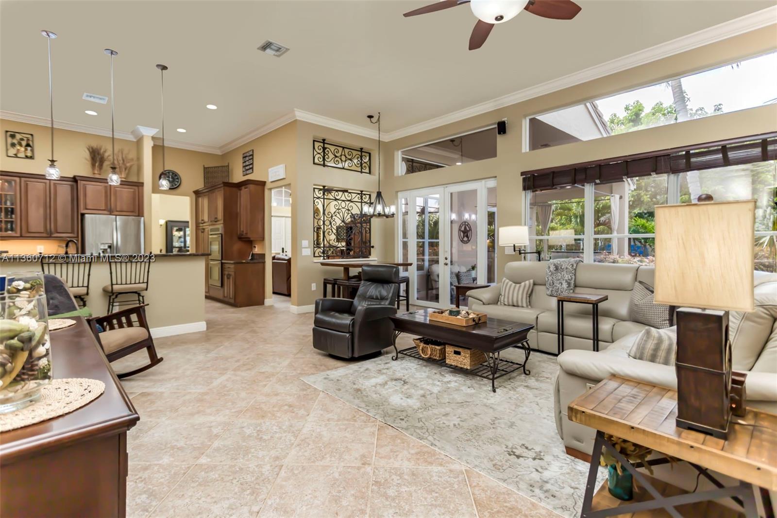 STUNNING FIVE BEDROOM, THREE BATHROOM, THREE CAR GARAGE, ONE STORY HOME W/SPECTACULAR LAKE VIEWS IN THE RESORT STYLE COMMUNITY OF SUNSET LAKES! THIS HOME FEATURES TILE FLOORING IN THE MAIN LIVING AREAS, CROWN MOLDING AND BEAUTIFUL CHANDELIERS. THE LARGE KITCHEN IS COMPLETE W GRANITE COUNTERTOPS, WOOD CABINETRY AND NEWER PROFESSIONAL-GRADE STAINLESS STEEL APPLIANCES. THE LARGE MASTER SUITE FEATURES SUBSTANTIAL HIS/HERS WALK-IN CLOSETS. THE MASTER SUITE PROVIDES DIRECT ACCESS TO THE PATIO THROUGH SPACIOUS FRENCH DOORS. THE LARGE COVERED PATIO OVERLOOKING THE LAKE IS GREAT FOR ENTERTAINMENT. THE BACKYARD IS PRIVATE AND HAS LOTS OF SPACE FOR A POOL.