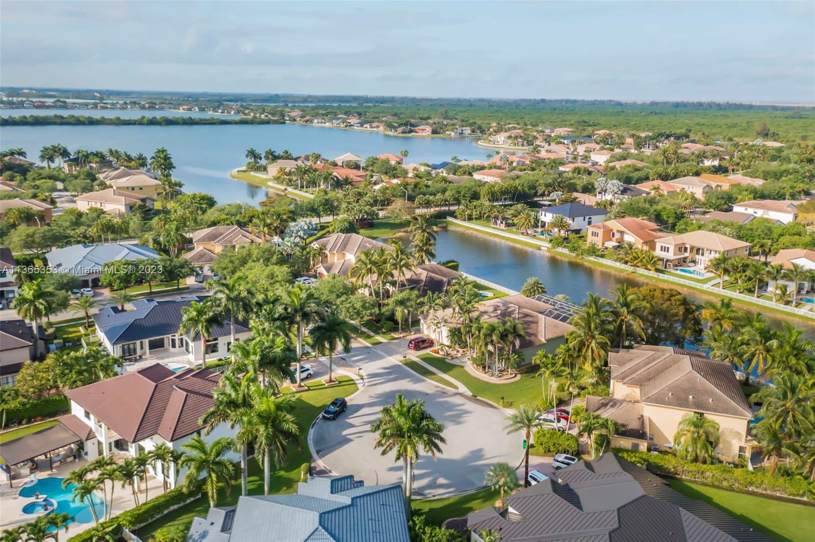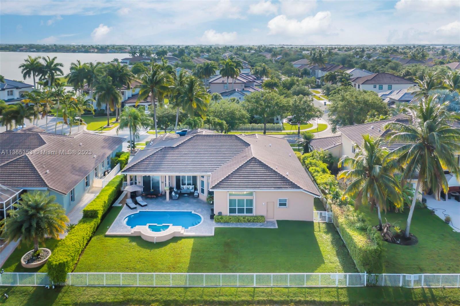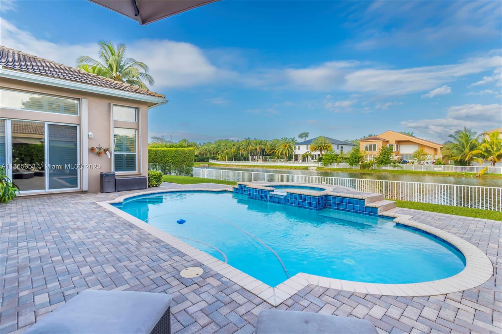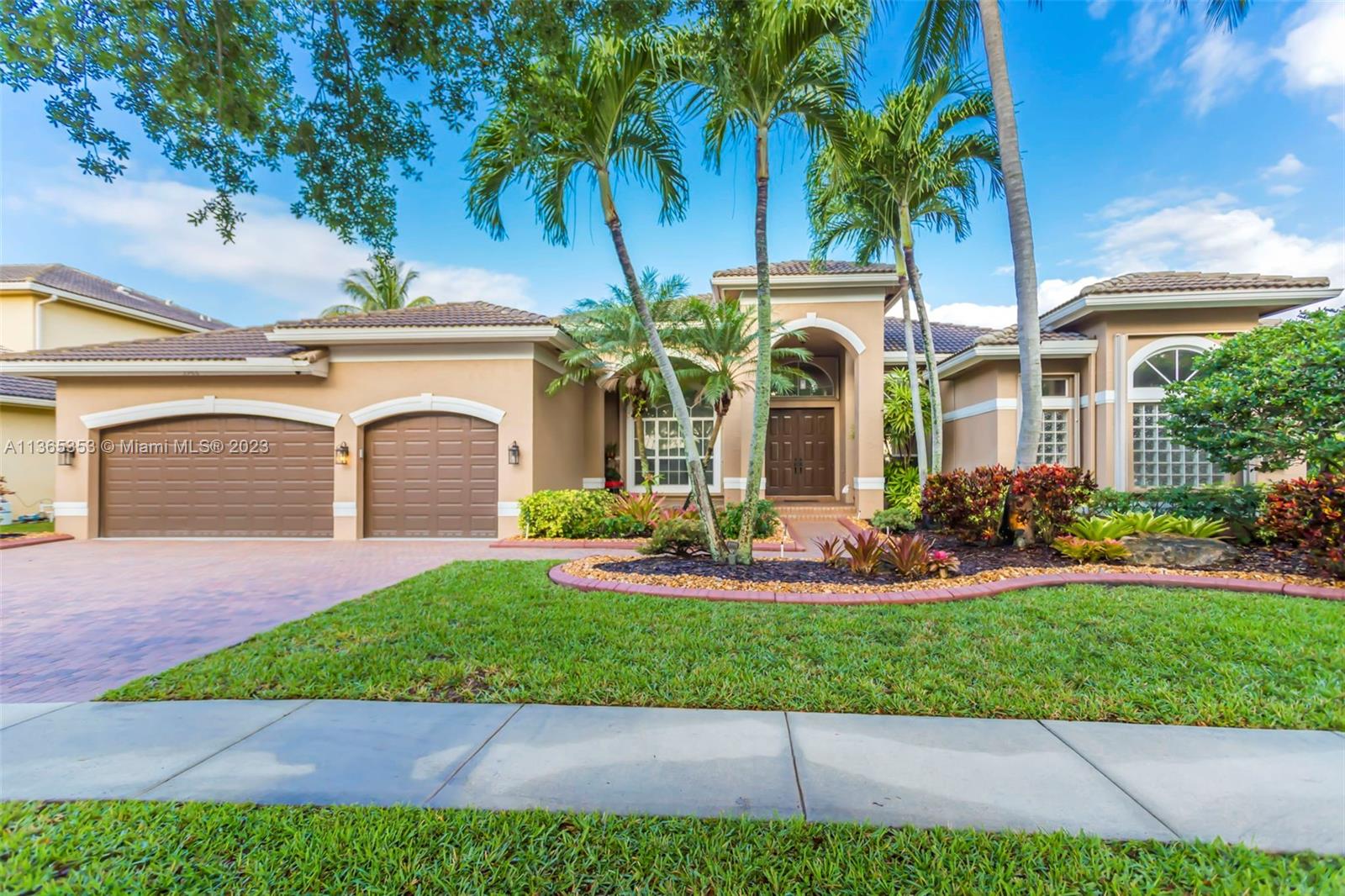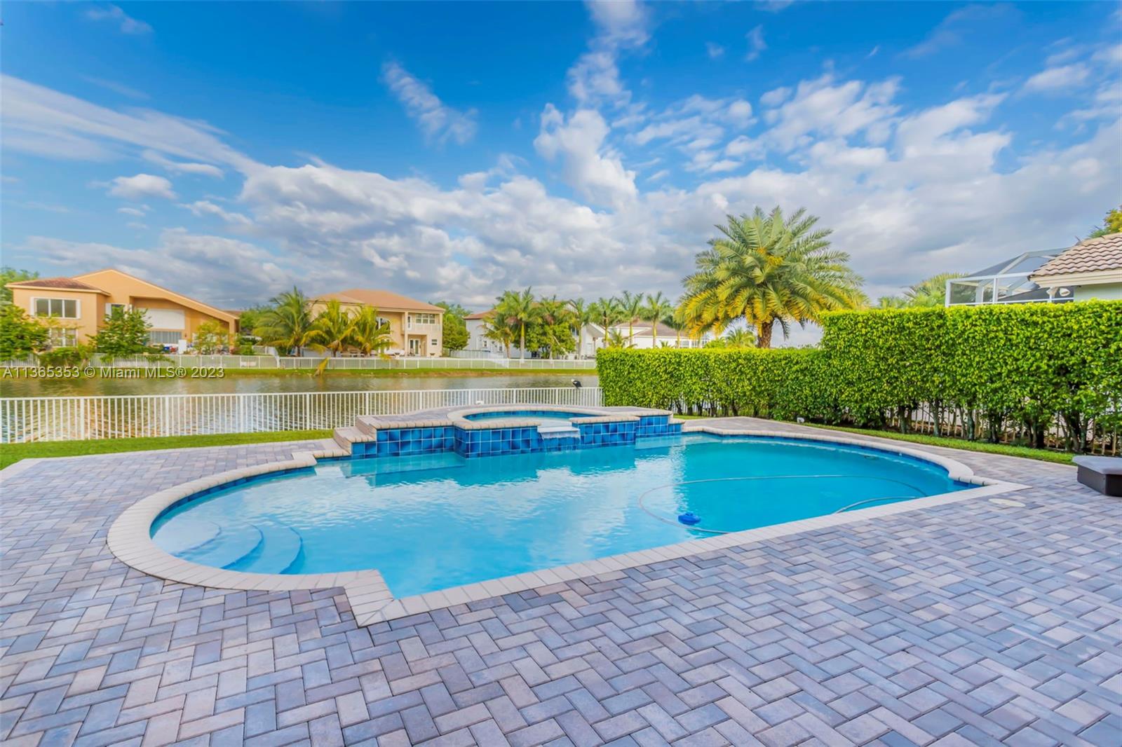 Stunning home in the sought after guard gated section of Majestic Falls in Sunset Lakes. This highly desired Caliterra model is privately located on a cul de sac street w no thru traffic.Its amazing lush landscaping awaits you. Interior features an abundance of natural light, plantation shutters, & new flooring throughout.The kitchen boasts all GE SS appliances, a snack bar & a breakfast nook. Butlers pantry located off of the dining room. Primary suite features 2 large walk-in closets & sliding doors that open to stunning lake views. Pavered Patio is complete w a covered area including a TV & speakers, perfect for entertaining.The beautifully resurfaced freeform pool includes a spa. Lots of greenery for kids & pets Brand new epoxy flooring in garage.Standby Interior photos coming soon.