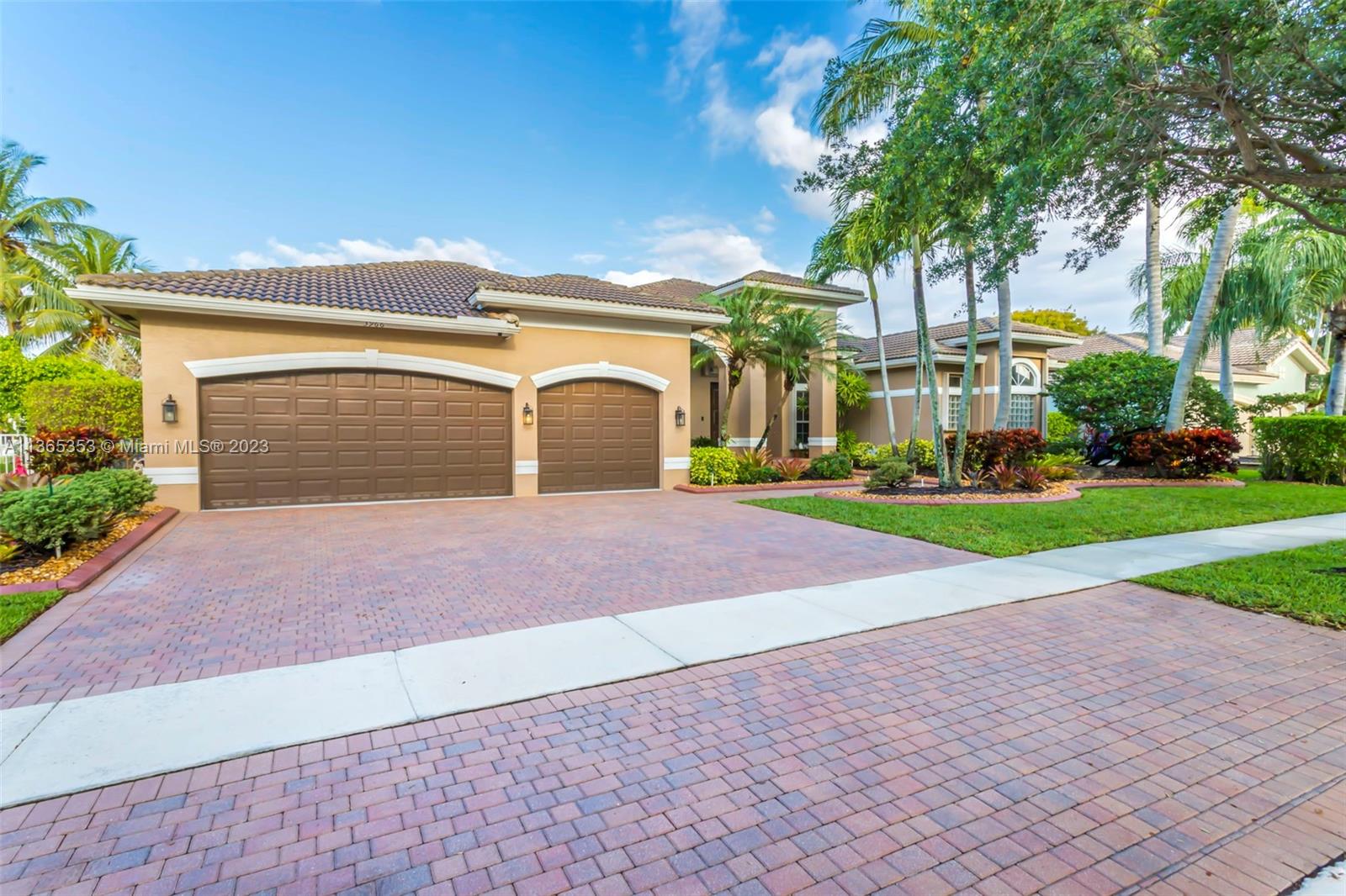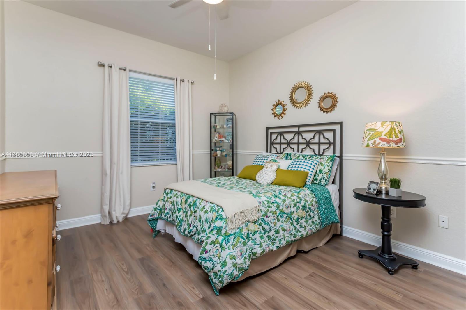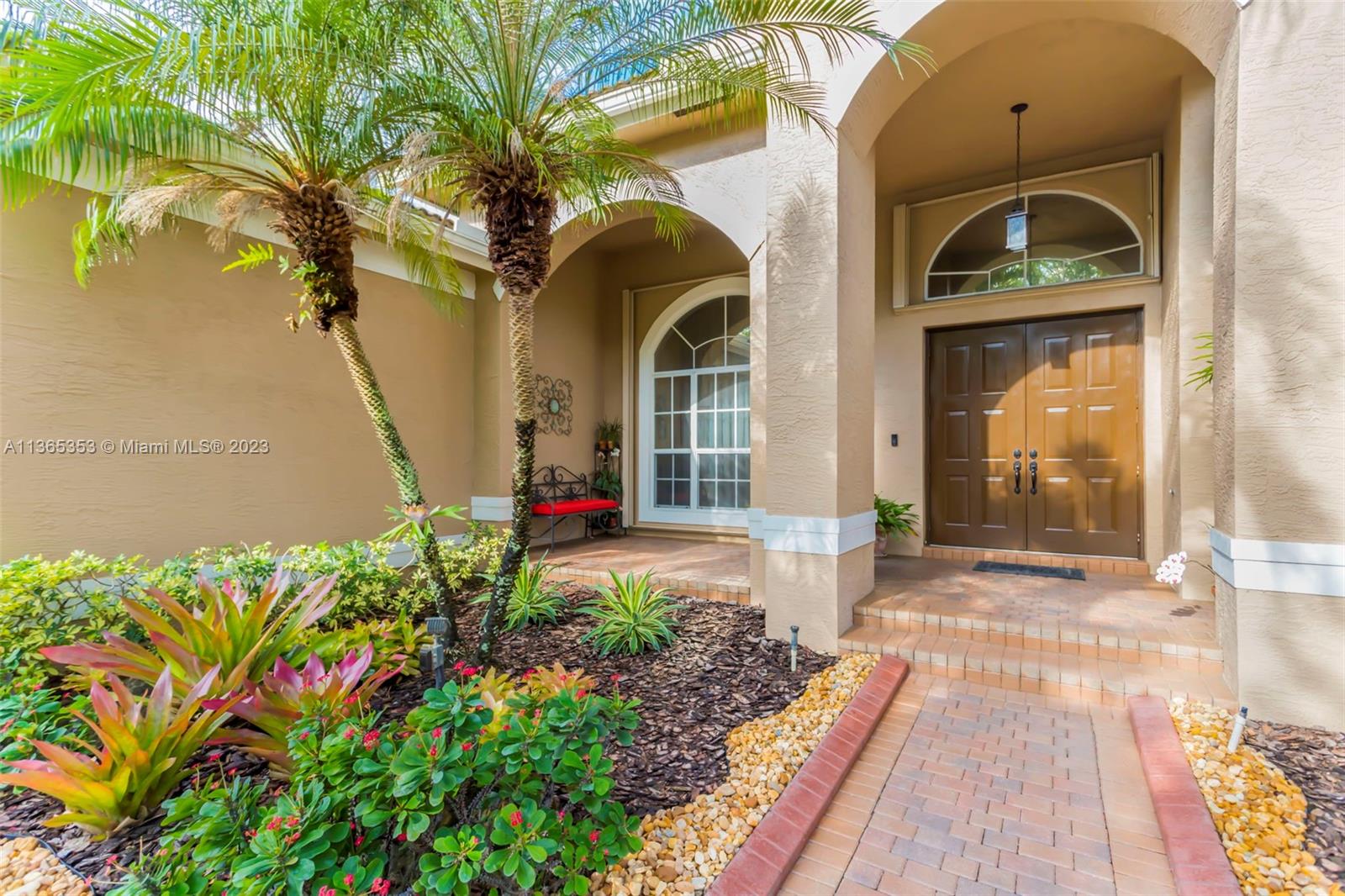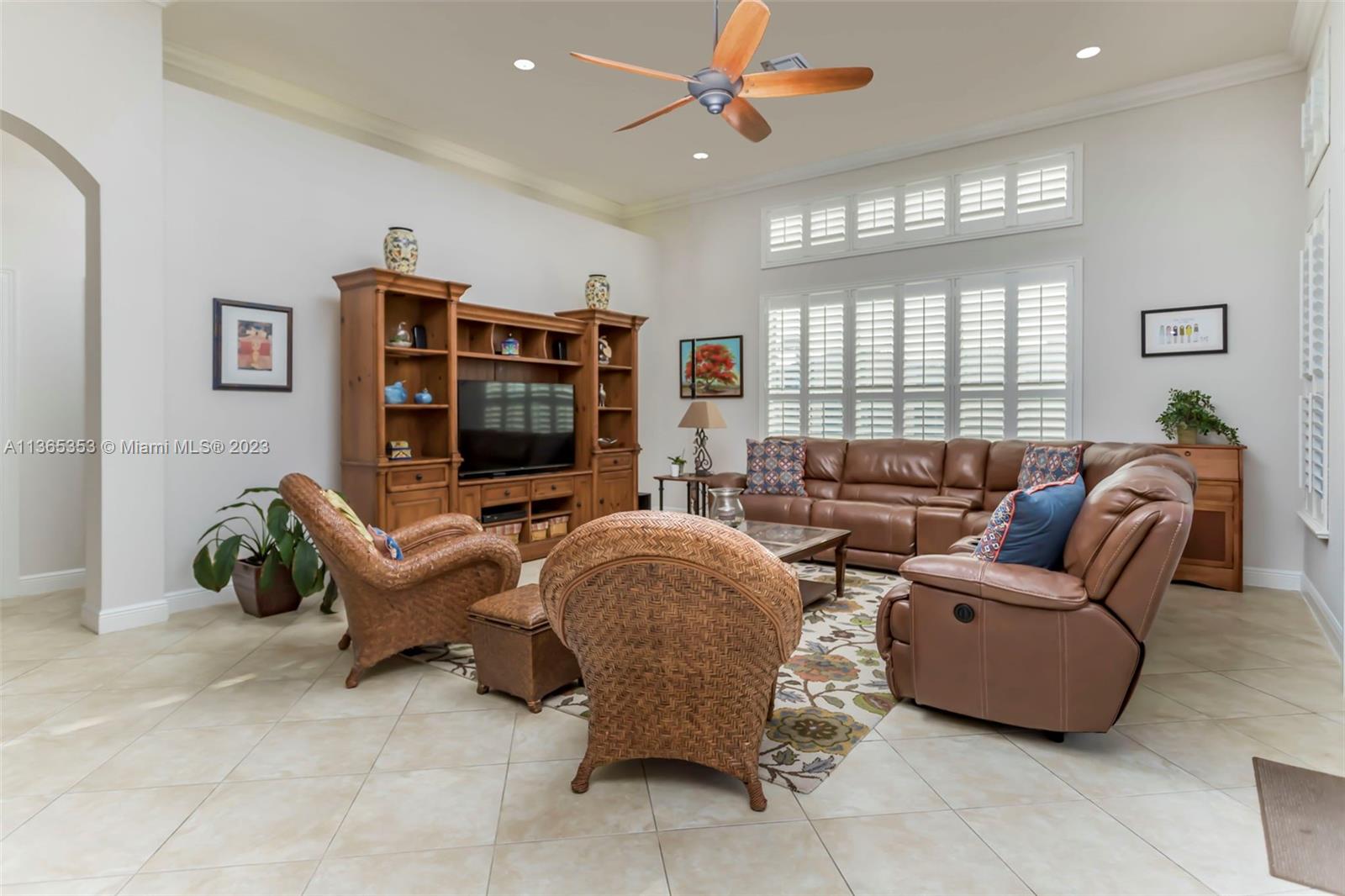 Stunning home in the sought after guard gated section of Majestic Falls in Sunset Lakes. This highly desired Caliterra model is privately located on a cul de sac street w no thru traffic.Its amazing lush landscaping awaits you. Interior features an abundance of natural light, plantation shutters, & new flooring throughout.The kitchen boasts all GE SS appliances, a snack bar & a breakfast nook. Butlers pantry located off of the dining room. Primary suite features 2 large walk-in closets & sliding doors that open to stunning lake views. Pavered Patio is complete w a covered area including a TV & speakers, perfect for entertaining.The beautifully resurfaced freeform pool includes a spa. Lots of greenery for kids & pets Brand new epoxy flooring in garage.Standby Interior photos coming soon.