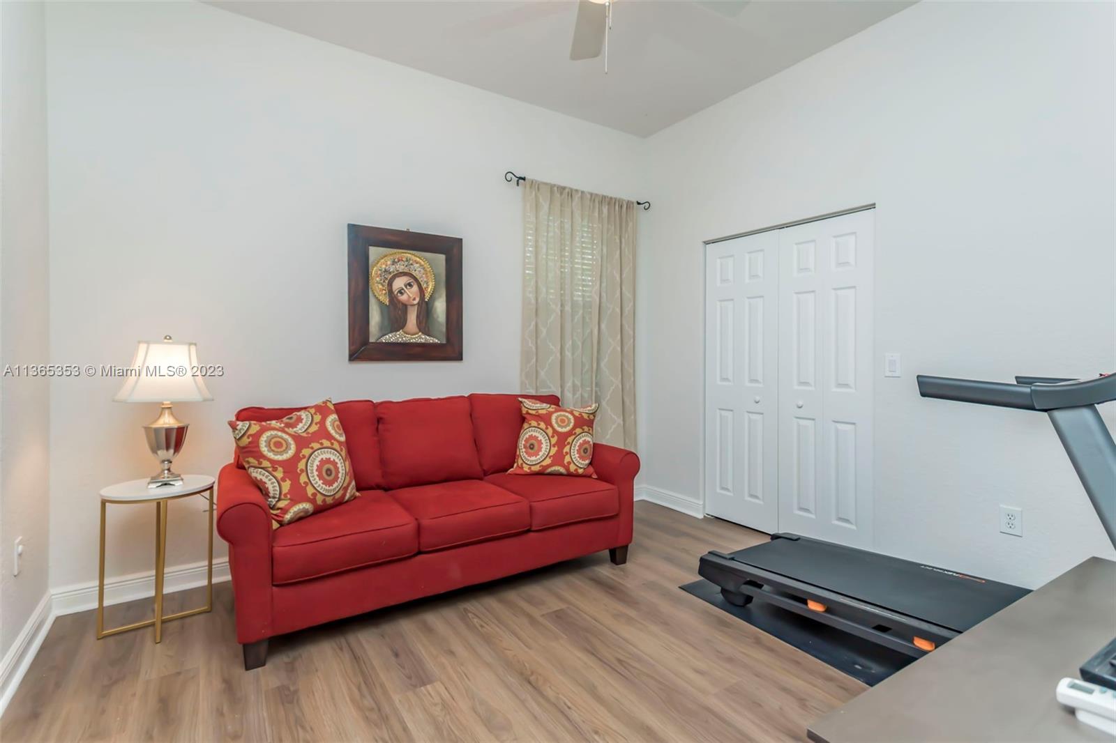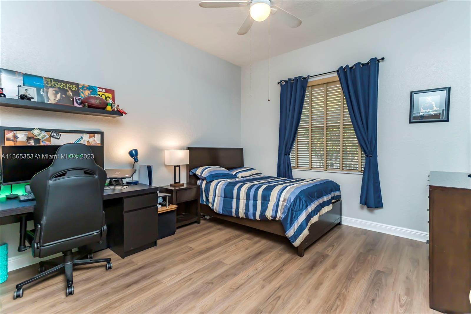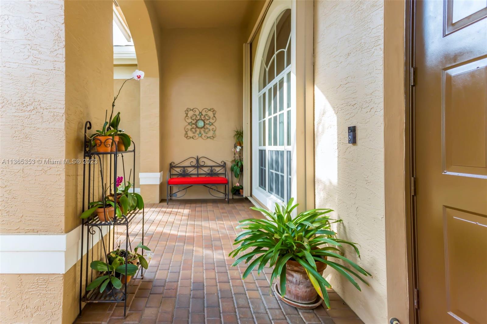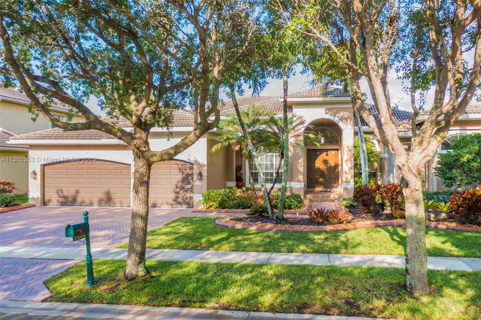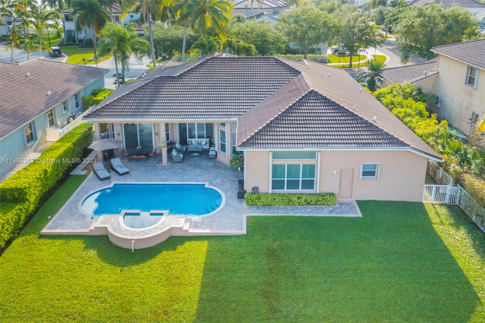 Stunning home in the sought after guard gated section of Majestic Falls in Sunset Lakes. This highly desired Caliterra model is privately located on a cul de sac street w no thru traffic.Its amazing lush landscaping awaits you. Interior features an abundance of natural light, plantation shutters, & new flooring throughout.The kitchen boasts all GE SS appliances, a snack bar & a breakfast nook. Butlers pantry located off of the dining room. Primary suite features 2 large walk-in closets & sliding doors that open to stunning lake views. Pavered Patio is complete w a covered area including a TV & speakers, perfect for entertaining.The beautifully resurfaced freeform pool includes a spa. Lots of greenery for kids & pets Brand new epoxy flooring in garage.Standby Interior photos coming soon.