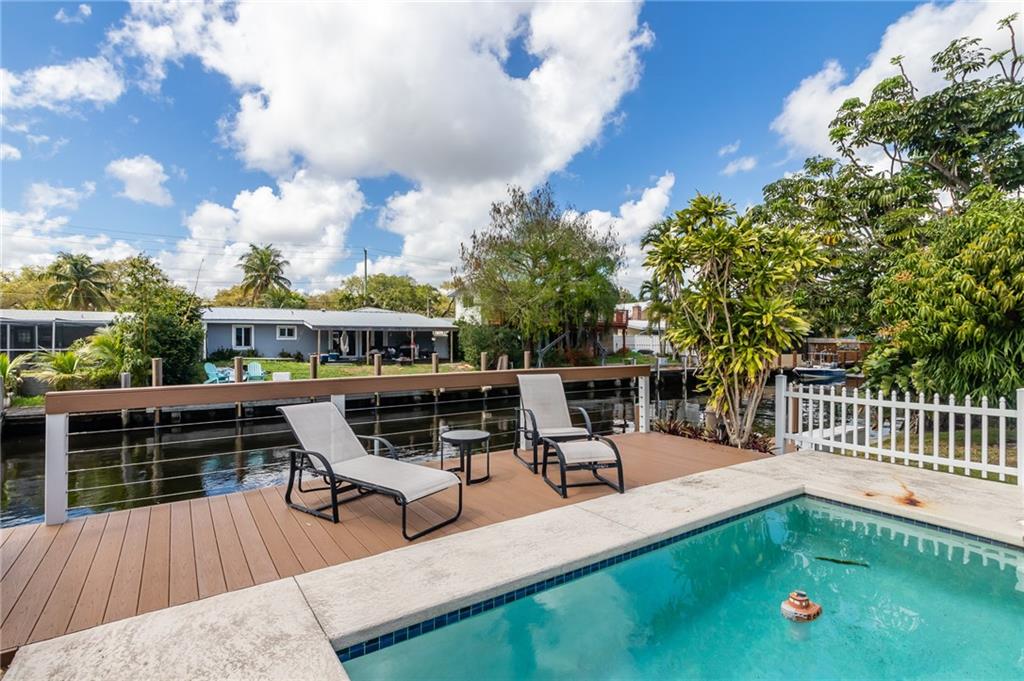 Shady Banks waterfront pool (heated) home. 60' of ocean access waterfront, no fixed bridges & a private dock for your boat. Large sunny pool deck, great for entertaining or sunbathing. Vaulted, wood plank & beamed ceilings creates that Key West feel. Kitchen includes an island w/ seating, stainless appl, granite countertops & custom backsplash. Updated bath, new flooring, impact windows/doors & a metal roof (2019) completes the package! Shady Banks is one of the best neighborhoods & locations in Ft Lauderdale w/ 2 parks one with over 5 acres including volleyball, tennis, basketball courts, baseball diamond, jogging trails, kids play area. Another park directly on the New River w nature trails. 1.8 Miles to downtown, 3 miles to the beach and 2 miles to Ft Lauderdale Airport.
