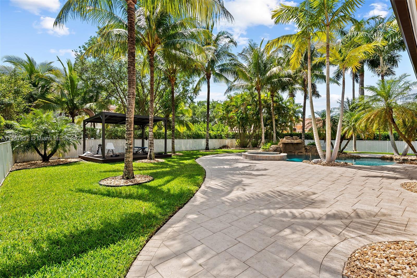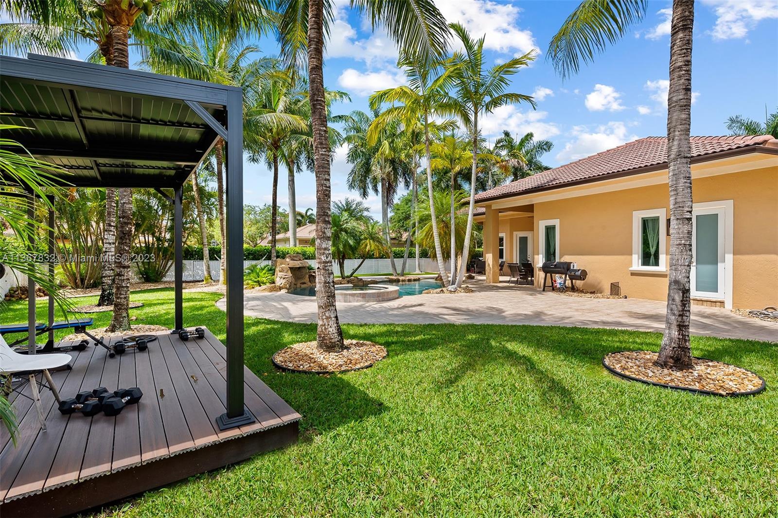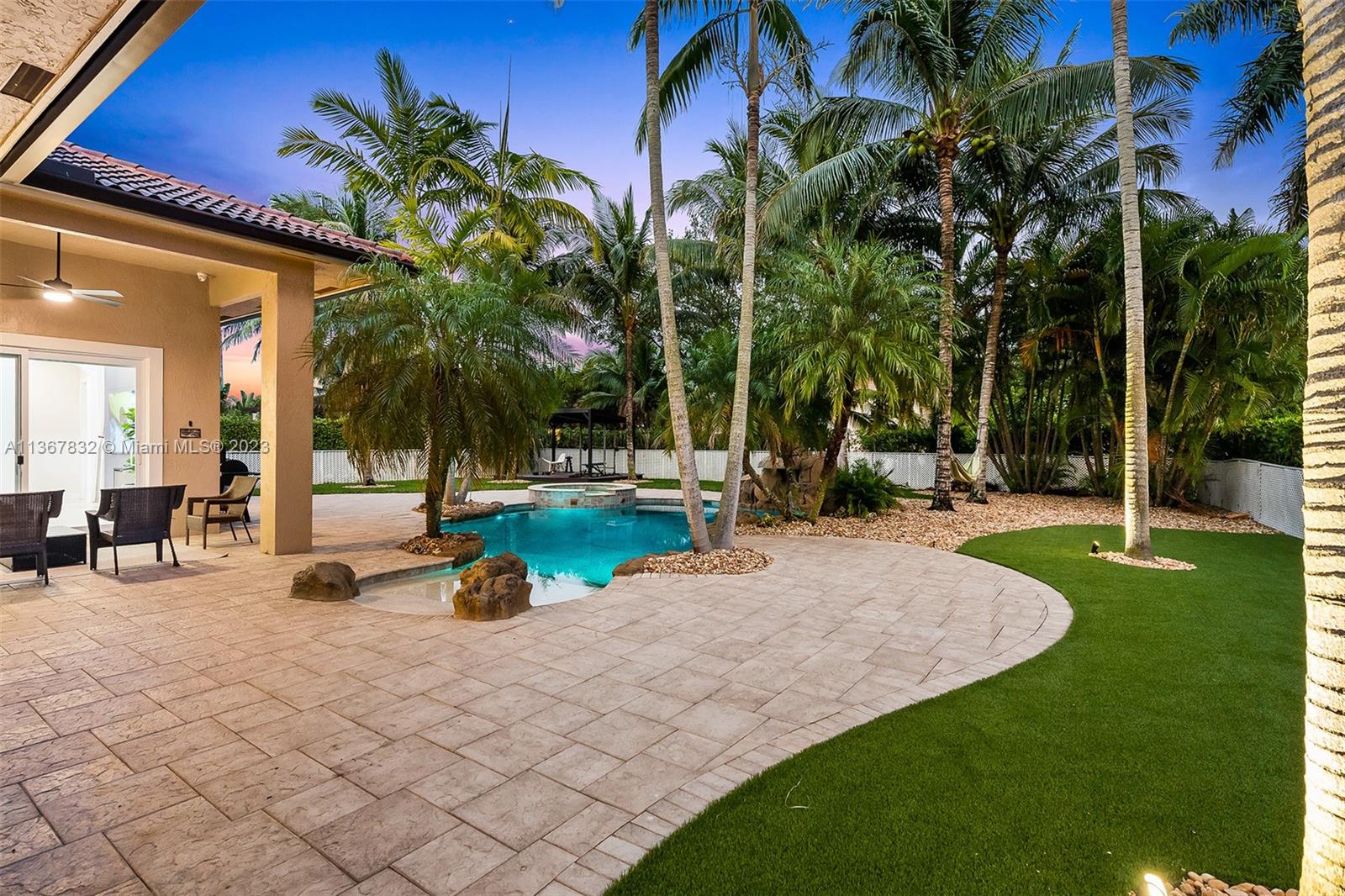 Welcome to the most upgraded home in the gated community of Wyndham Lakes! This gorgeous home received a full renovation with $250k+ in upgrades. Lush landscaping with landscape lighting throughout the property. Marble floors lead you back into the impressive modern kitchen with double stack cabinets, thick quartz counters with waterfall edges, and an island oriented towards the great room. The great room is centered around a custom built-in floor to ceiling marble fireplace surround. Sliding doors lead out to a large lanai and a massive backyard with a pool & spa, turf and a gazebo, perfect for an outdoor gym setup. Upgraded bathrooms with frameless shower glass are sure to impress. New hurricane impact doors and windows throughout, new AC & water heater. Wood floors in all bedrooms.