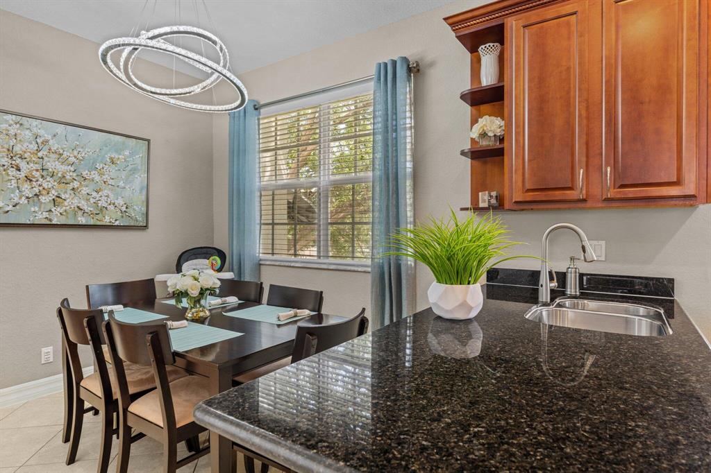 Beautiful 3 story townhouse 3 Bedroom (all bedrooms on 3rd floor) 2.5 Bath features a sunny, open eat-in-kitchen (on 2nd floor) that has granite and cherry cabinets with stainless steal appliance with a lovely lake view, spacious master bedroom, master bath with dual sinks. Located on the first level is a den or at home office which could be converted to a 4th bedroom. Other notables include low HOA ($225 for pool care, lawn care, roof cleaning & gate), lease immediately, gated community, impact windows throughout, 2 car garage, pets allowed, a stroll to the nearby lake, or relax by the private community pool. New A/C & Water Heater instaled in 2022. Minutes to Town Center Mall, restaurants, shopping and the beach with easy access to I-95. A+ Rated Schools!