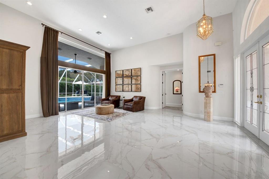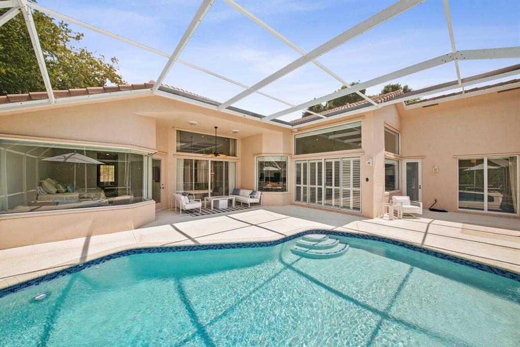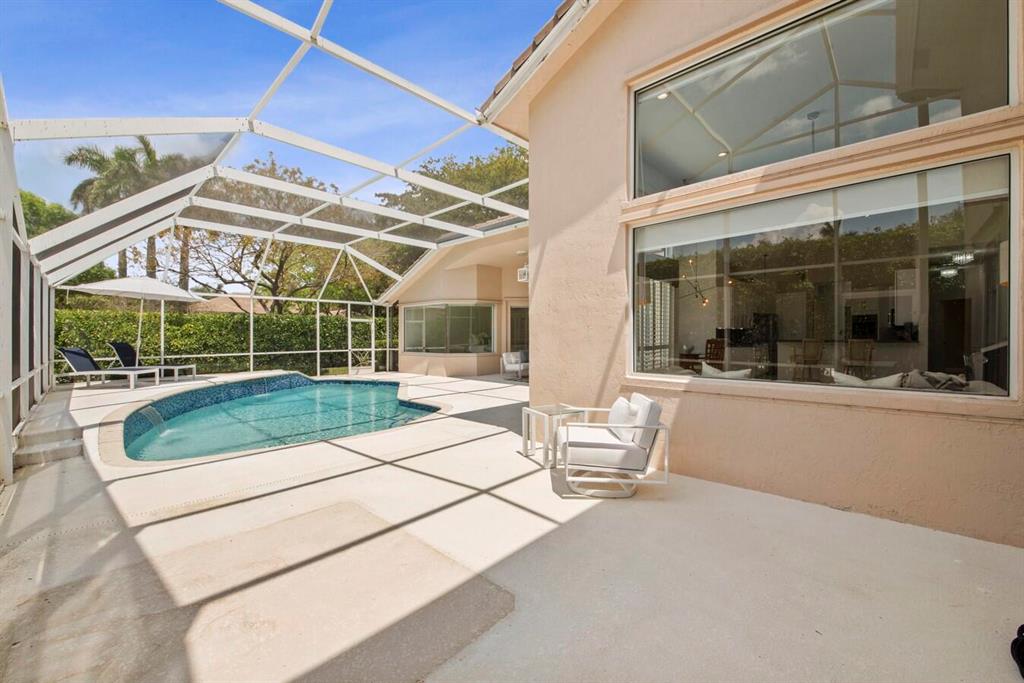 A residence of exquisite distinction awaits in this 5 bedrooms, 3 bath home, located in the Greens section of Eagle Trace a TPC non-equity premier golf community. Perfect combination of private living and easy entertaining with a formal living room dining room, family room and screen enclosed pool. Stunning dream kitchen with modern white cabinets, under cabinet lighting, granite countertops, full granite backsplash, stainless steel appliances, a snack bar and a breakfast nook. The spacious primary retreat features a double door entrance, sitting area, door to the patio and his and her walk-in closets. Luxurious primary bath provides dual sinks with granite counters, jetted tub and a walk-in shower.