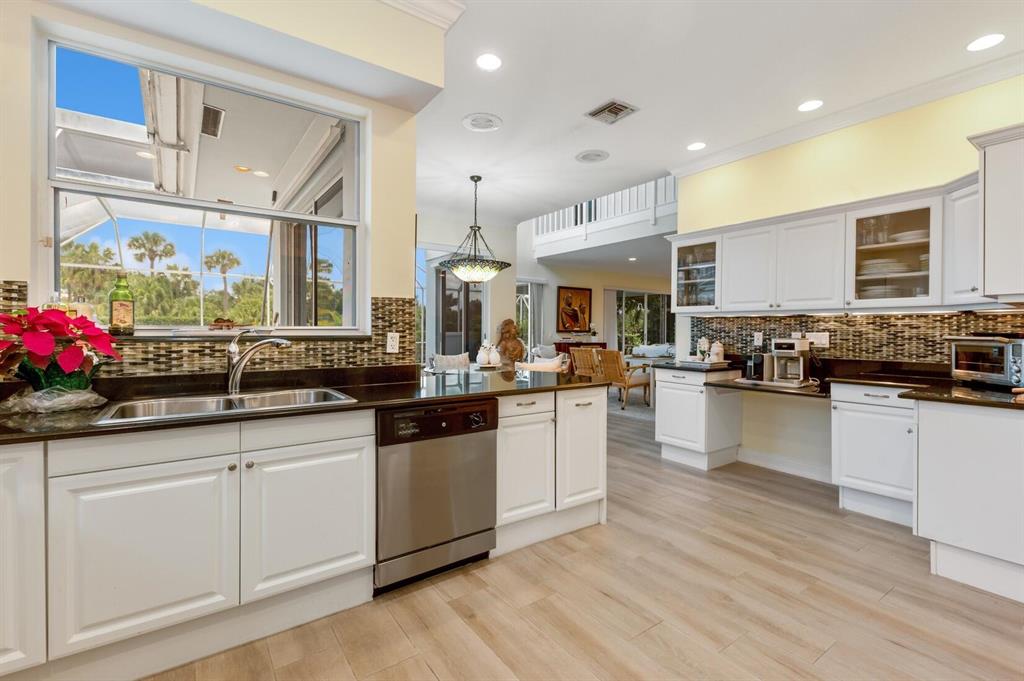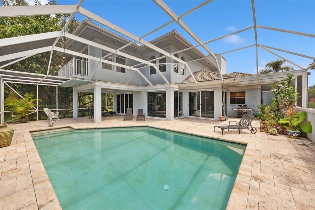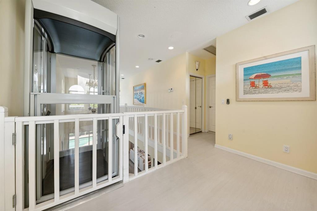 Serene island style living is found in this beautiful 2 story pool home located on a quiet cul -de- sac. The moment you enter you will be taken in by the sweeping wrap around waterfront views and double green fairways of Mayacoo Lakes country club golf course . Newer Roof 2014. This renovated 3 BR/3BA fireplace plus elevator is filled with natural light that pours in to all public rooms and bedrooms. A generous master suite with balcony overlooks the screened heated salt water pool with travertine marble flooring. Enjoy morning coffee and evening sunsets in gracious laid back style. Kitchen has mosaic back splash with stainless steel appliances and granite counters. All baths are beautifully updated making this a turn key home