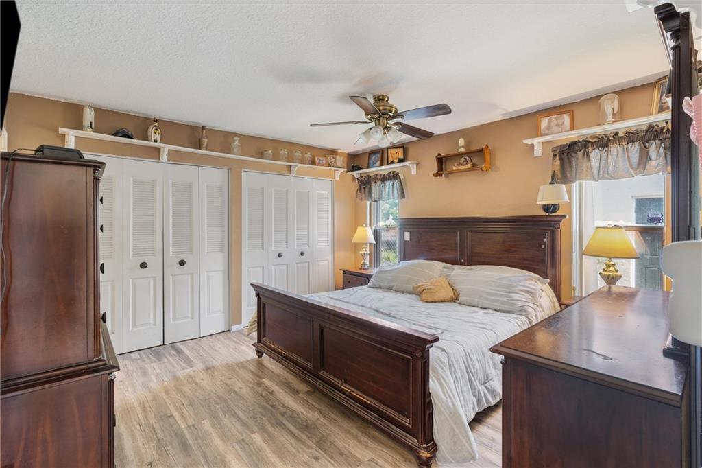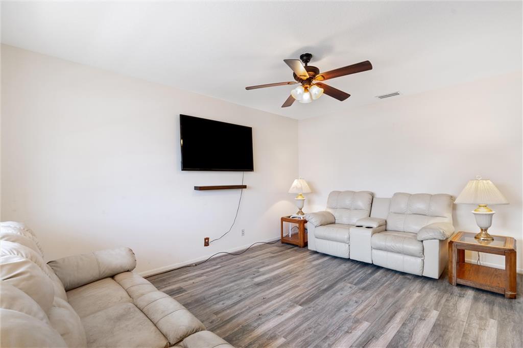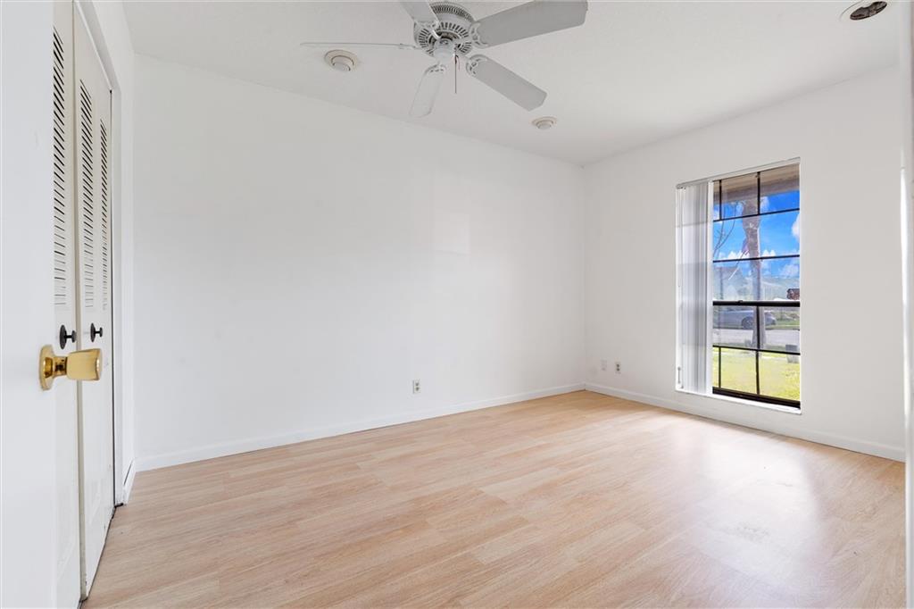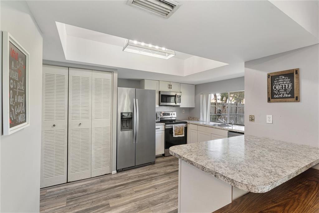 Rarely available 3 bed, 2 bath fully updated home with upgrades galore! New 2020 roof & skylights! Hurricane shutters thru/out! Open kitchen w/ new 2020 shaker cabinets, stainless appliances, large pantry & bar area! 2021 high-efficiency front loading washer/dryer! Laminate flooring in bedrooms & new 2023 wood-look flooring in living areas! Spacious dining/family room area & separate living room! Spacious primary bedroom and newly remodeled primary bath w/ new vanity & step-in shower w/ seamless glass! 2023 newly repaved circular driveway! Step out onto your covered back patio area and enjoy your private yard w/ water view! Must see all this home has to offer!