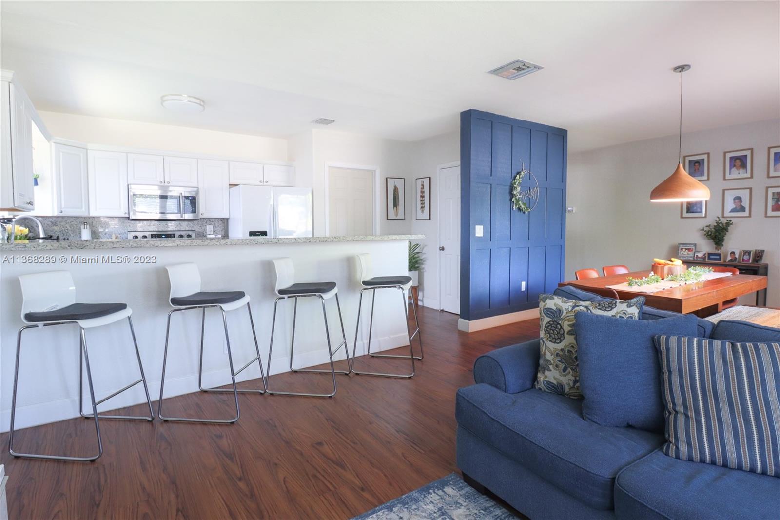 Amazing Remodeled home featuring 3 Bedrooms, 2 Bathrooms. Gorgeous Modern Kitchen with SS appliances, updated bathrooms, Roof only 3 Years old, Impact Windows and Doors, Laundry room with modern full capacity washer/dryer, and Wood flooring. Spacious backyard with back alley access for Boat/RV! Screened patio with above ground pool for family fun and outdoor dining year round. Property may be larger than tax records. NO HOA! Airbnb Ready! Tree lined walking path right out the front door. Family friendly neighborhood. Excellent location: minutes away from Sunny Isles, Aventura Mall, and Major highways (I-95, Turnpike, & 836).