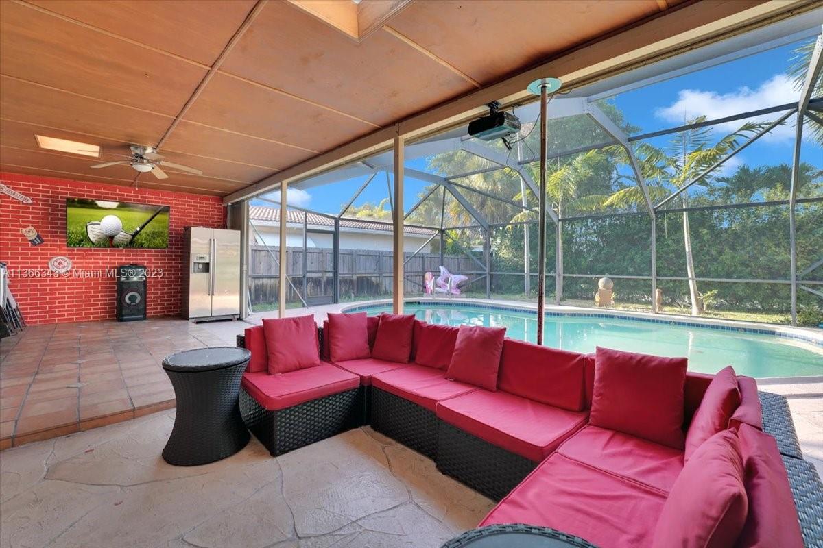This lovely 3 bedrooms plus den and bonus room located in Hollywood Hills PRIME LOCATION close to world class shopping, restaurants, 5 minutes from Hard Rock and close to Beaches. Inside, the home features soft close wood cabinetry, granite counter tops, and stainless steel appliances in the kitchen. The kitchen also has a pass through window to a 600 sq. ft. lanai, perfect for outdoor entertaining and dining. The lanai overlooks the HEATED POOL with domed screening for added privacy. There is also a backstreet entrance with a concrete slab and gazebo, perfect jet sky or boat.