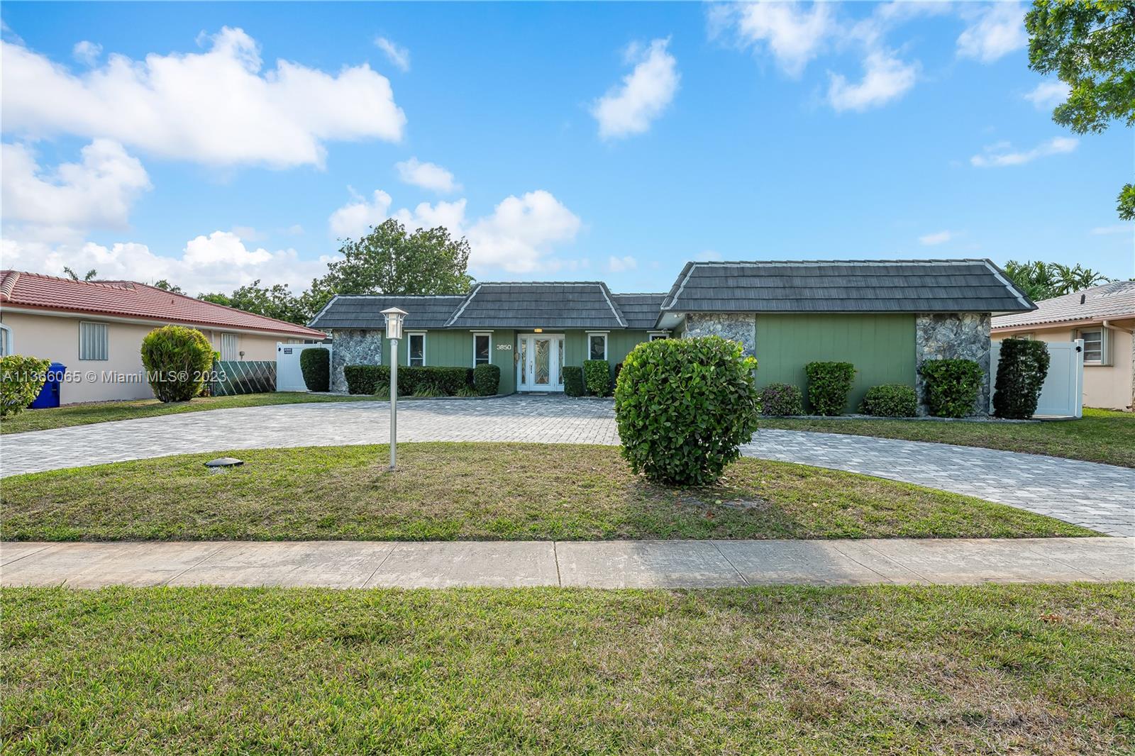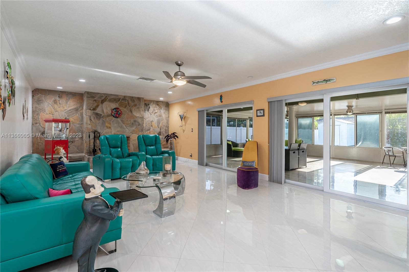 If you like to ENTERTAIN.... this ONE STORY 4 bedrooms 2 baths SINGLE FAMILY w/ Salt Water HEATED POOL & JACUZZI is for YOU!! Sitting on MORE THAN 1/4 acre, this home w/ green space, PVC FENCE, ENCLOSED FLORIDA ROOM, Sprinkler System, 2 car garage, extra freezer & GIGANTIC PAVED CIRCULAR DRIVEWAY will take your breath away! This house has it all: HURRICANE IMPACT WINDOWS AND DOORS including garage door, LARGE & MODERN KITCHEN, STAINLESS STEEL APPLIANCES with extra oven, PORCELAIN TILE in all areas except kitchen, dining & enclosed patio which has epoxy. Roof was replaced in 2012. Propane GENERATOR for all the house installed in 2018. AC was replaced in 2021. Pool Pump was replaced on 2020. Both Bathrooms have been remodeled as well. Basically OVER 12,237 sq.ft. of perfection & NO HOA!