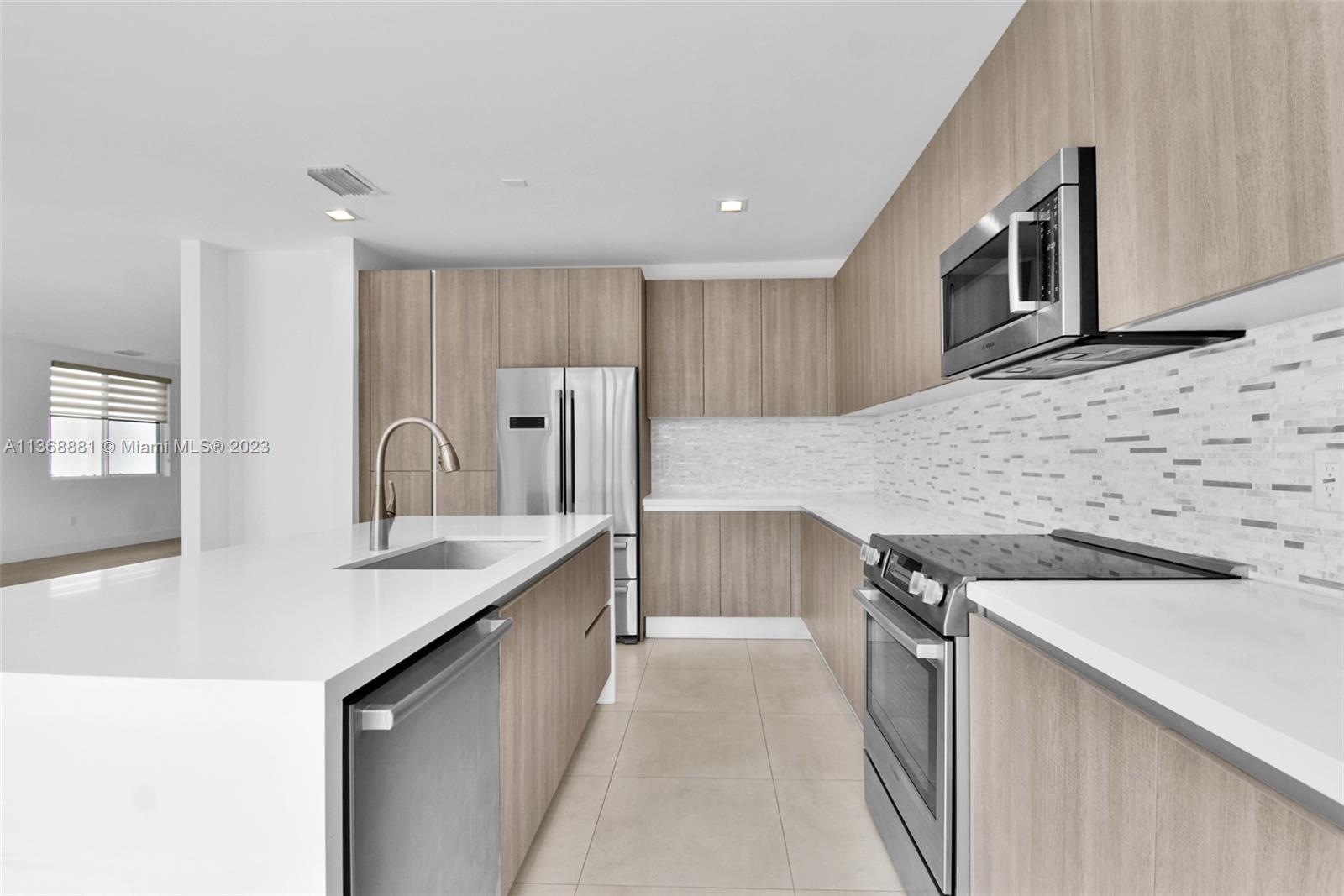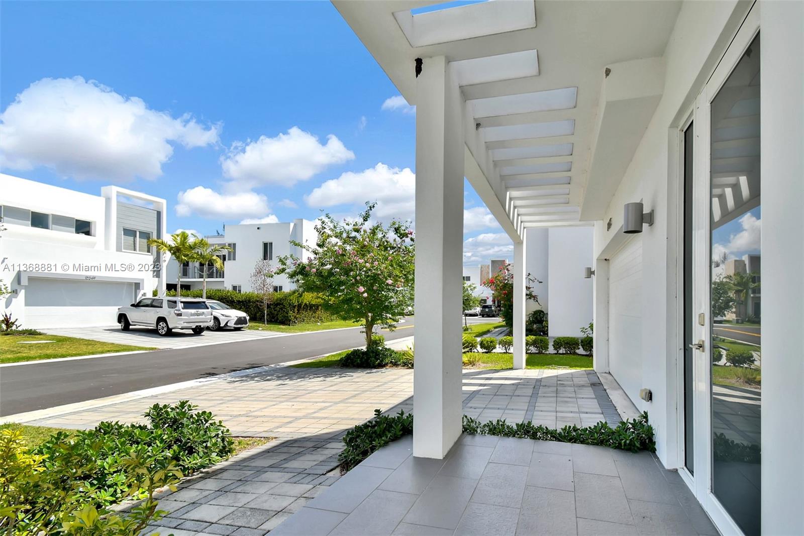 Single-family home located at Neovita Vesta in the heart of Doral. The property sits on a 5,376 Sq.Ft lot with more than 3,000 Sq.Ft of living area. This home features 5 bedrooms, 4 full bathrooms, 1 half bathroom, 4-car parking, and one of the LARGEST BACKYARD in the whole community perfect for a summer barbecue kitchen, and a pool. Oversized Master Suite features private balcony access, two walk-in closets and en-suite bathroom with dual vanities, the guest bedroom is conveniently located downstairs for easy access. 9 ft high ceilings throughout, Gourmet Kitchen Stainless Appliances, Quartz countertops and Italian cabinetry in the kitchen and bathrooms, hurricane impact windows and doors. Private gated community with 24/7 on-site security. proximity to top-rated schools