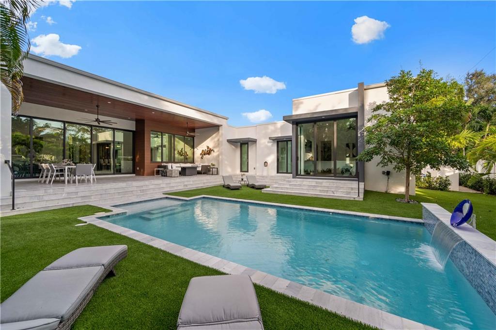 Beverly Hills chic meets tropical Zen retreat in a Rio Vista modern masterpiece! With 4BR/4BA plus a home office and over 3,300sf of living area. This new construction gem is a must see that is sure to dazzle as it offers complete Smarthome technology, 23"x47" porcelain tile flooring, impressive volume ceilings, custom electric shades, dual zoned AC, whole house gas generator and dramatic pocket impact sliding doors opening to a custom heated salt-water pool w/waterfall, autofill, automated lighting & Omni logic compatibility! Gorgeous open kitchen featuring quartz countertops/backsplash, 10' center island w/waterfall edge, under cabinetry LED lighting & Thermador appliances including a 5 burner gas range & 24 bottle wine refrigerator. Finally a home that truly does have it all!