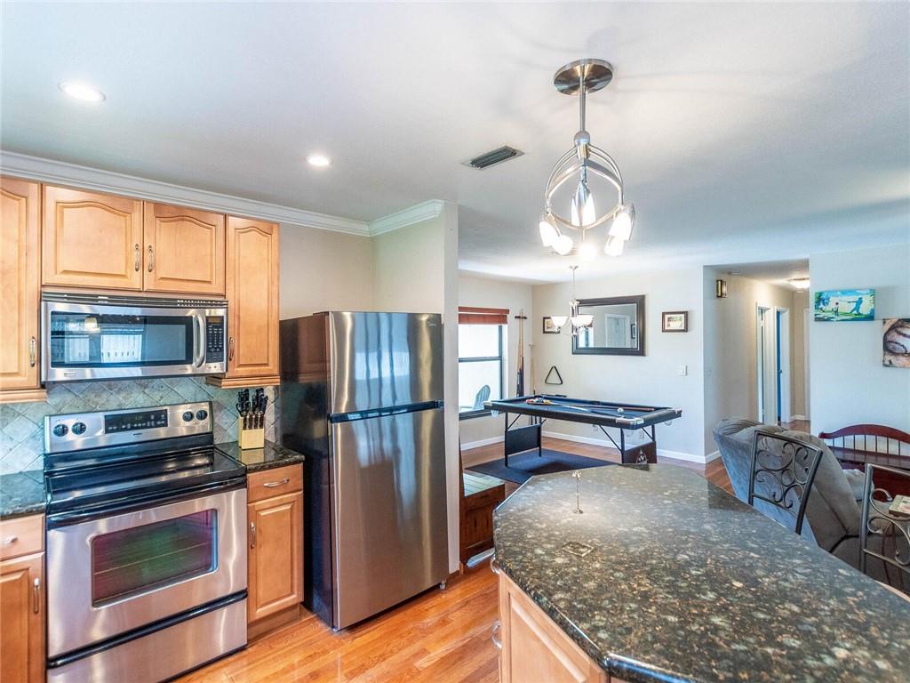 Located in Royal Palm Pointe with NO HOA! Nicely updated with REAL HARD WOOD FLOORS, Kitchen with custom wood cabinetry, granite counters and stainless steel appliances. Open layout & recessed lighting. ALL IMPACT WINDOWS AND DOORS & generator hookup. Both bathrooms are updated with bowl sinks, marble tile and frameless shower doors in primary. Oversized FLORIDA ROOM great for entertaining and cookouts. Spacious backyard big enough to add a pool and completely fenced yard. Roof 2005, Trane AC 2013, Water heater 2018. Don’t miss this one!