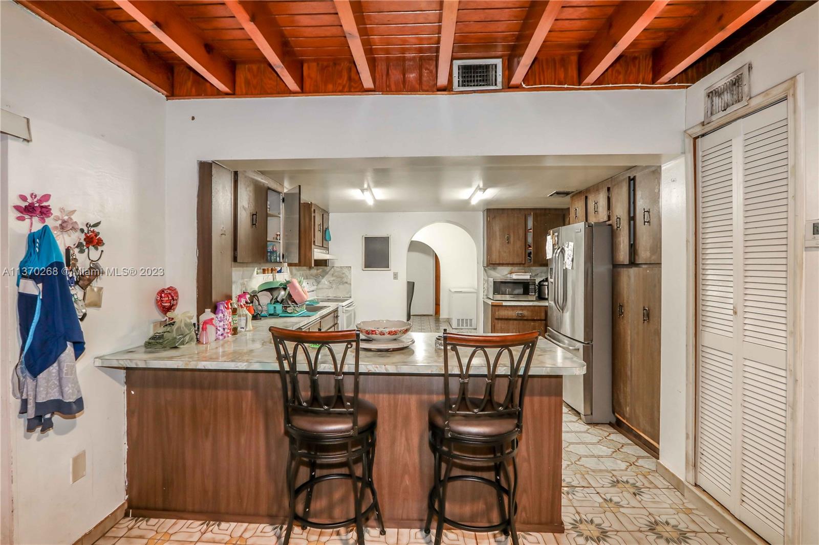 1,762 sqft Total. 1,337 sqft 3/2 with a 425 sqft 1/1 attached efficiency. Storage in the back with a 1/2 bathroom. With the potential of enclosing the porch for another bedroom. It could be a 2/1, 2/1, 1/1, Original condition. No updates.
