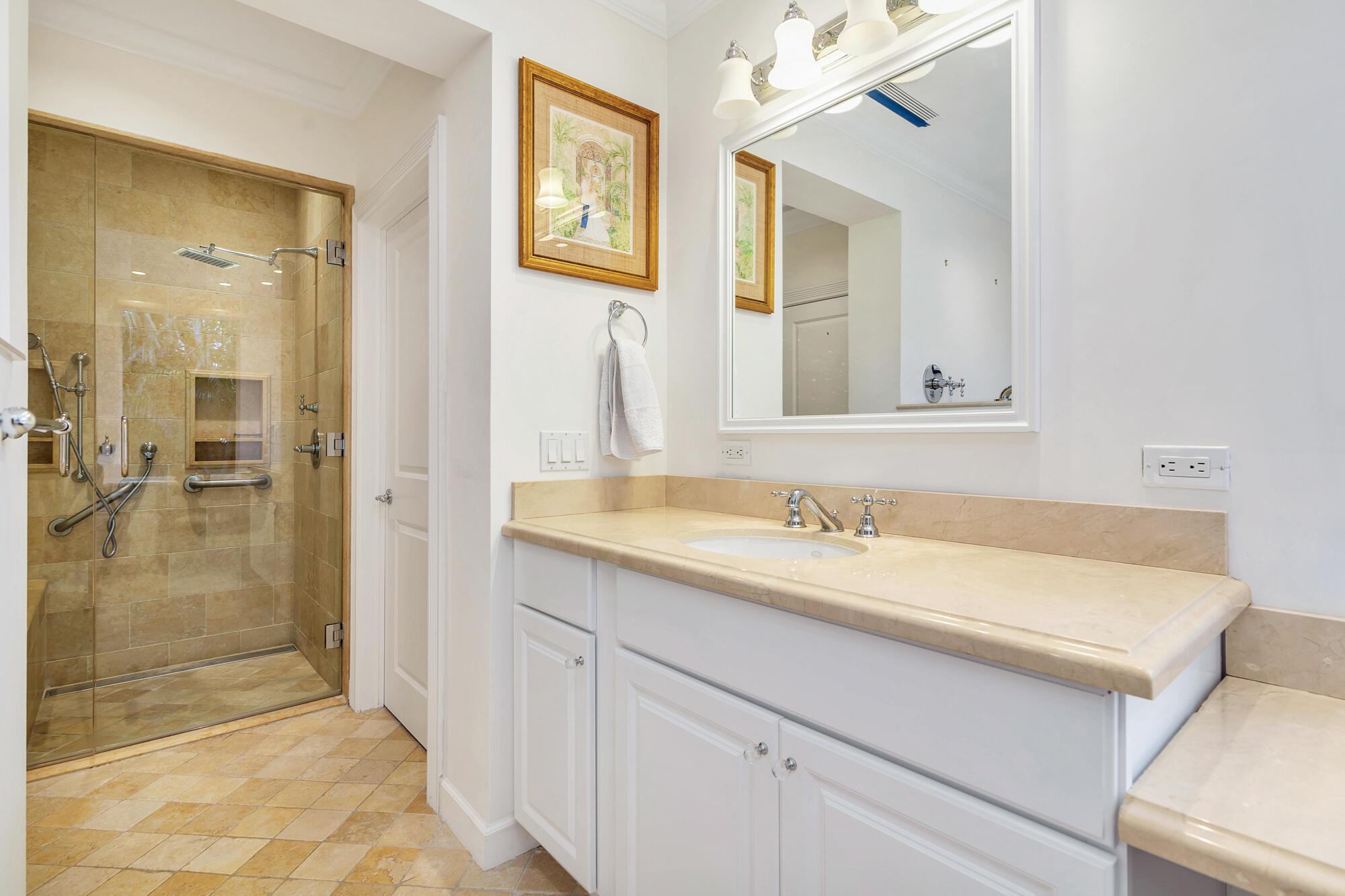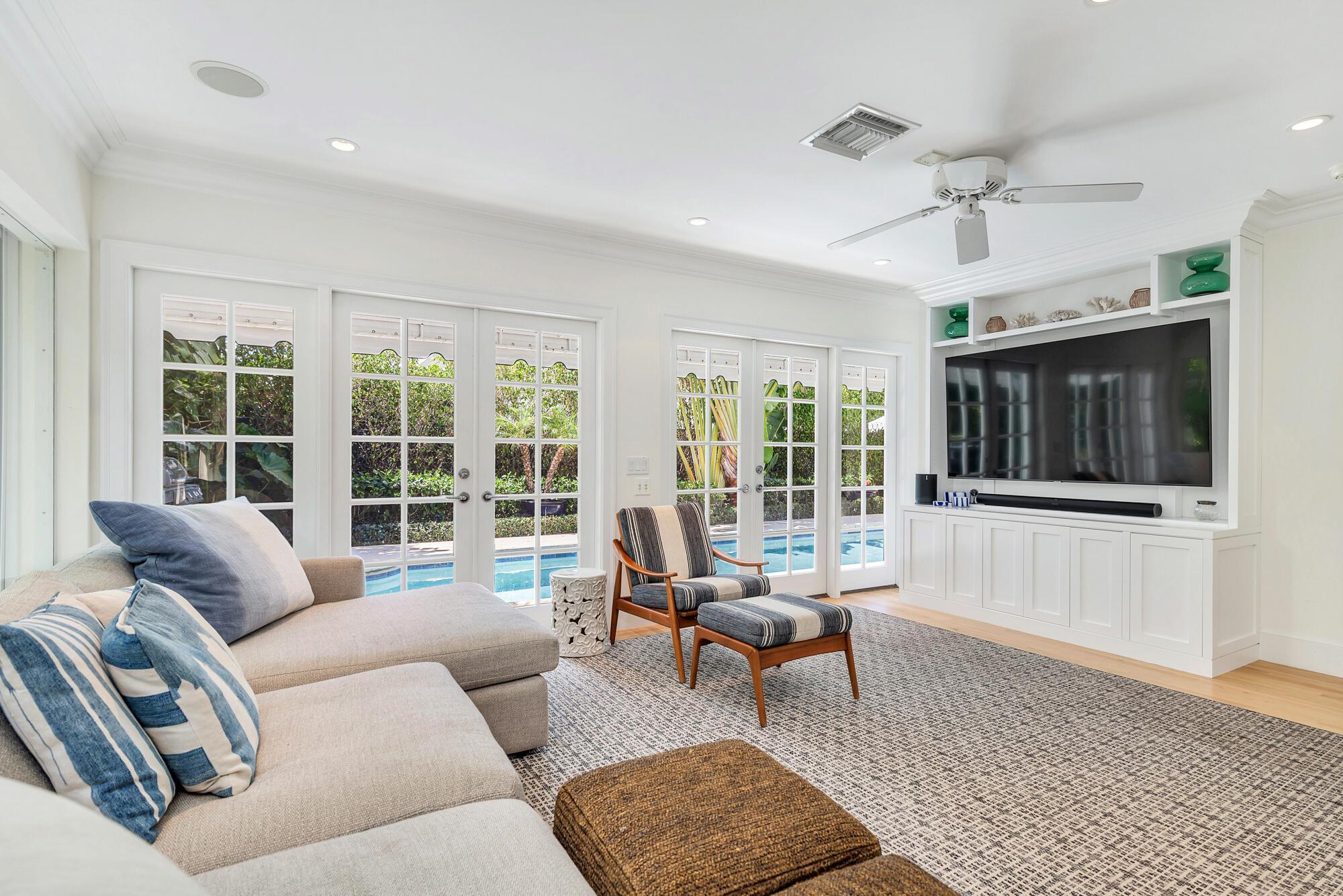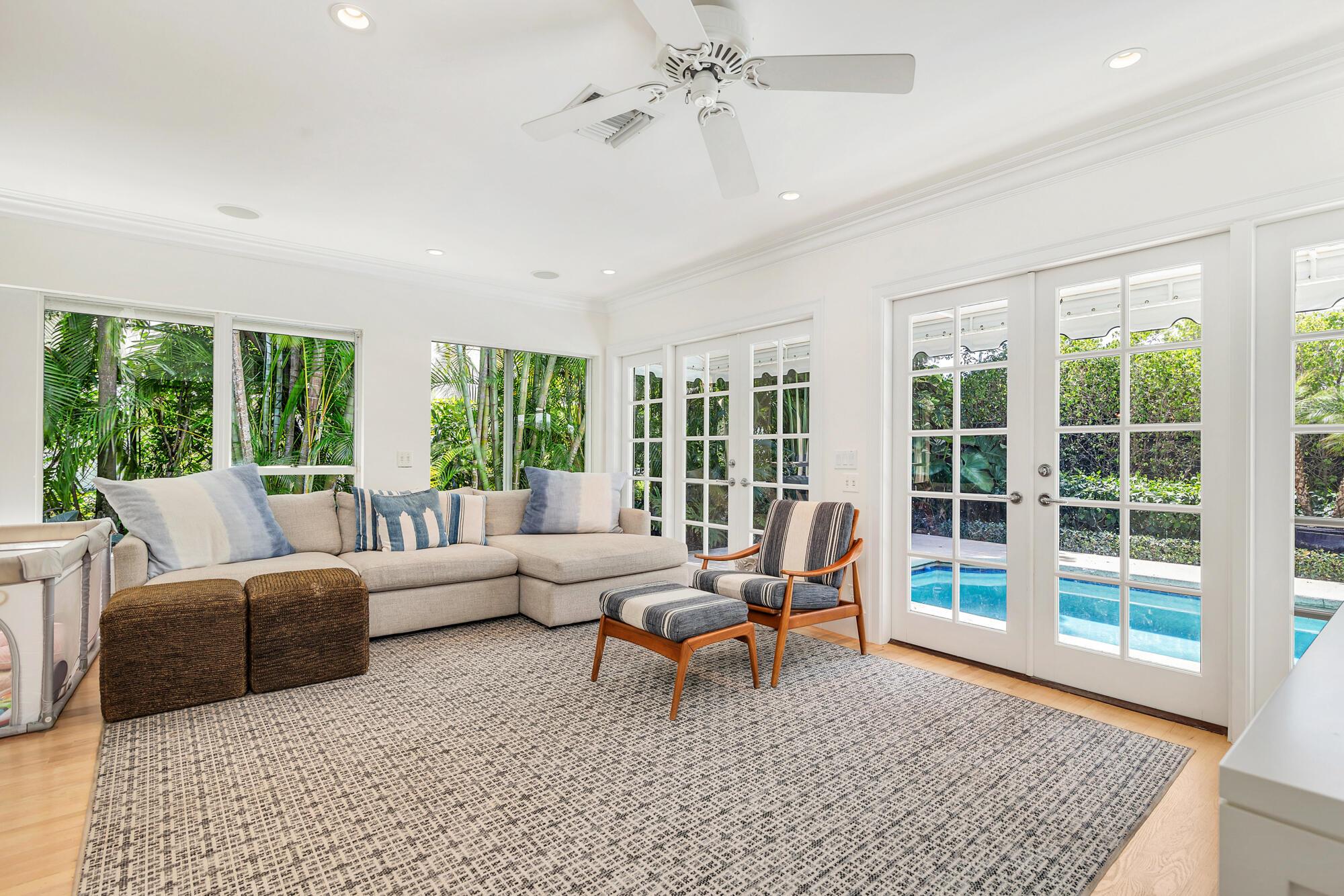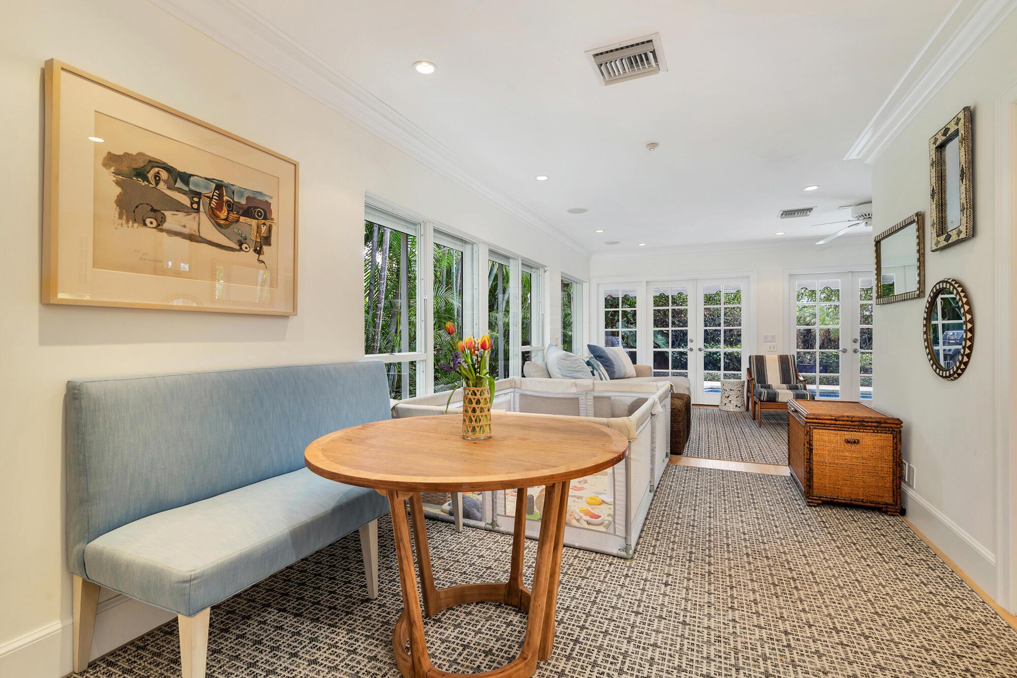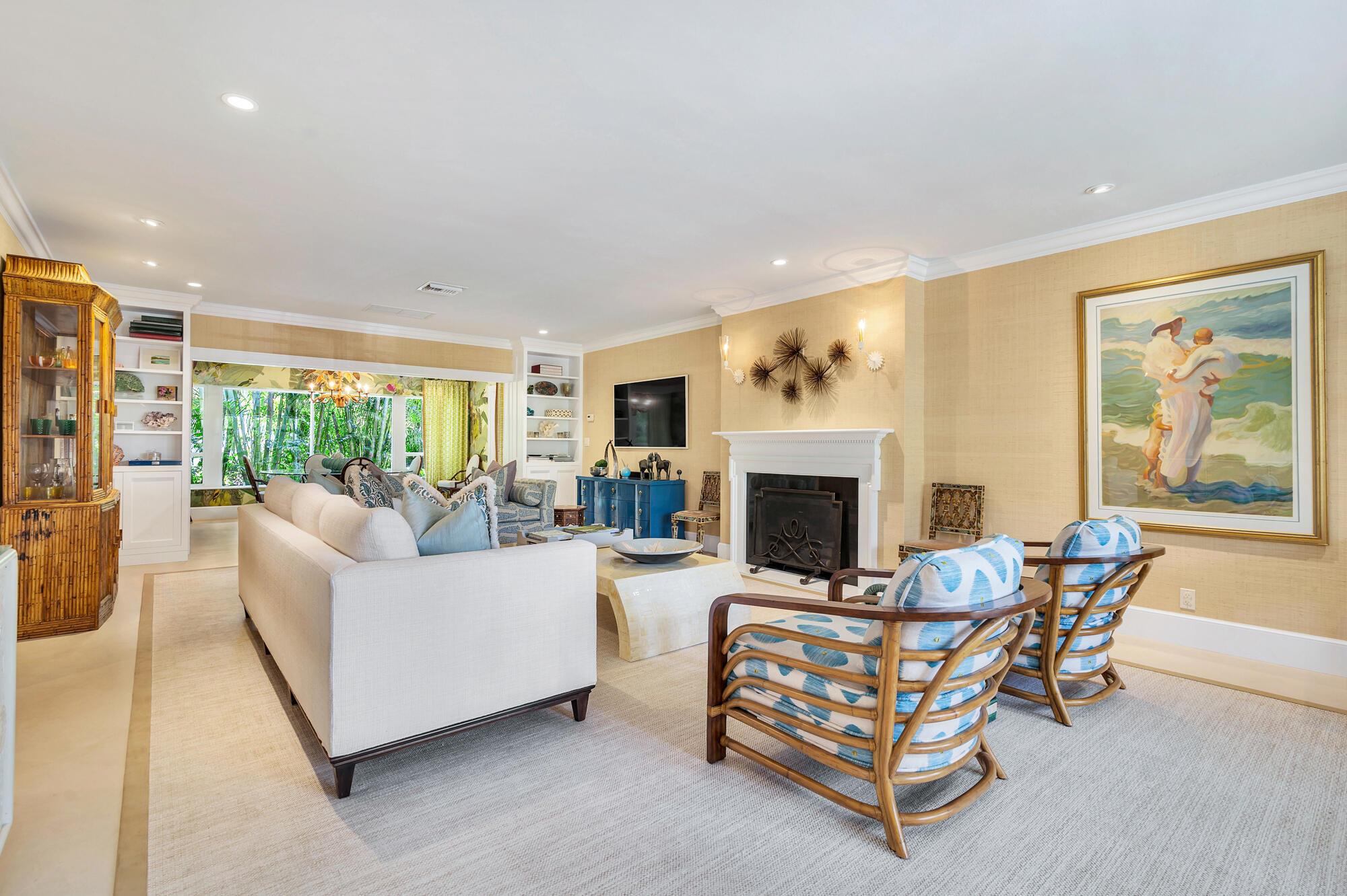 One-story Regency style residence featuring split floor plan encompassing spacious primary suite plus three additional bedrooms for guests. This elegant Ellen Kavanaugh decorated residence pay homage to the island's vibrant aesthetic and lush surroundings. El Dorado as a street offers residences a quaint feel among other single story residences giving the feeling of light along the street. This residence allows extra privacy while enjoying outdoor spaces including the large terrace off the primary bedroom with Plantwell landscaping and nontoxic artificial turf and private lush tropical landscaping surrounding the pool area. The home contains a new a/c unit servicing the primary bedroom and two eastside guest bedrooms, a Culligan water filtration system, Haifa Limestone throughout most of